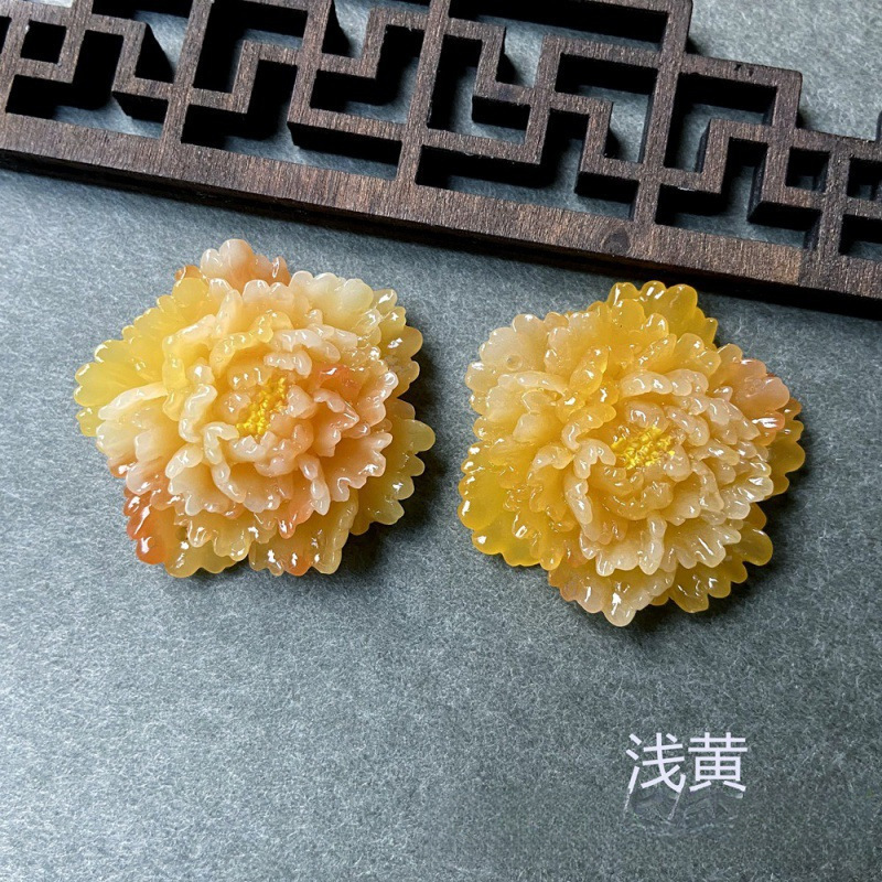 모조 옥 수지 모란 꽃 머리 장식 펜던트 목걸이 머리핀 DIY 수지 액세서리 휴대 전화 쉘 장식 재료스토어 가기