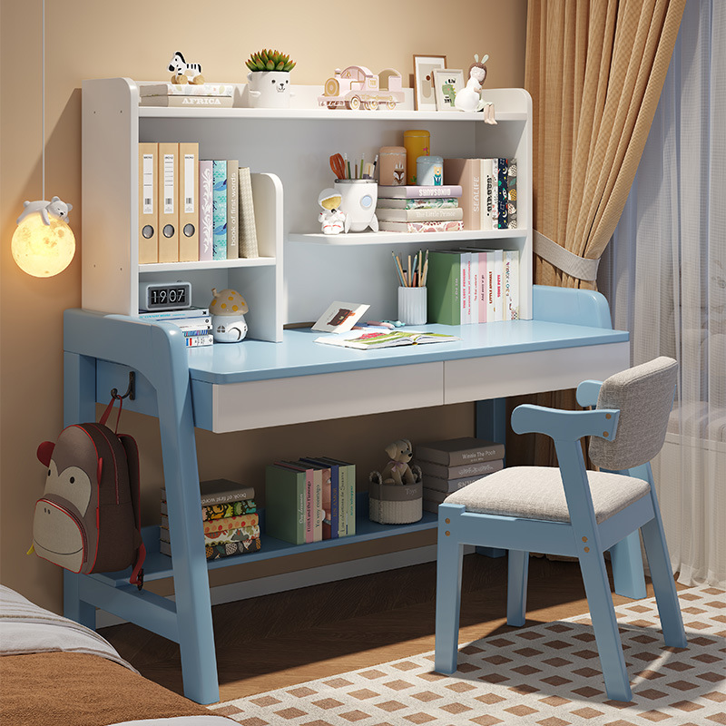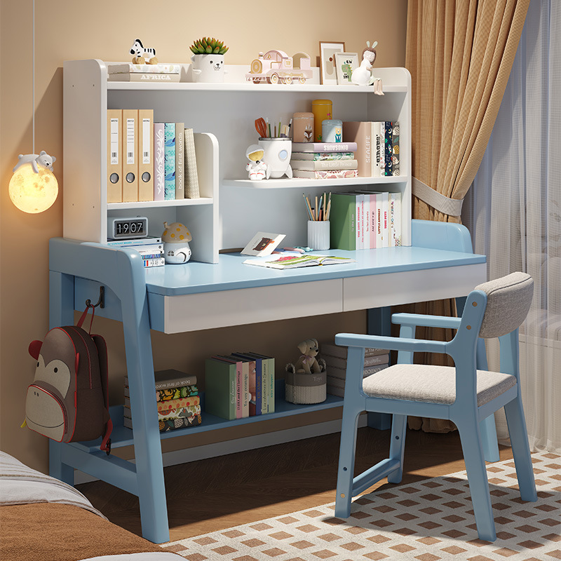 고등학생 솔리드 우드 데스크 책장 조합 컴퓨터 책상 어린이 스터디 테이블 가구 통합 필기 테이블 및 의자 세트