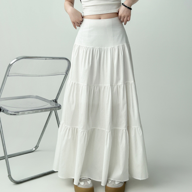 달콤한 케이크 흰 치마 중간 길이 2025 높은 허리 새 봄과 여름 배 뒤덮인 슬리밍 유행 치마스토어 가기