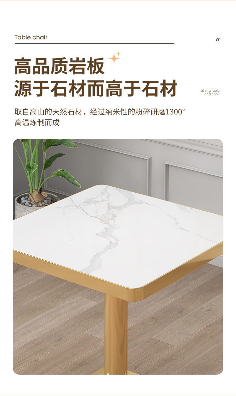 • 60 평방 테이블, 의자 2개, 금테 바위판, 금판