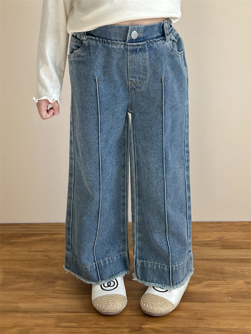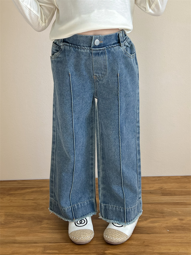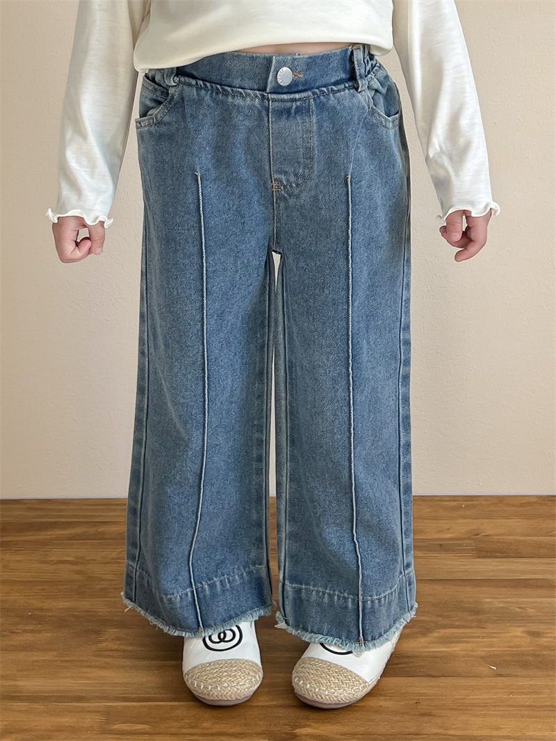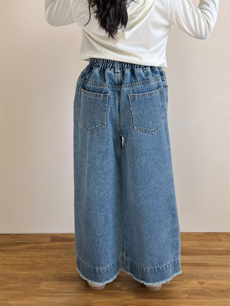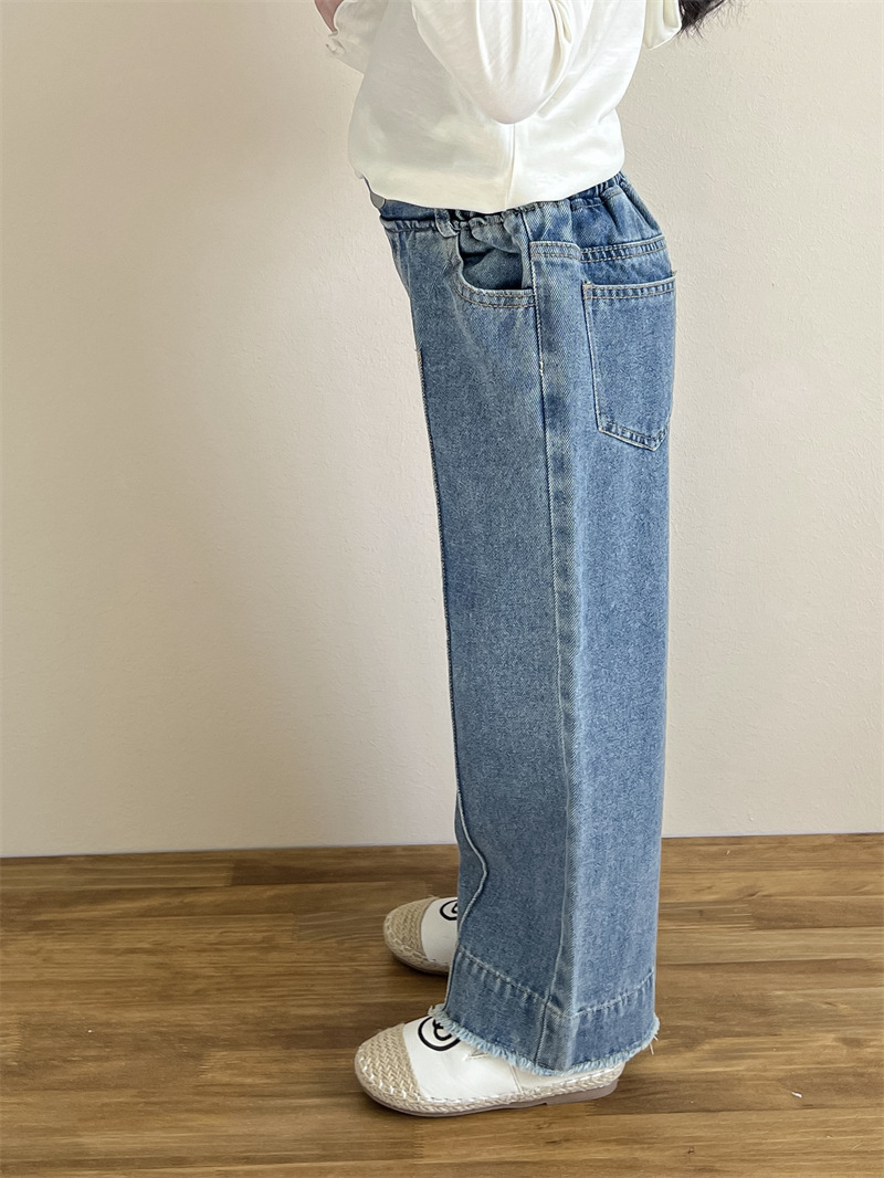 한국 아동복 소녀들의 봄과 가을 유행 스타일 느슨한 허리 캐주얼 와이드 레그 폴드 스트레이트 레그 청바지스토어 가기