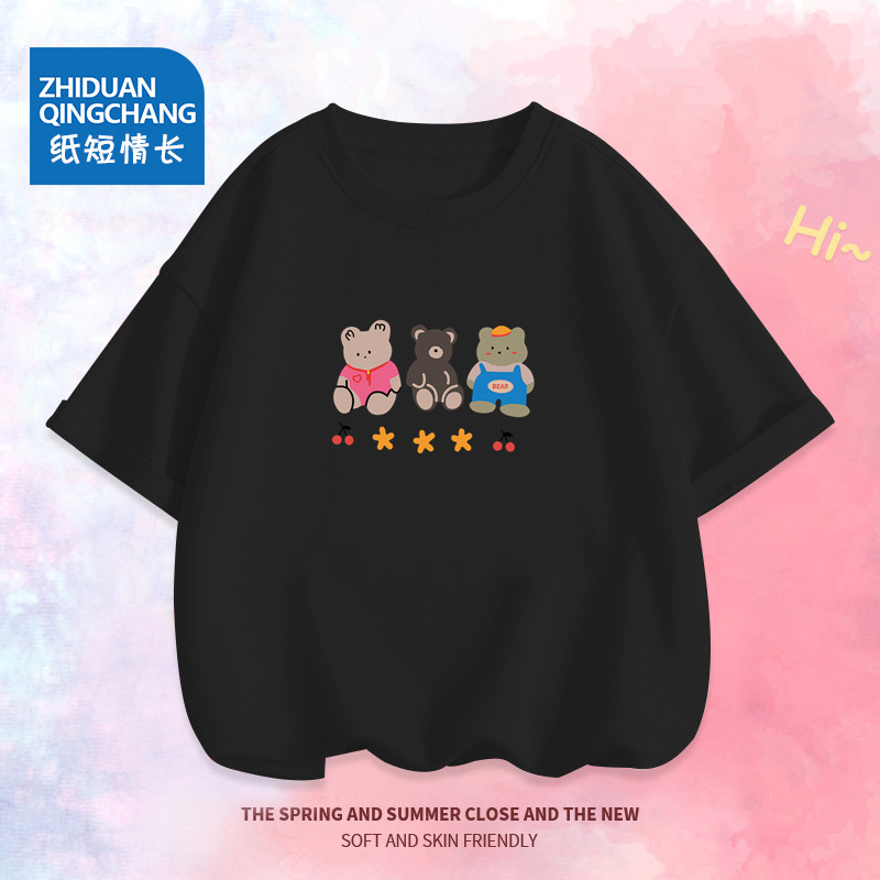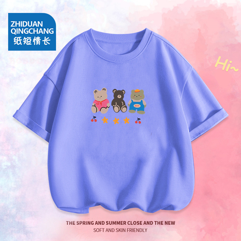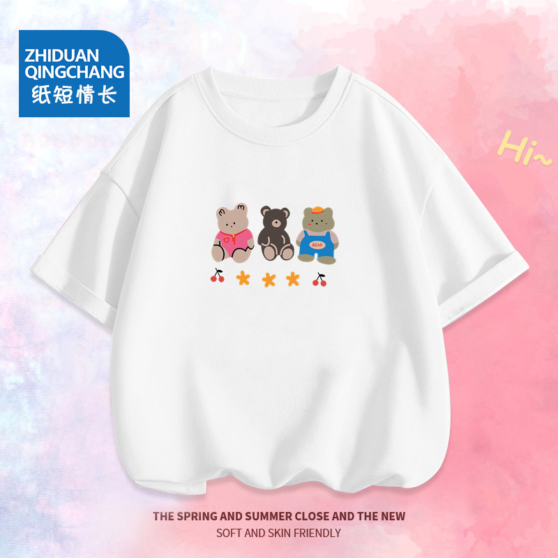 2033 # 아동베이스 셔츠 여름 느슨한 반소매 탑 티셔츠 웨스턴 스타일 만화 인쇄 소녀 반팔 티셔츠스토어 가기