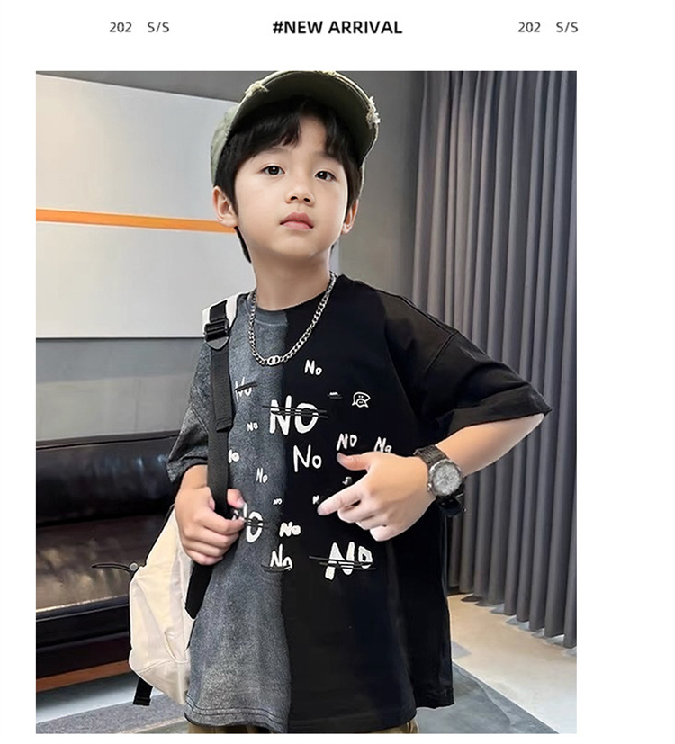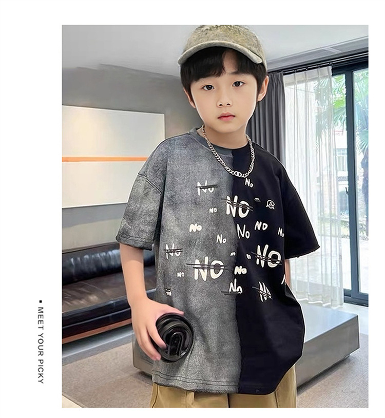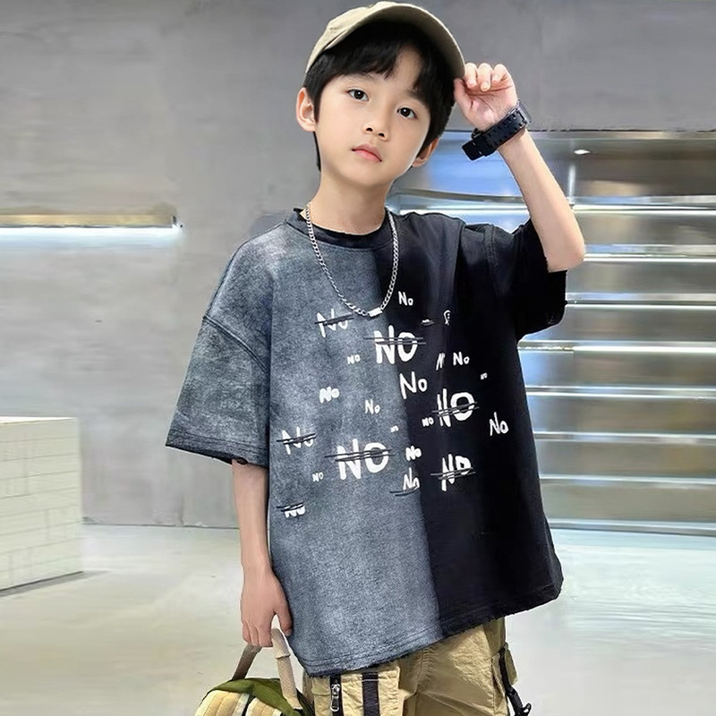 남학생 유행 반소매 티셔츠 여름 얇은 2025 여름 새로운 유행 크고 큰 아이들의 반소매 티셔츠스토어 가기