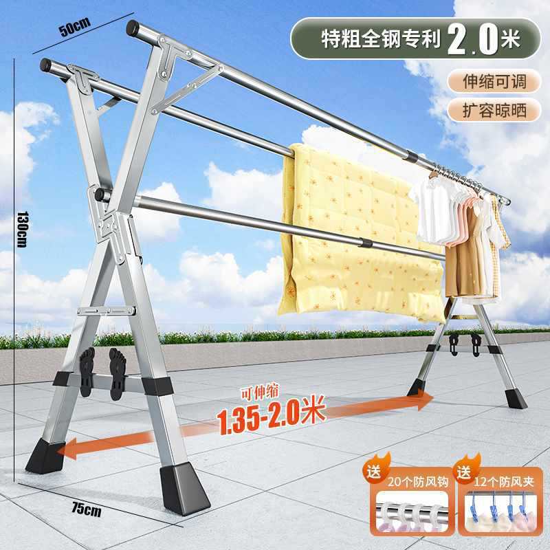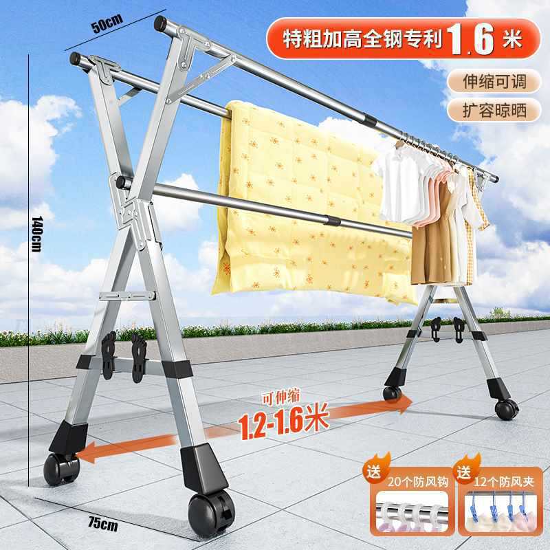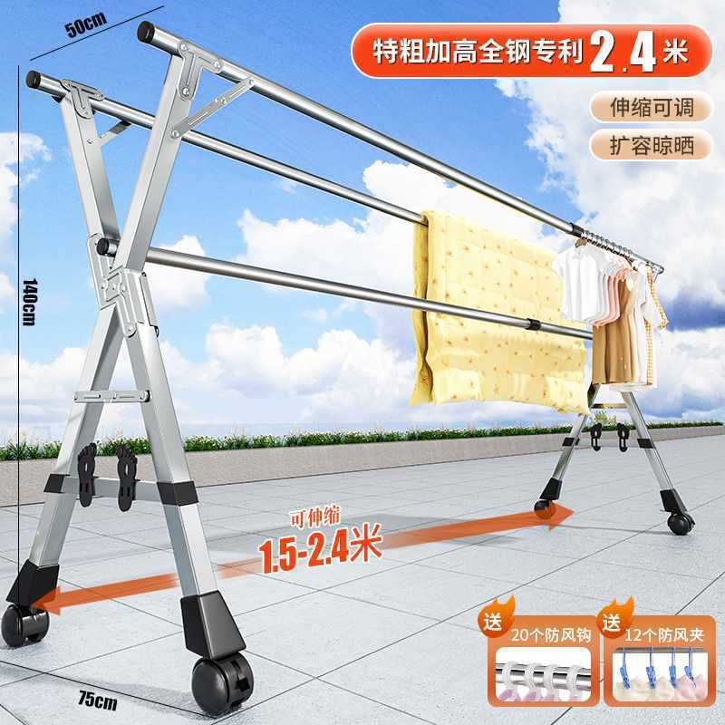 접이식 옷 랙 바닥 실내 가구 발코니 침실 스테인레스 스틸 야외 멋진 망원경 막대 유형 태양 건조 퀼트 Zhao Zhili