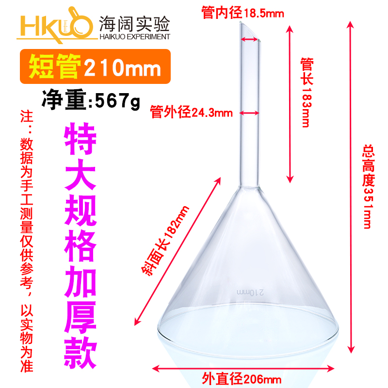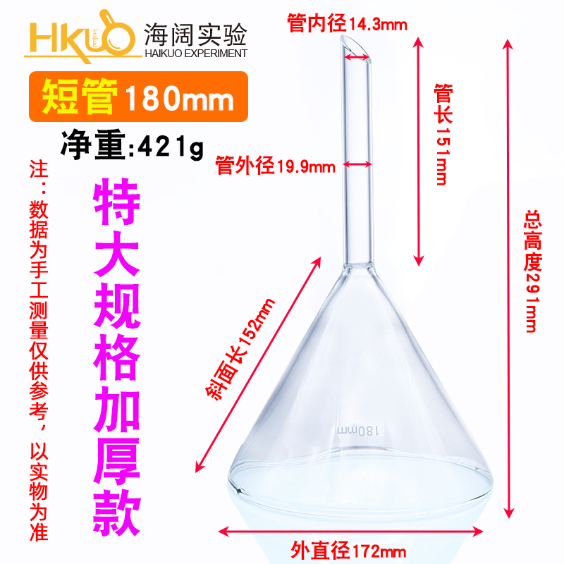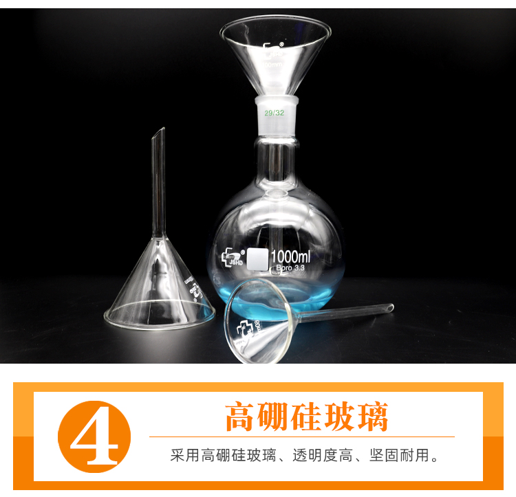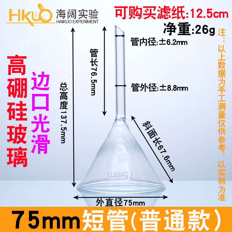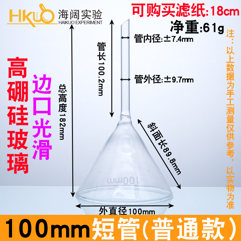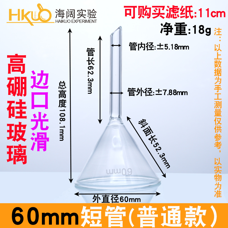 실험실 화학을위한 유리 삼각형 깔때기 긴 목 깔때기 60/75/90/100mm 고온 내성 짧은 목 콘
