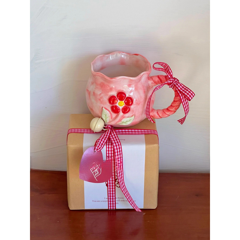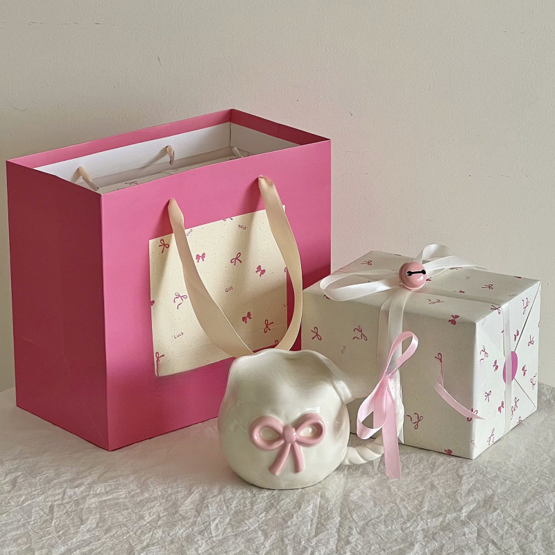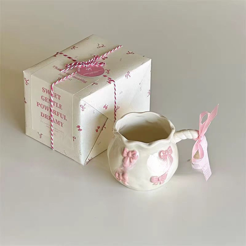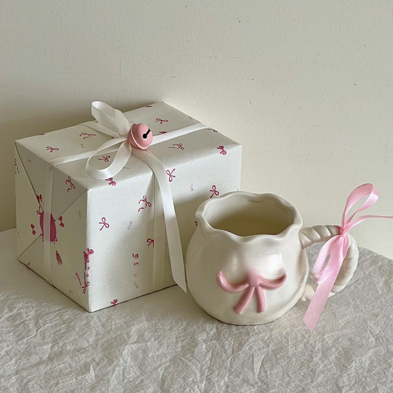 • 【NEW】핑크 리본 컵 + 선물 가방 + 무료 스푼 로즈 핑크 리본 포장
