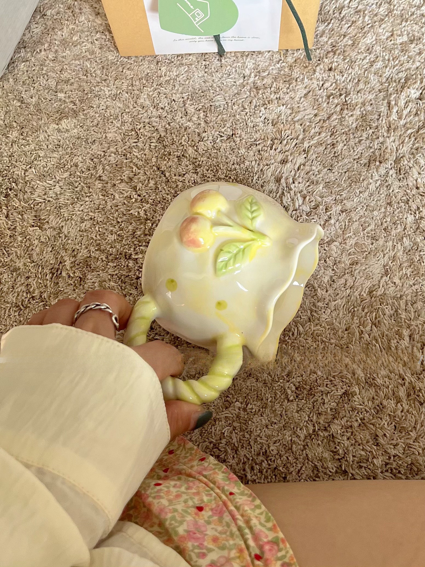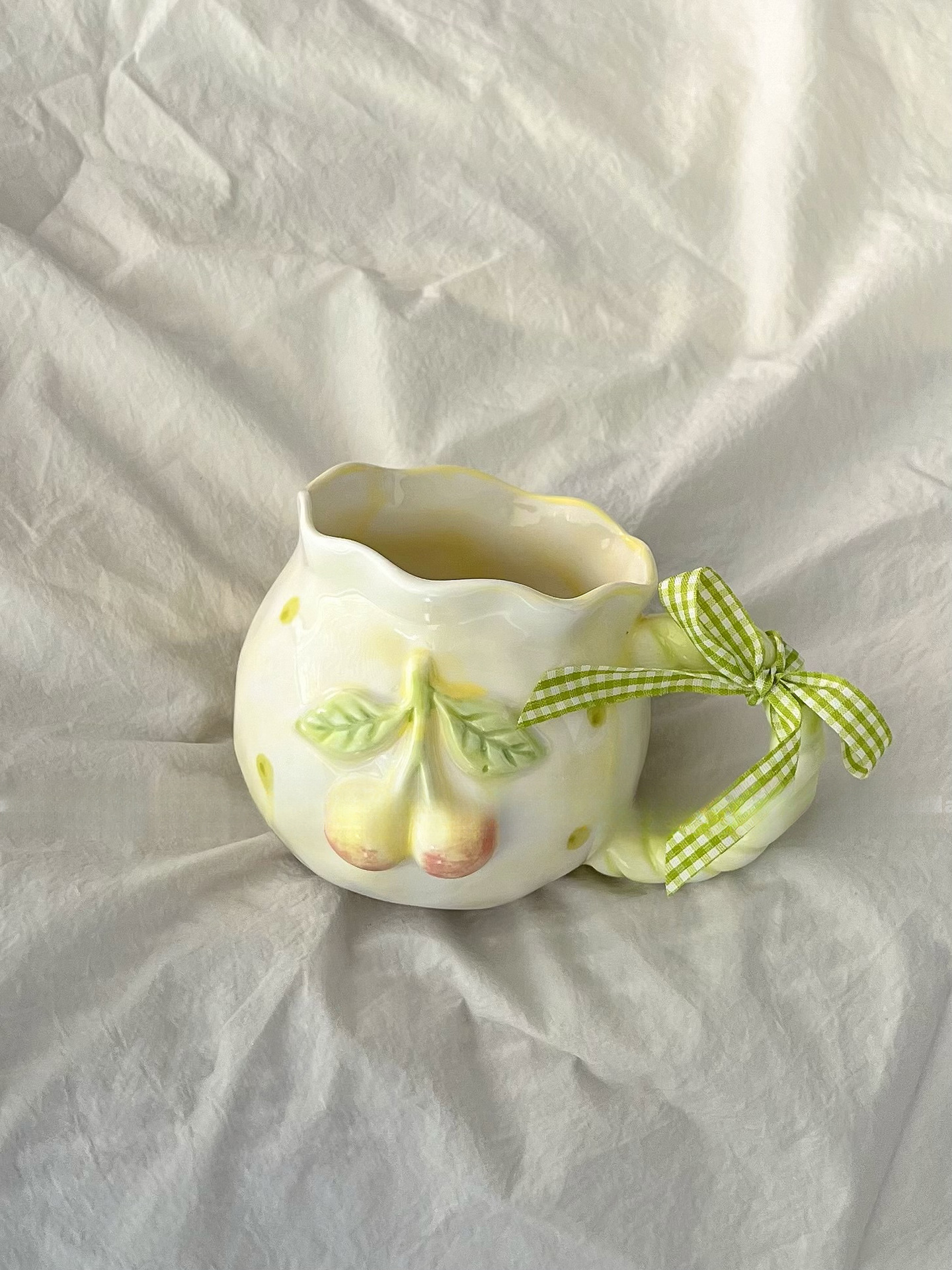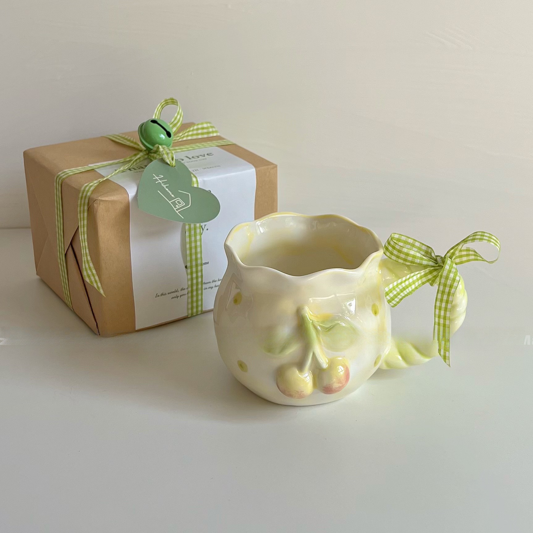 Blogger의 손으로 만든 불규칙한 신선한 귀여운 체리 아트 틈새 머그 세라믹 컵 멋진 뉴질랜드 교환스토어 가기