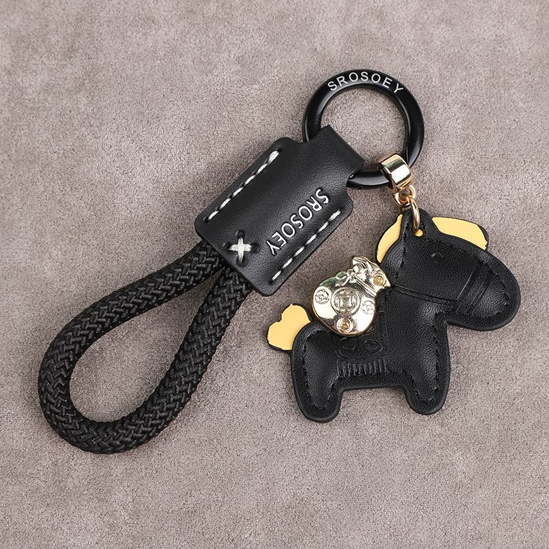 바로 지갑 수제 소 가죽 자동차 키 체인 펜던트 간단한 성격 남성과 여성 커플 키 체인 로프스토어 가기