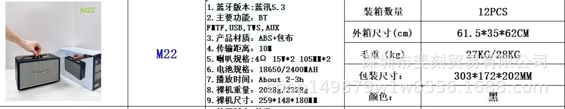 국경 간 폭발 M22 블루투스 스피커 레트로 말레이시아 M18 무선 오디오 말 스푼 3 세대 A3 휴대용 서브 우퍼스토어 가기