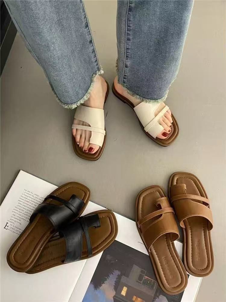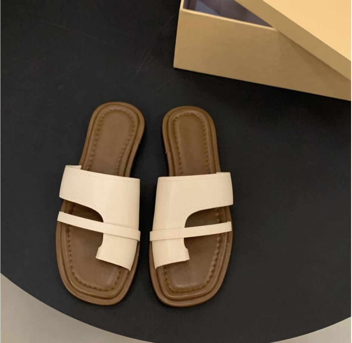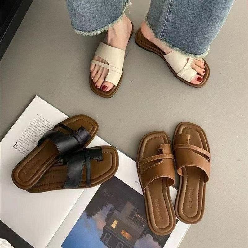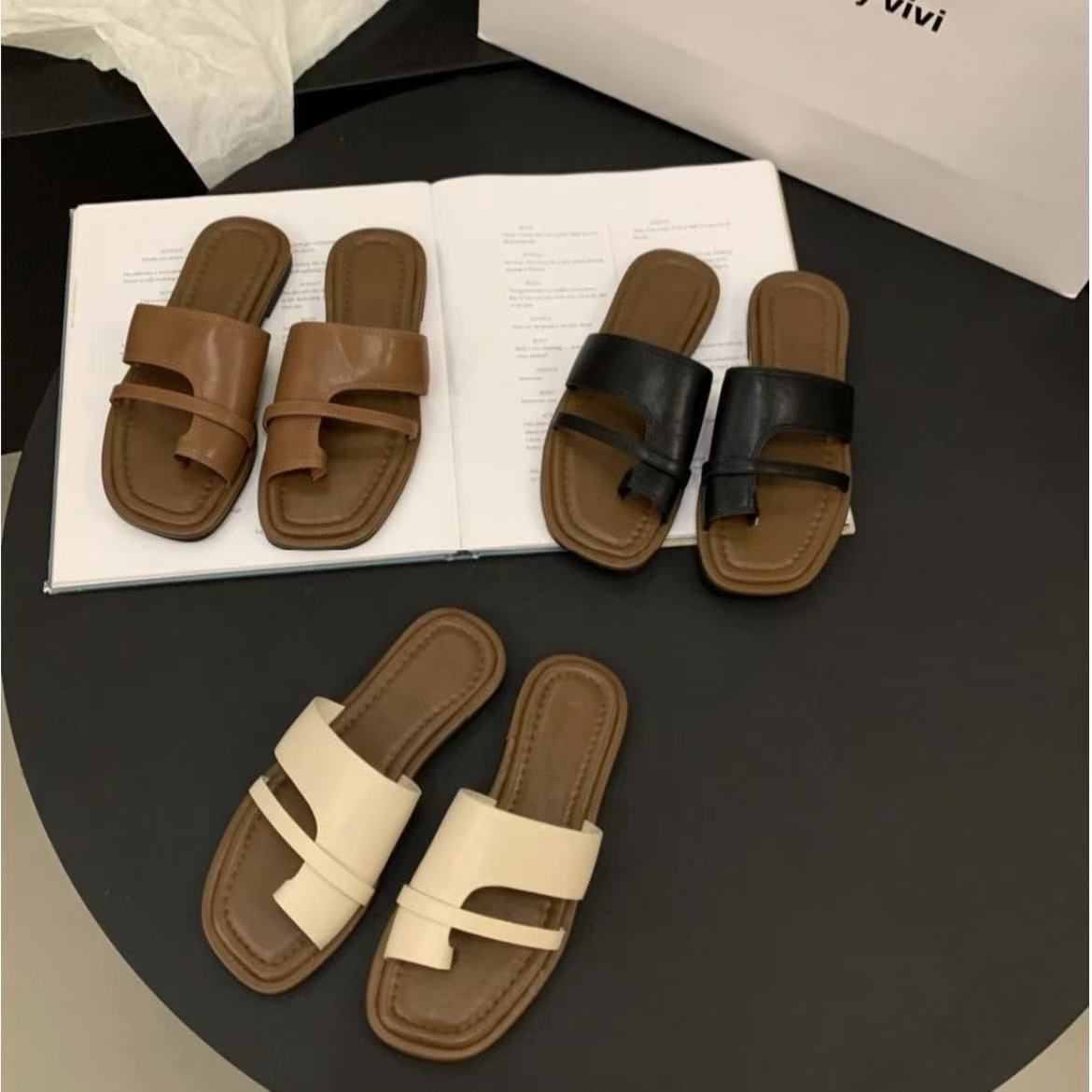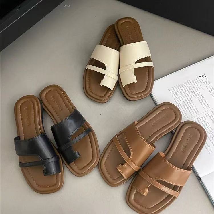 프랑스 니치 샌들 여성 아웃웨어 신발 2024 새로운 여름 비치 로마 스타일 라운드 발가락 소프트 플랫 샌들스토어 가기