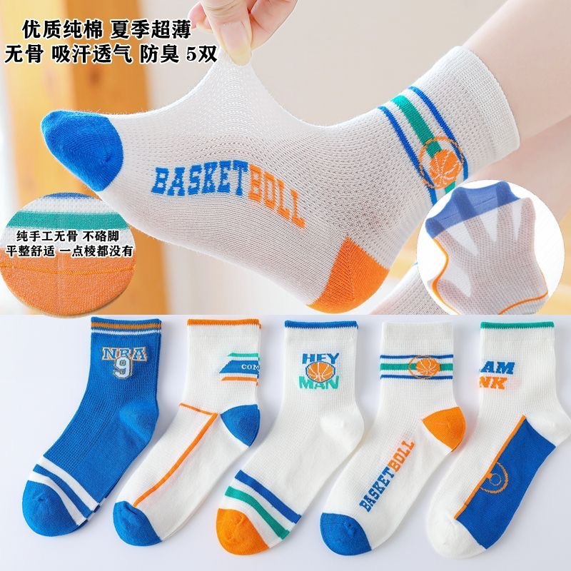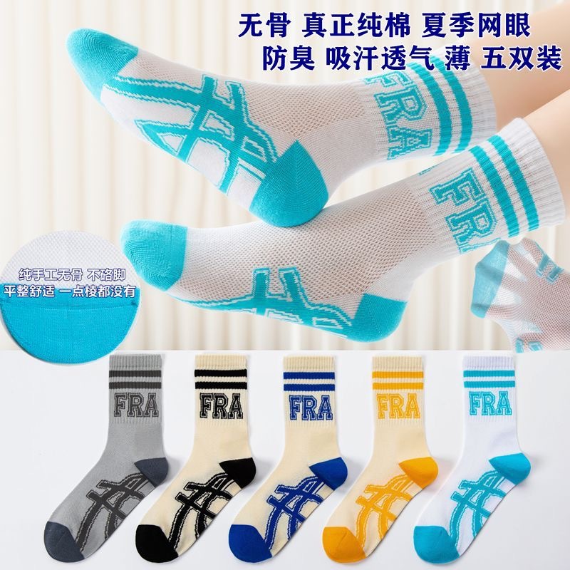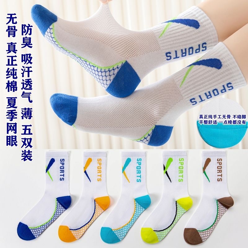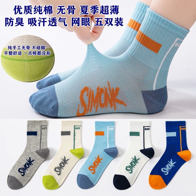 어린이 양말 클래스 A 소년 여름 얇은 메쉬 뼈없는 양말 소년 중간 튜브 양말 통기성 십대 면 양말스토어 가기