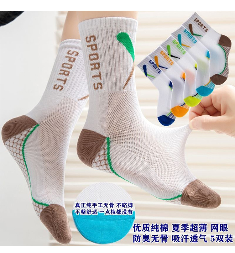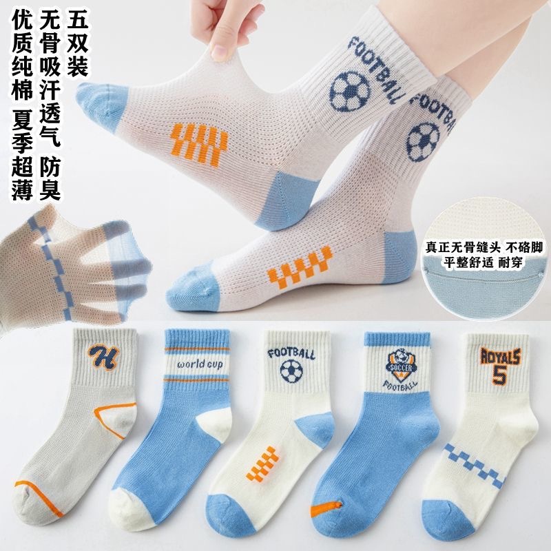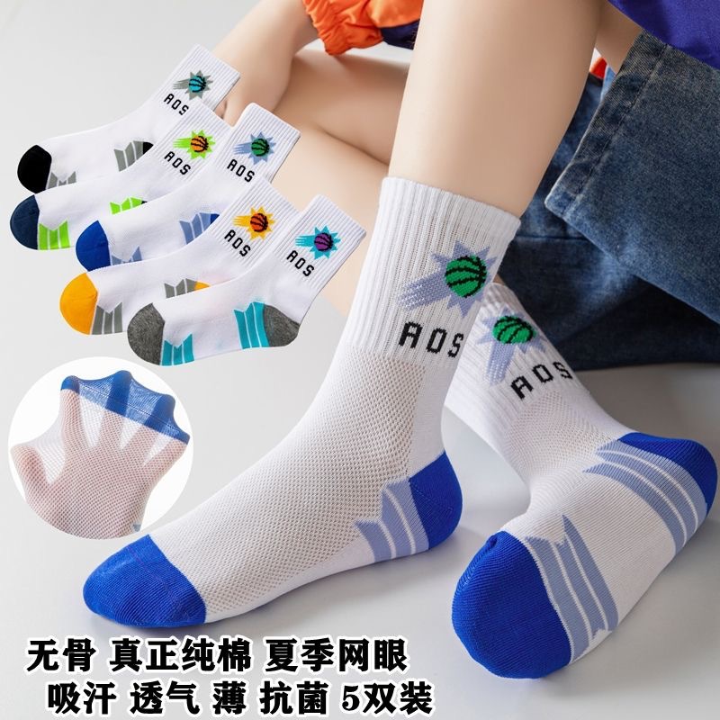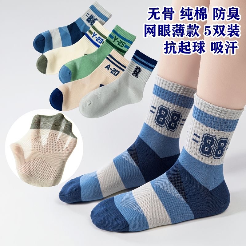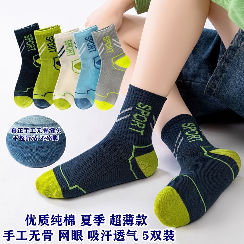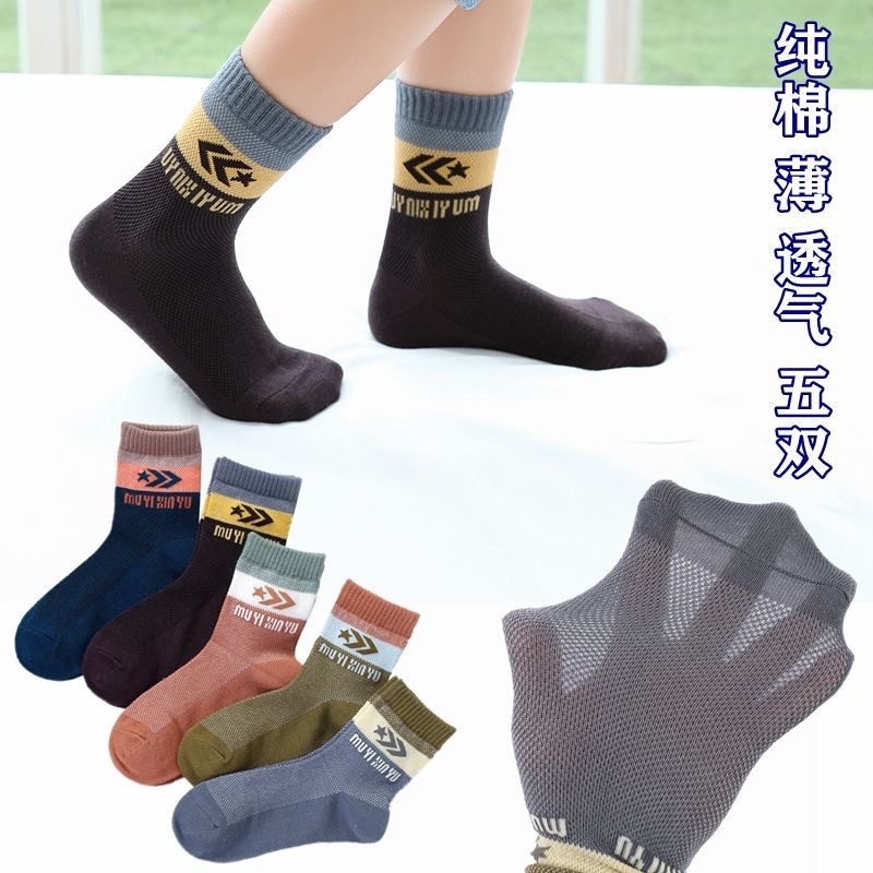 어린이 양말 클래스 A 소년 여름 얇은 메쉬 뼈없는 양말 소년 중간 튜브 양말 통기성 십대 면 양말
