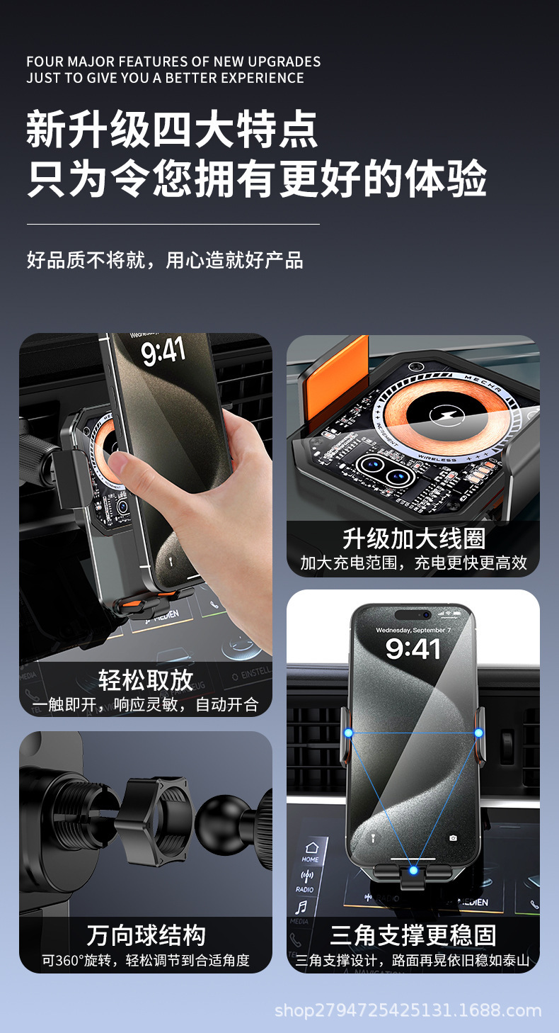 자동차 휴대 전화 브래킷 무선 충전기 빠른 충전 적외선 유도 자동차 콘센트 브래킷 재고 공급스토어 가기