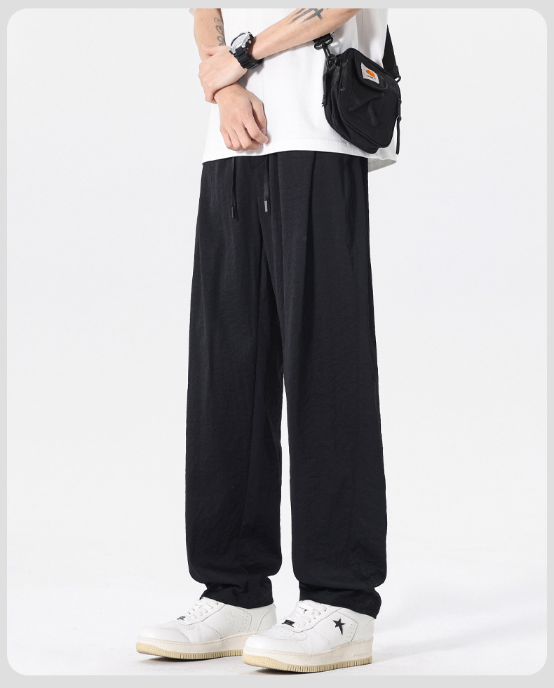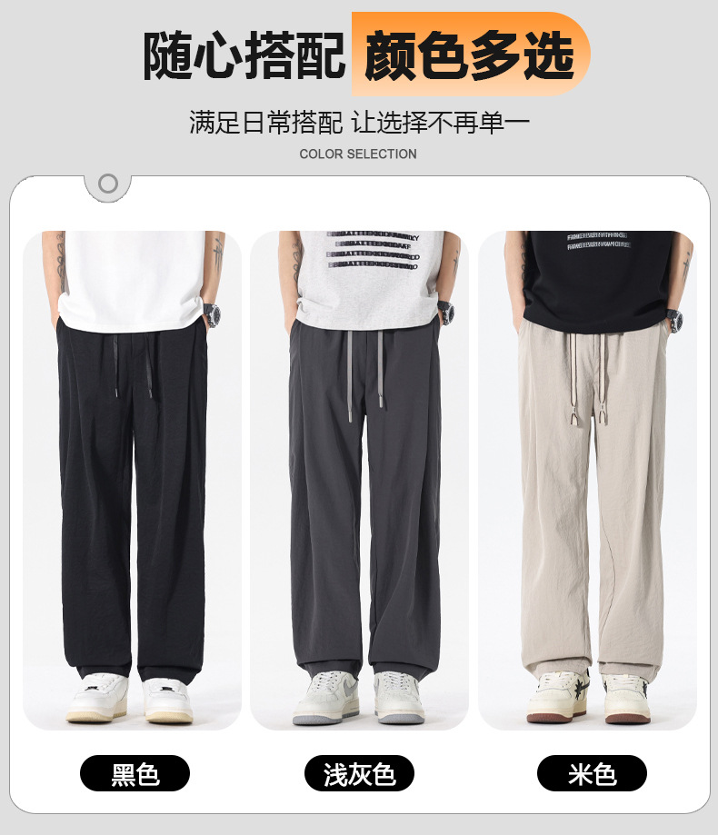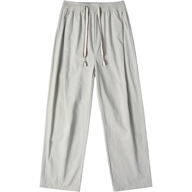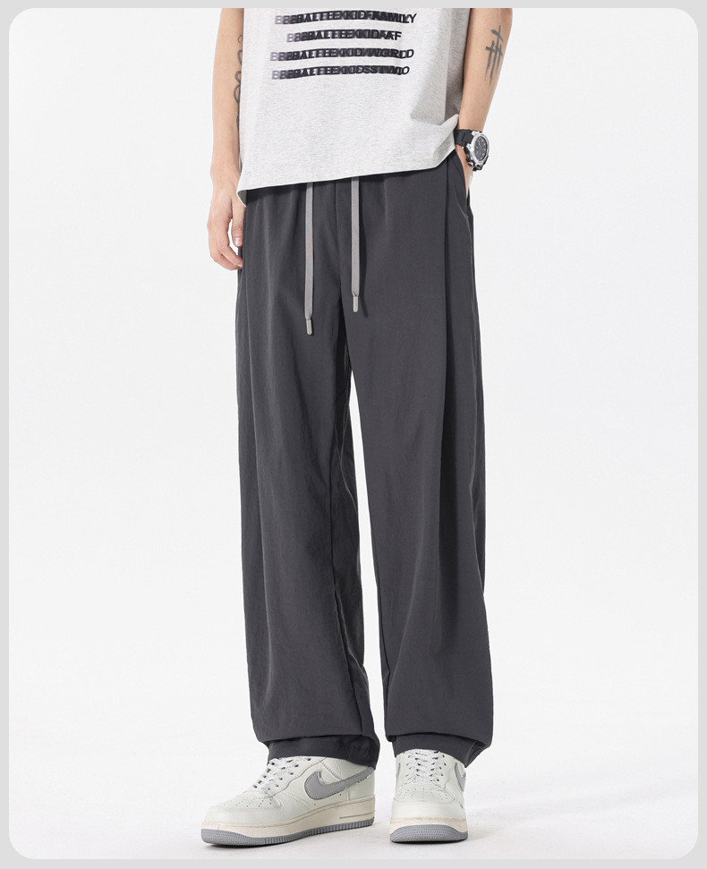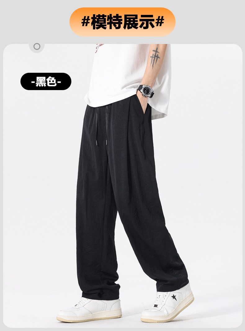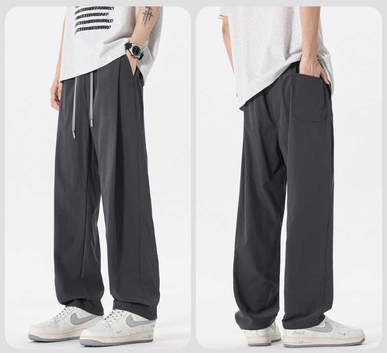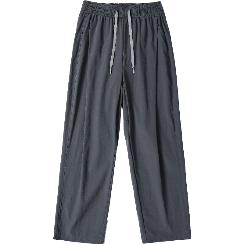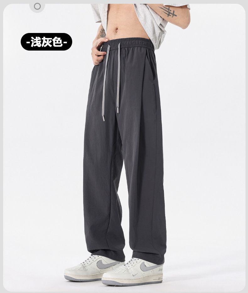 봄과 여름 얇은 고급 회색 얼음 느낌 캐주얼 바지 남성 세트 바지 빠른 건조 드레이프 느낌 에어컨 패턴 질감 시원한 느낌 넓은 다리 바지