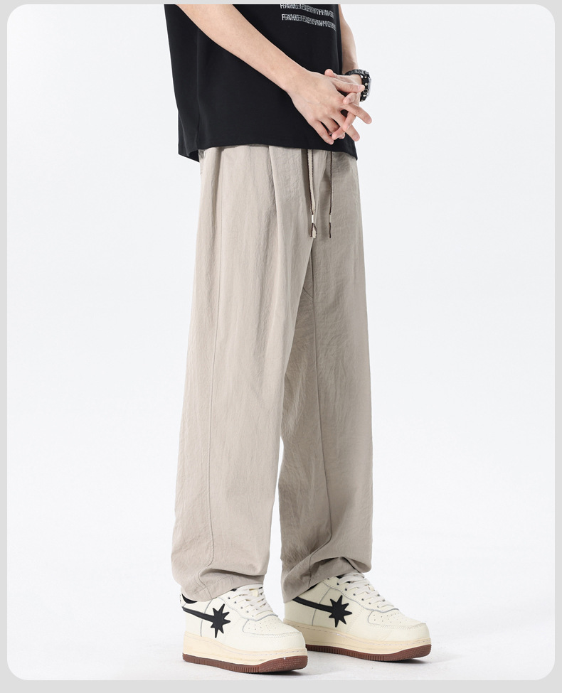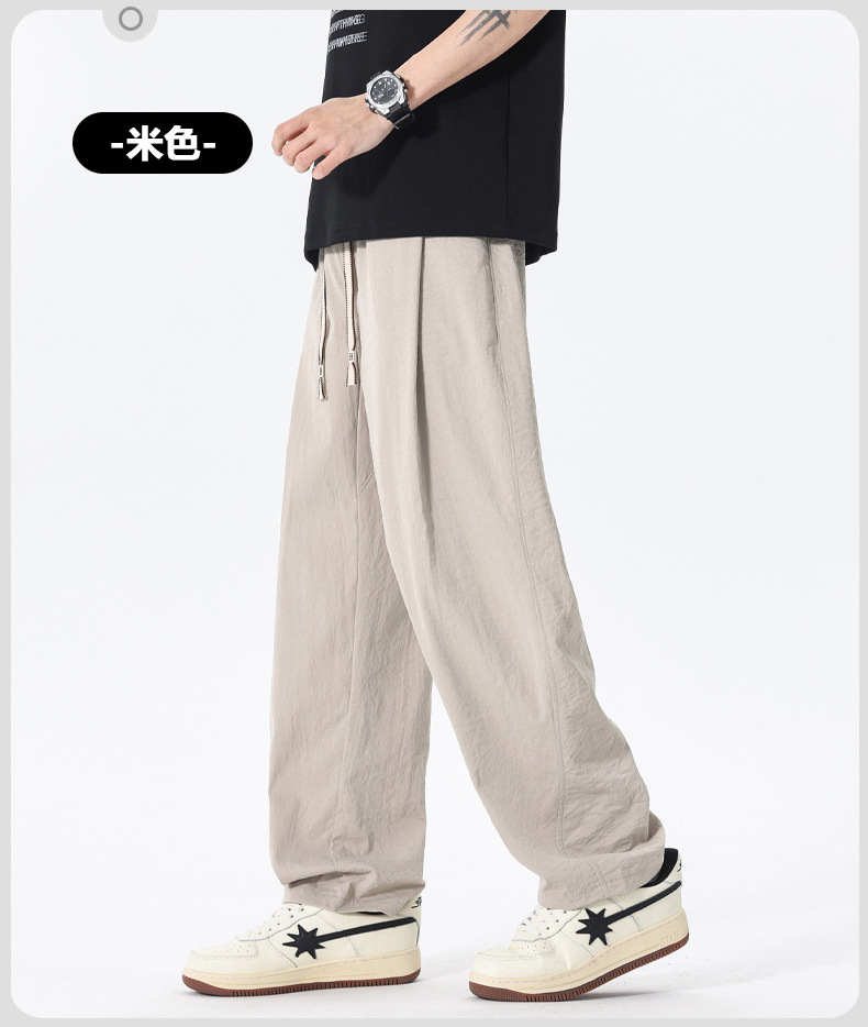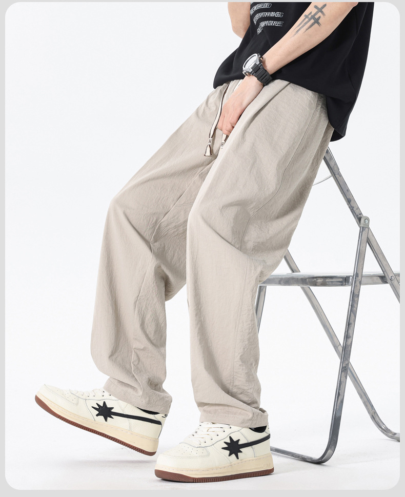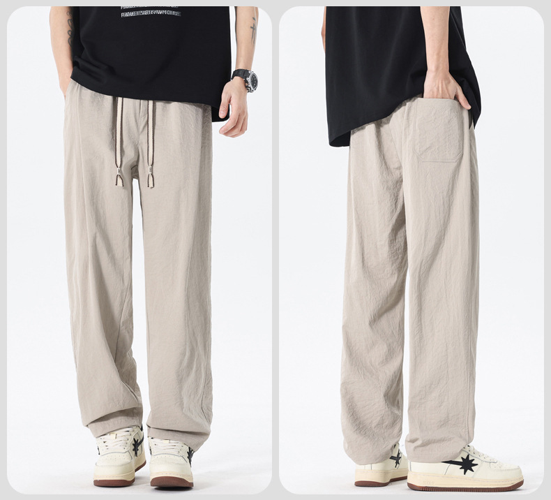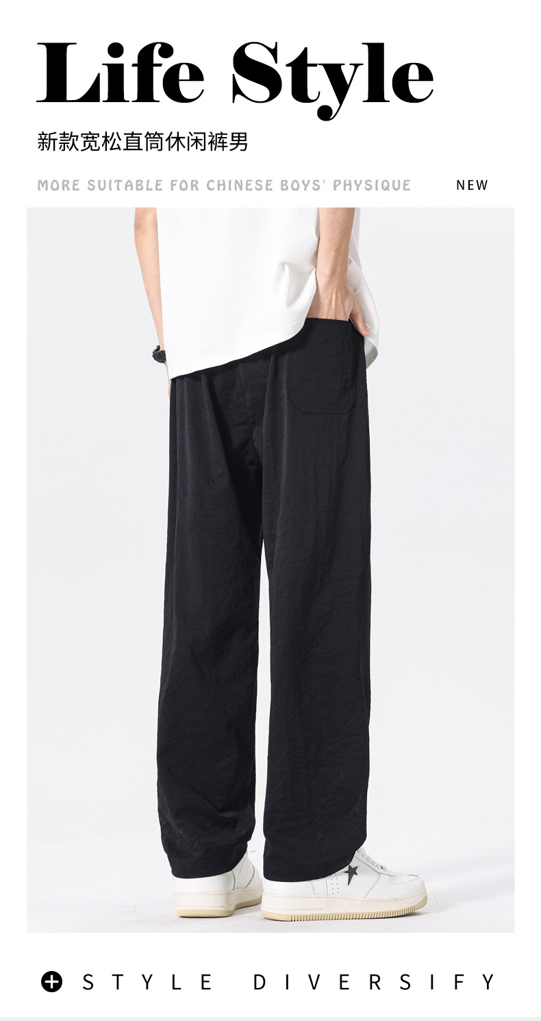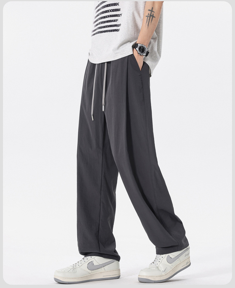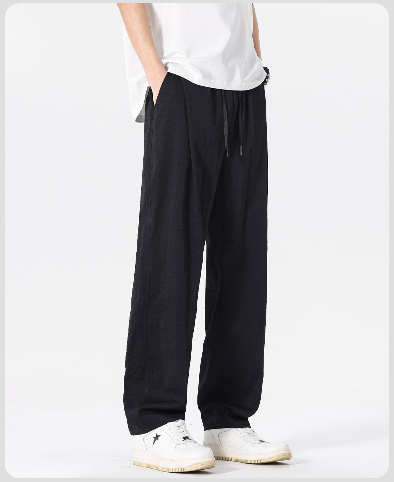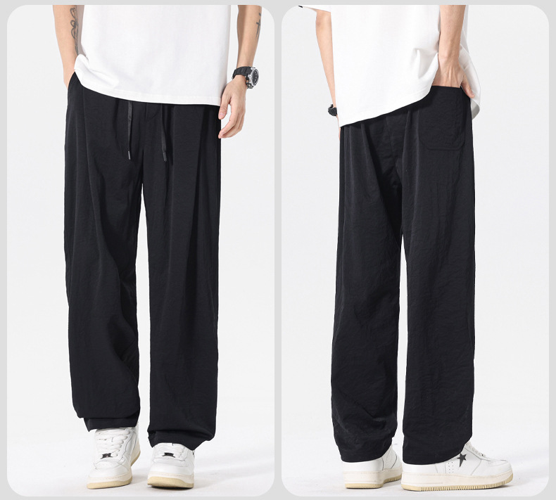 봄과 여름 얇은 고급 회색 얼음 느낌 캐주얼 바지 남성 세트 바지 빠른 건조 드레이프 느낌 에어컨 패턴 질감 시원한 느낌 넓은 다리 바지