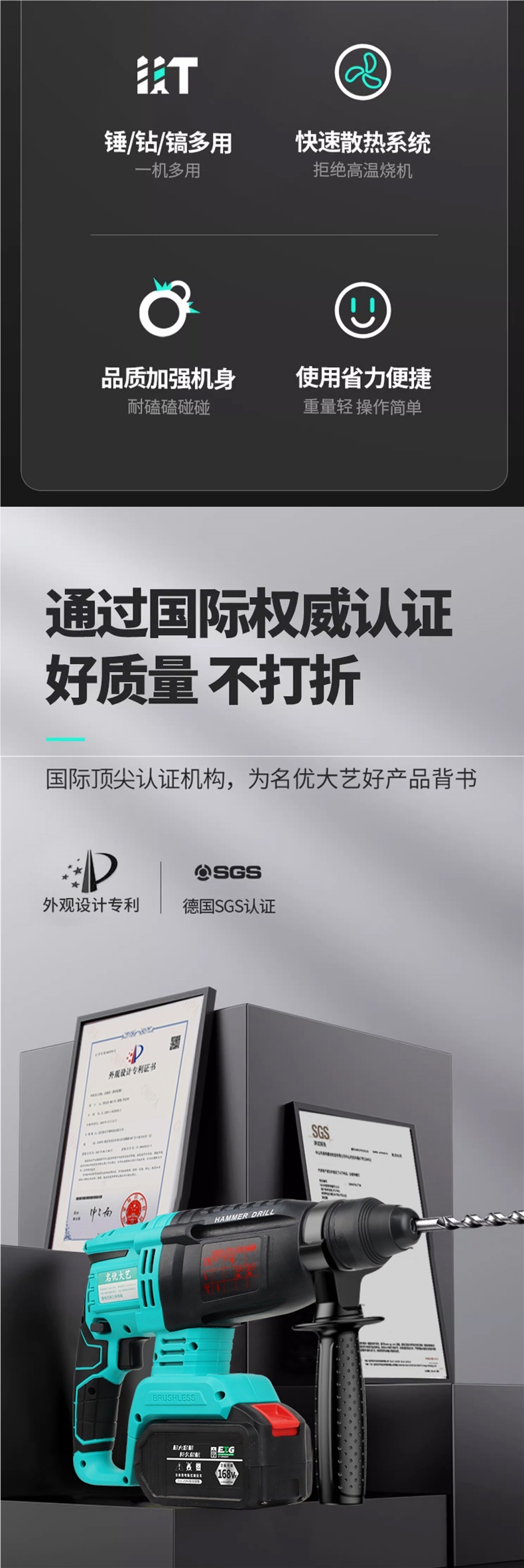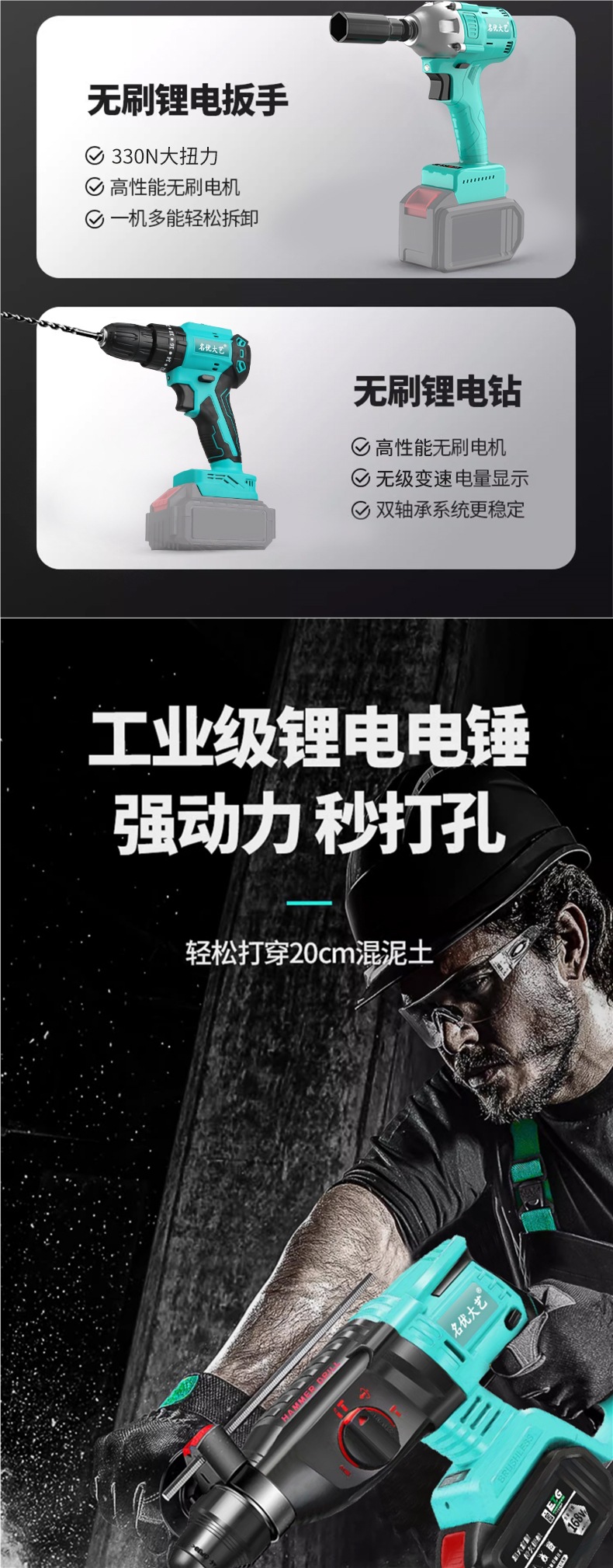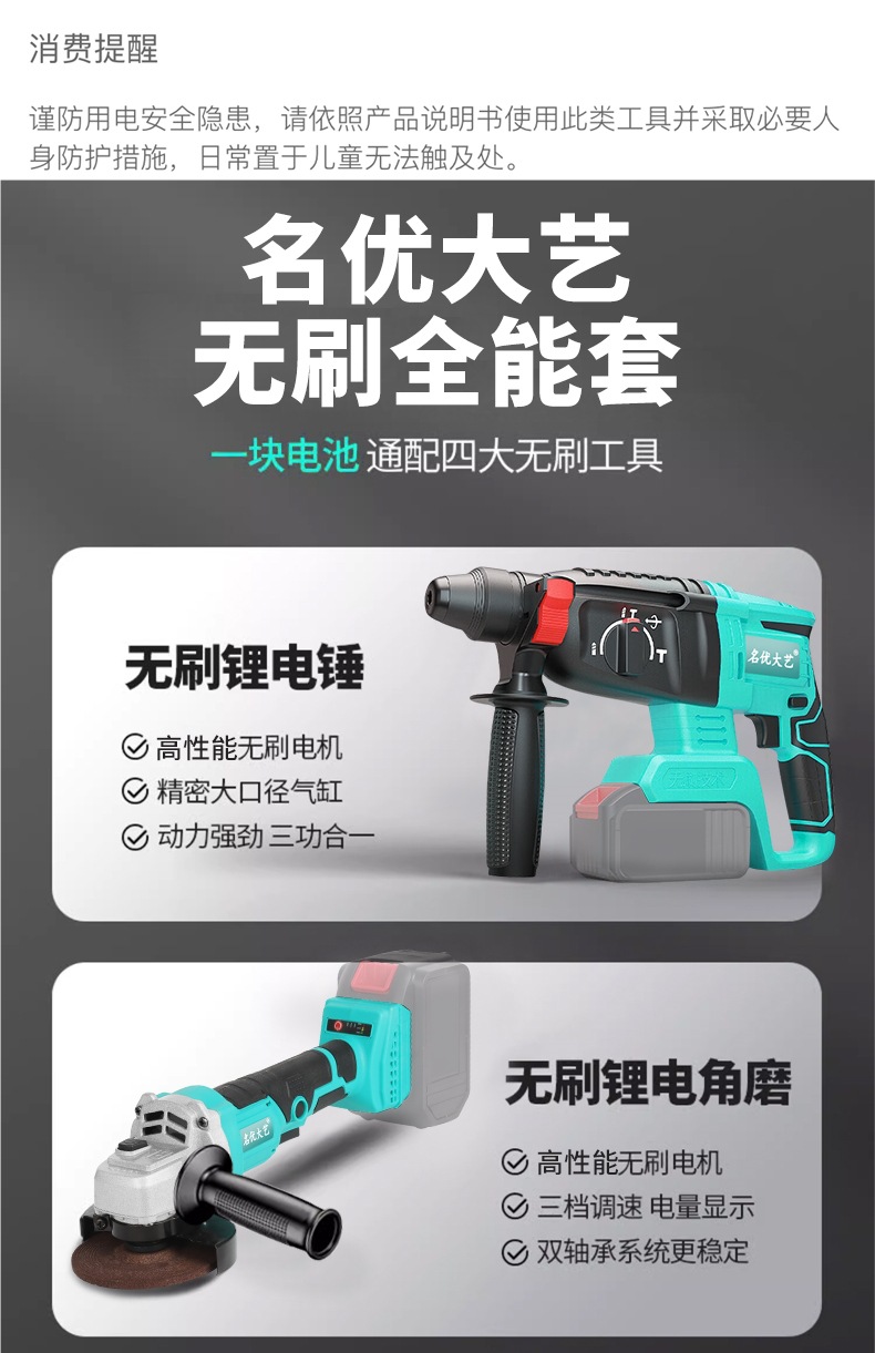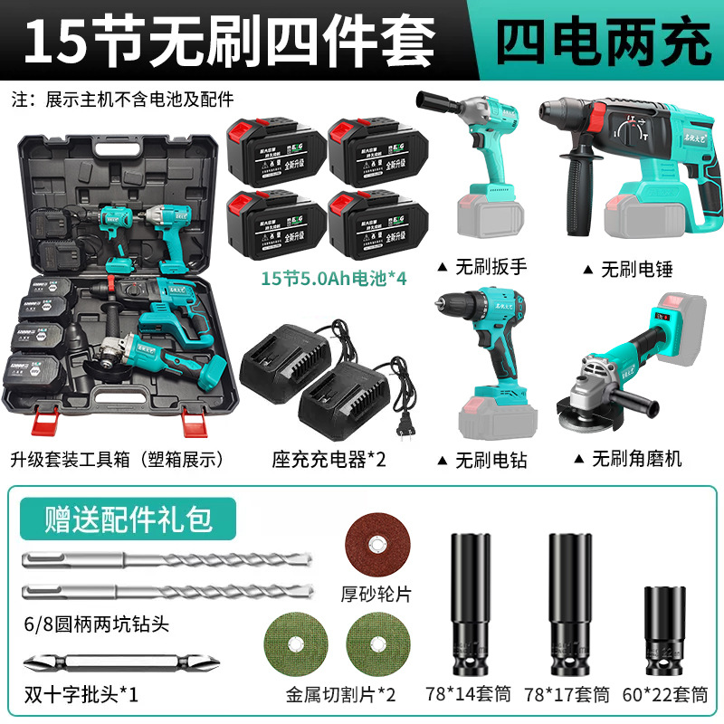 Mingyou Dayi 리튬 배터리 브러시리스 충전식 전기 해머 충격 드릴 앵글 그라인더 전기 드릴 렌치 4 조각 도구 세트