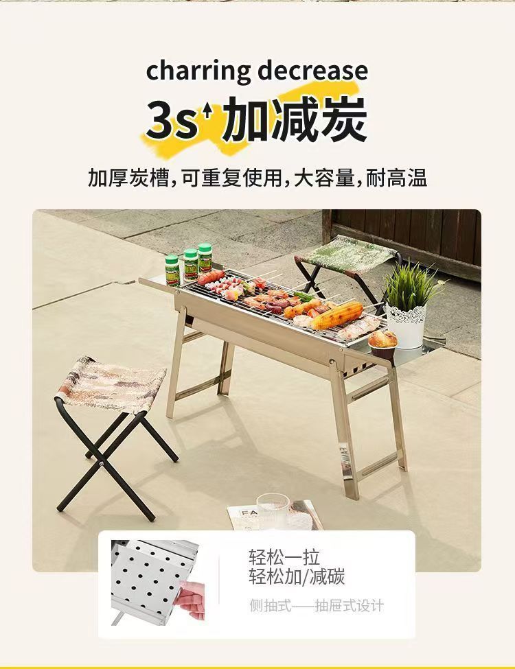 대형 스테인레스 스틸 그릴 목재 내구성 숯 그릴 바베큐 숯 그릴 야외 가정용 그릴 탄소 그릴 스토브 완전한 세트스토어 가기