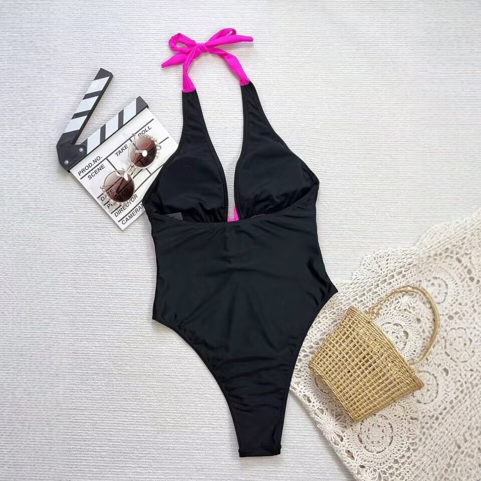 2025년 외국 무역용 원피스 솔리드 컬러 수영복 여성용 유럽 및 미국 크로스보더 비키니 끈 수영복 Z0739 슬림핏