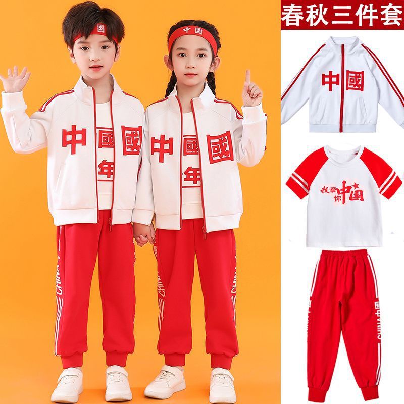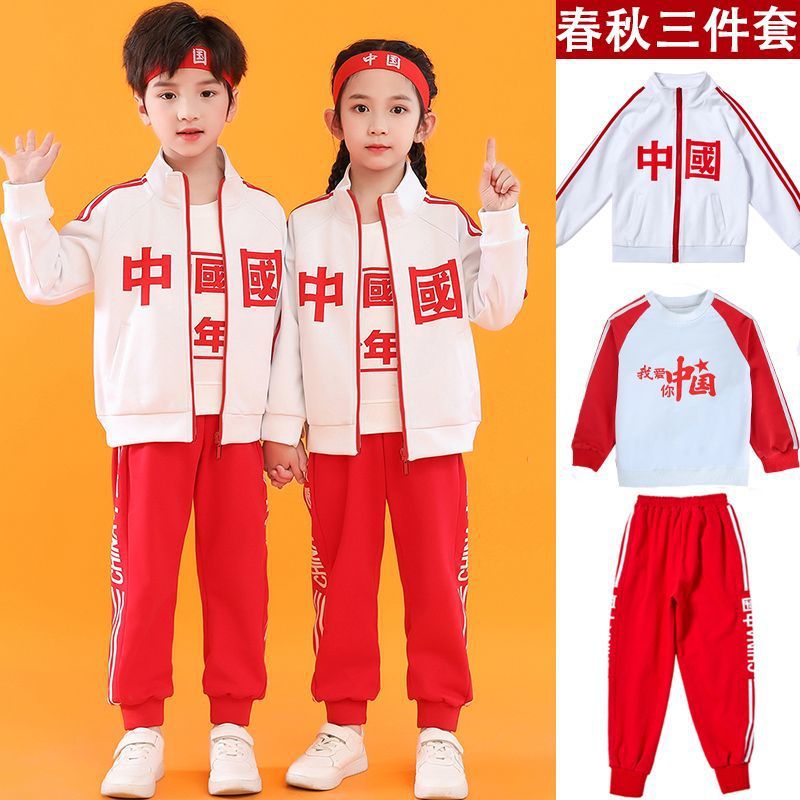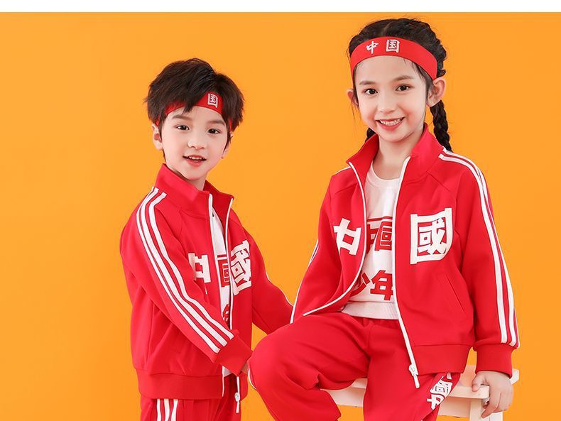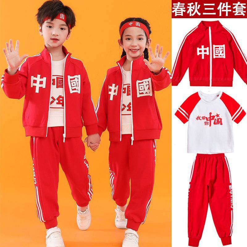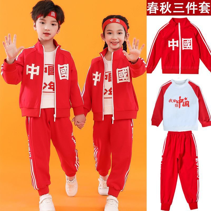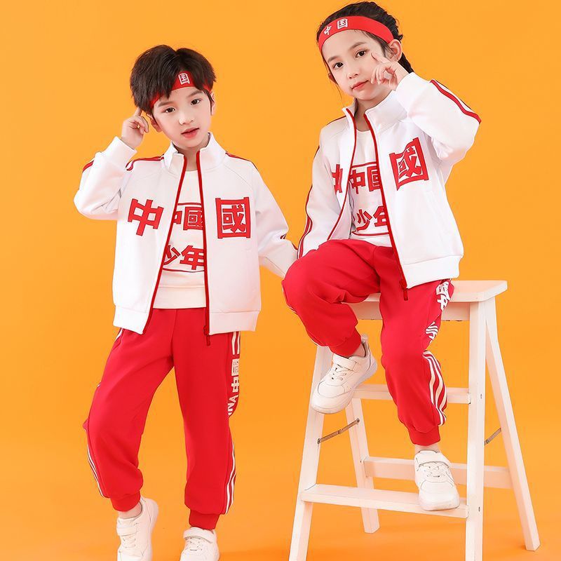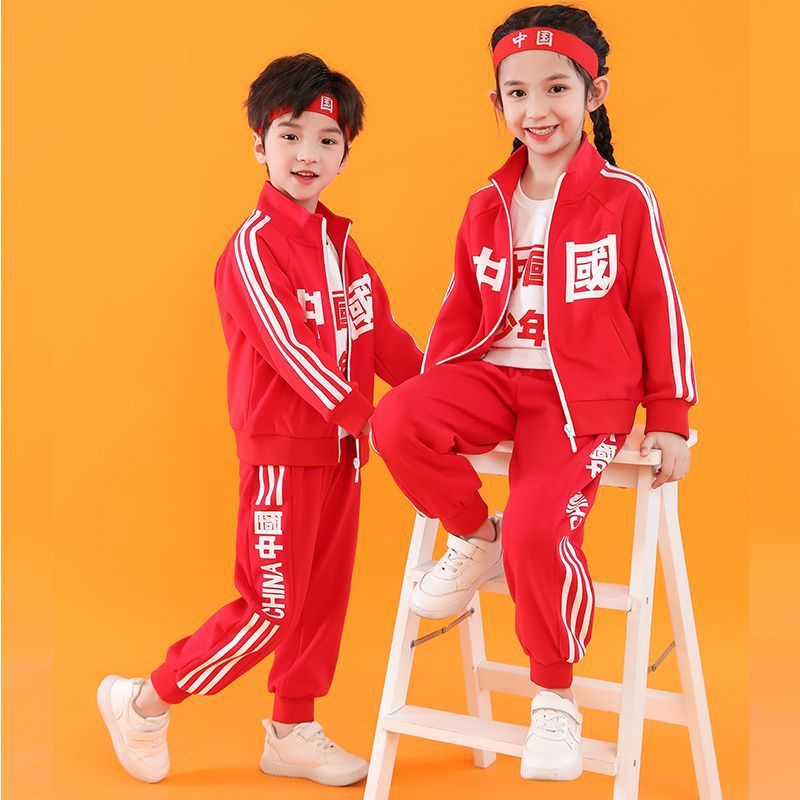 설날 초등 학교 게임 공연 옷 세트 중국 붉은 학교 유니폼 어린이 공연 옷 유치원 정원 옷