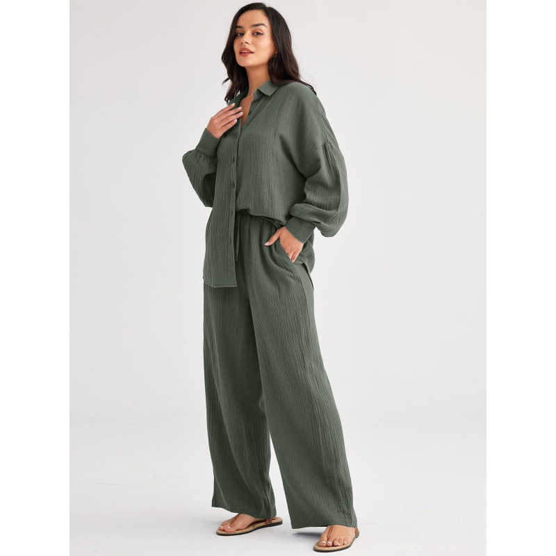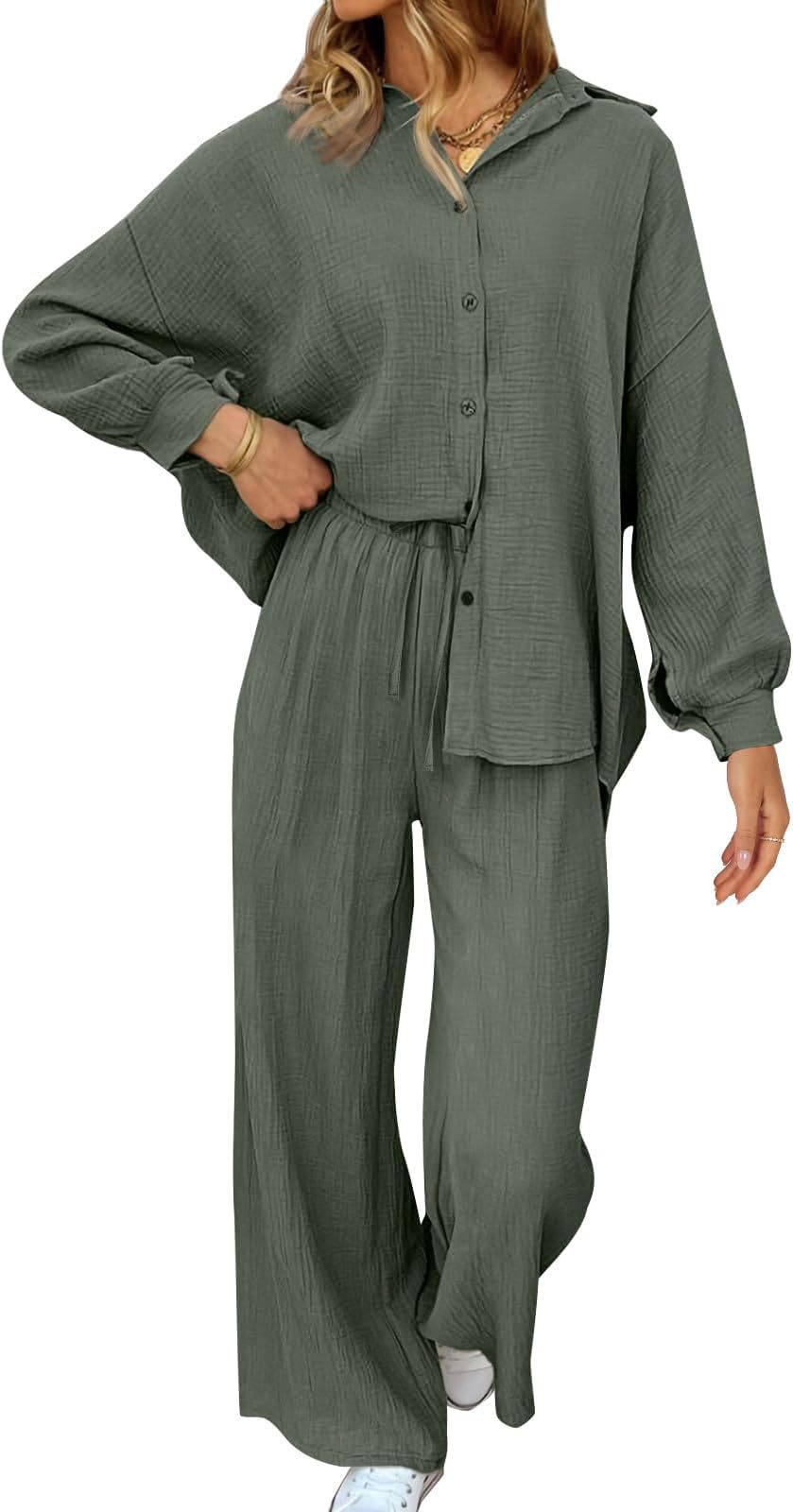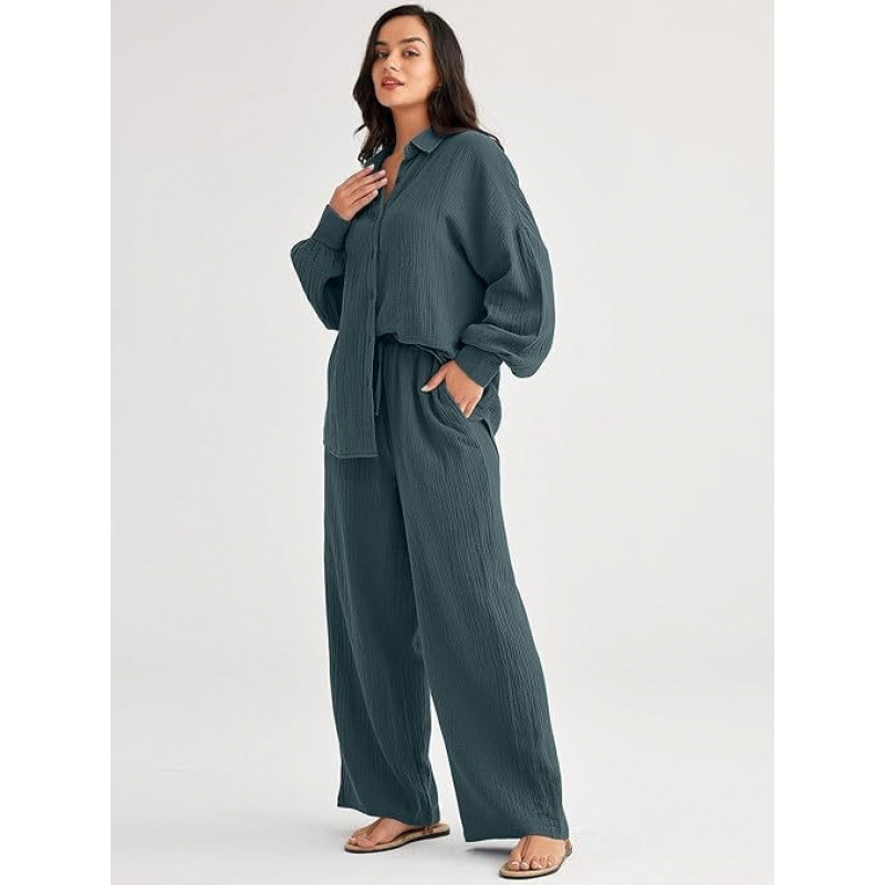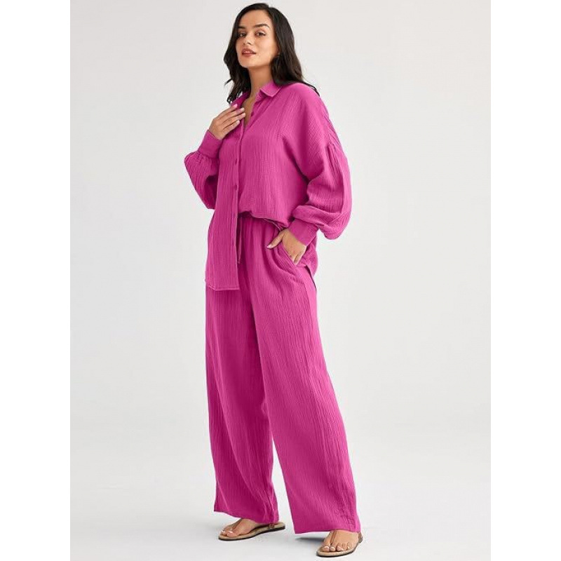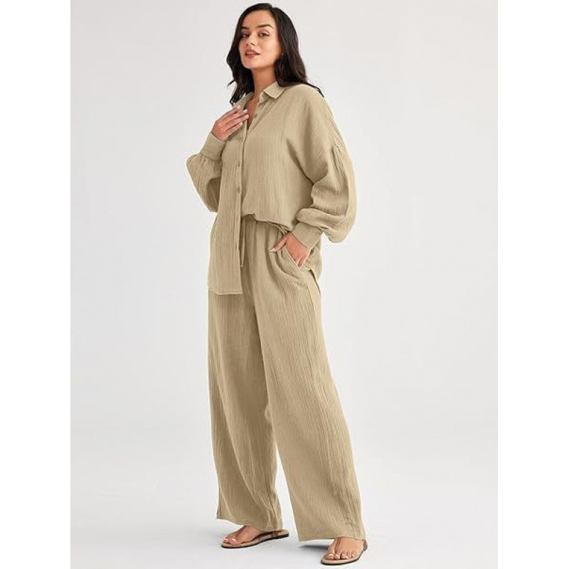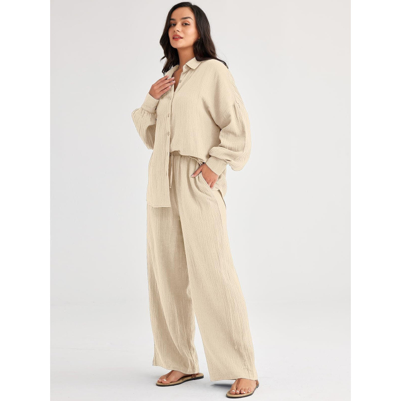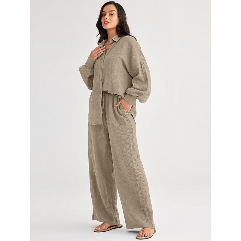 대량 재고 2026년 아마존 해외판 신상 패션 세트 루즈핏 캐주얼 상의 와이드 팬츠 투피스 여성 세트