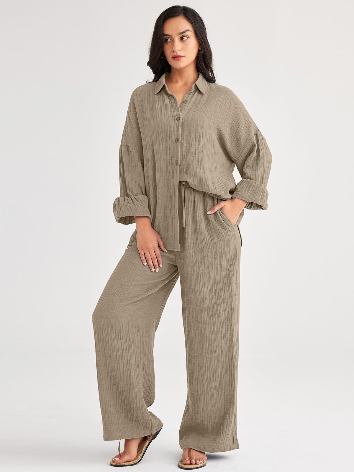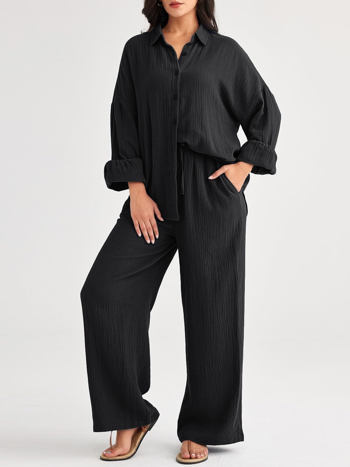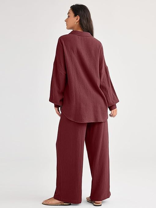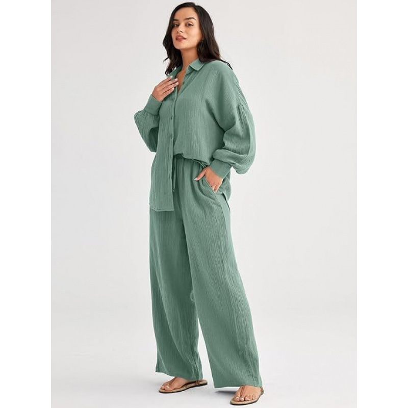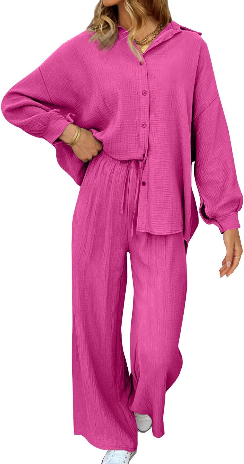대량 재고 2026년 아마존 해외판 신상 패션 세트 루즈핏 캐주얼 상의 와이드 팬츠 투피스 여성 세트