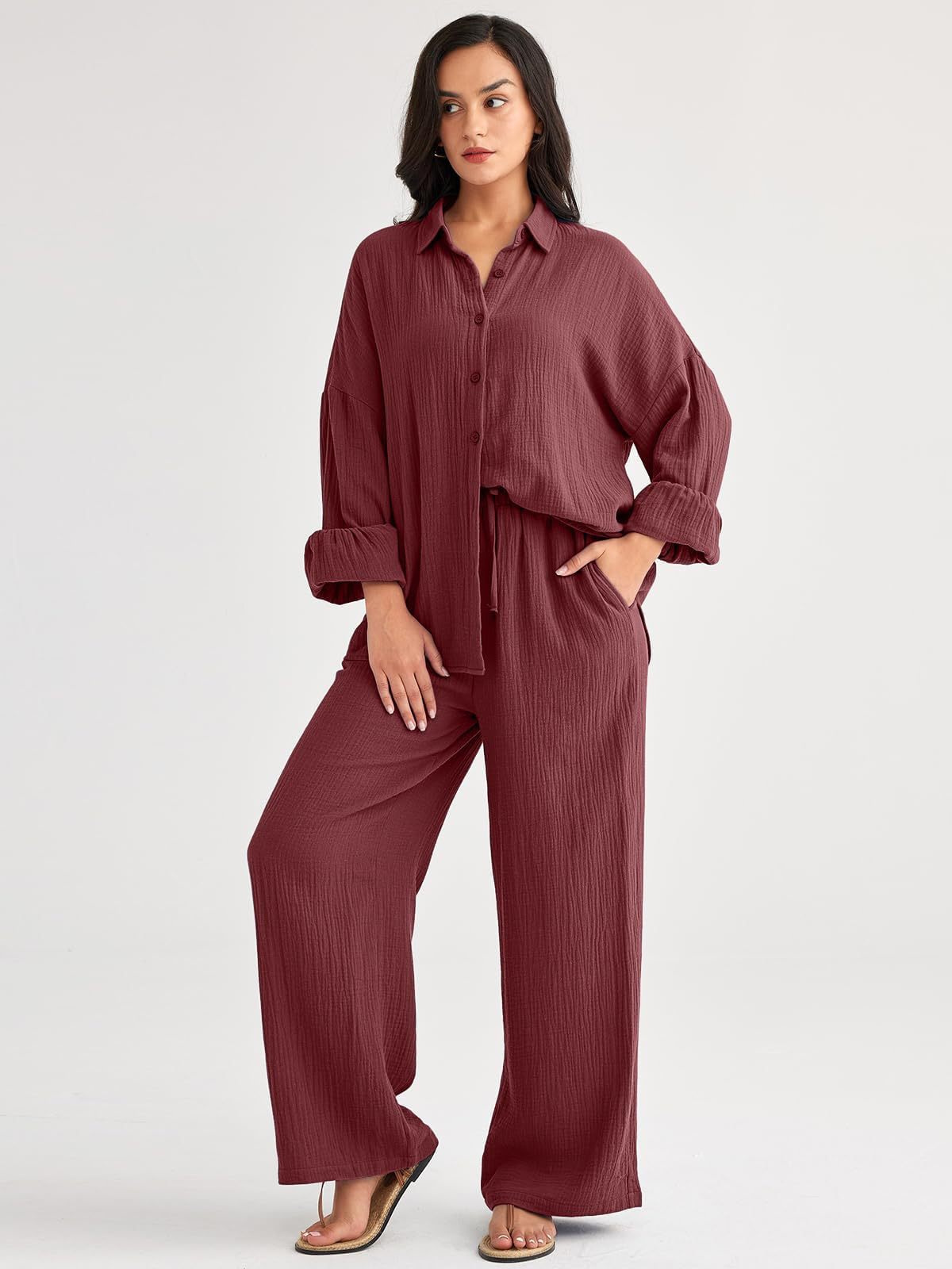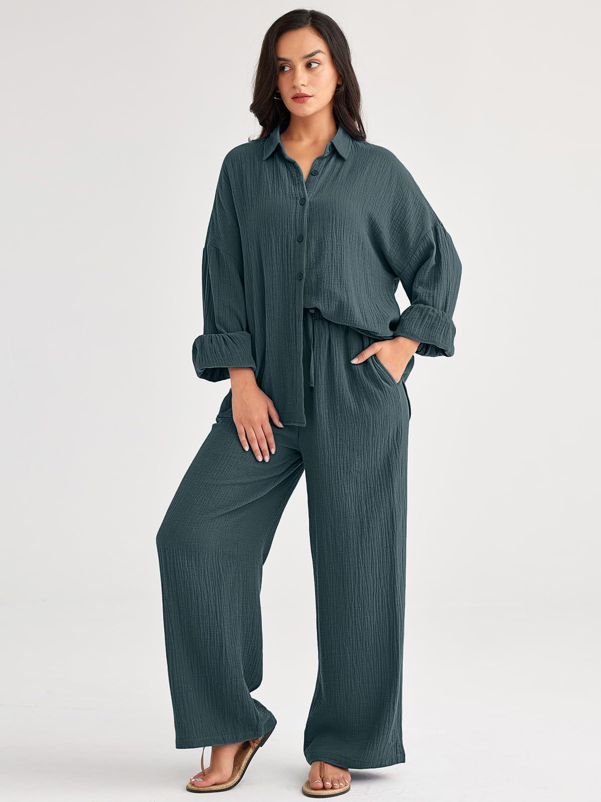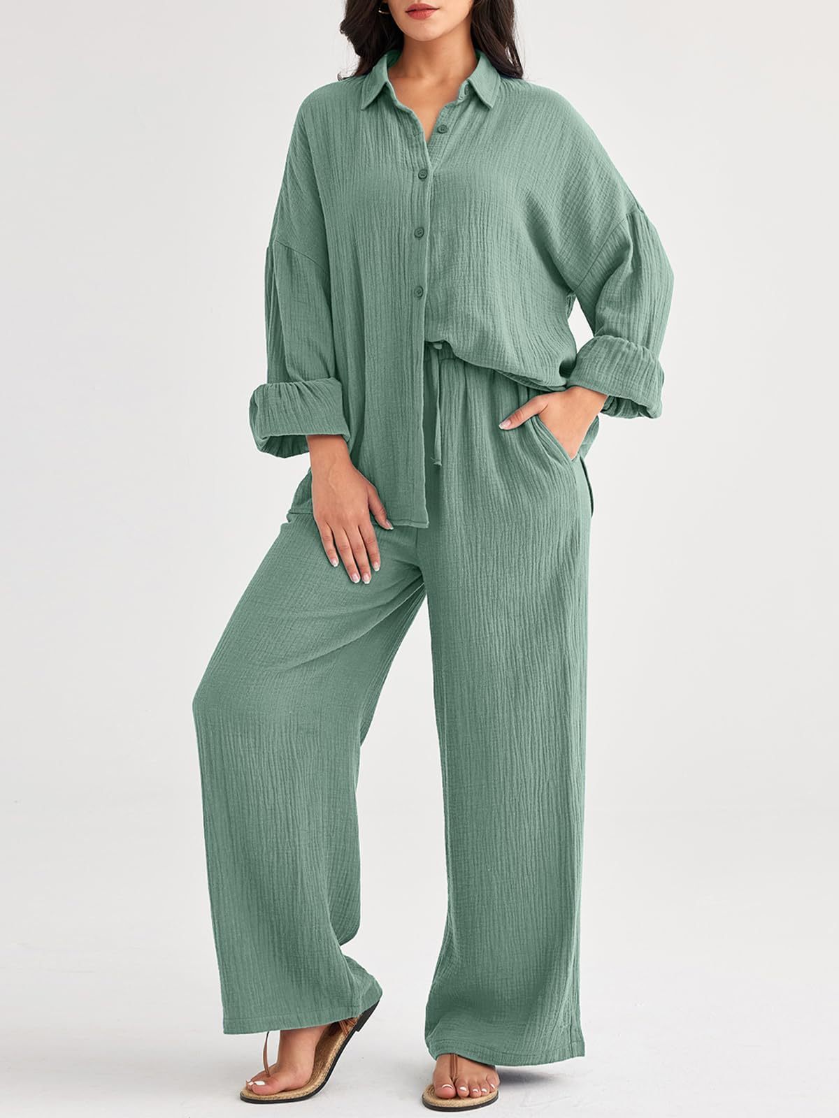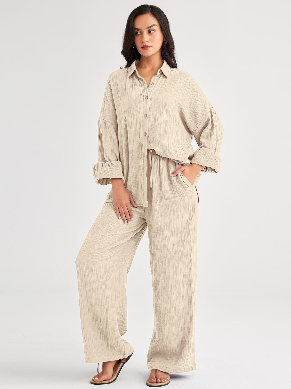 대량 재고 2026년 아마존 해외판 신상 패션 세트 루즈핏 캐주얼 상의 와이드 팬츠 투피스 여성 세트