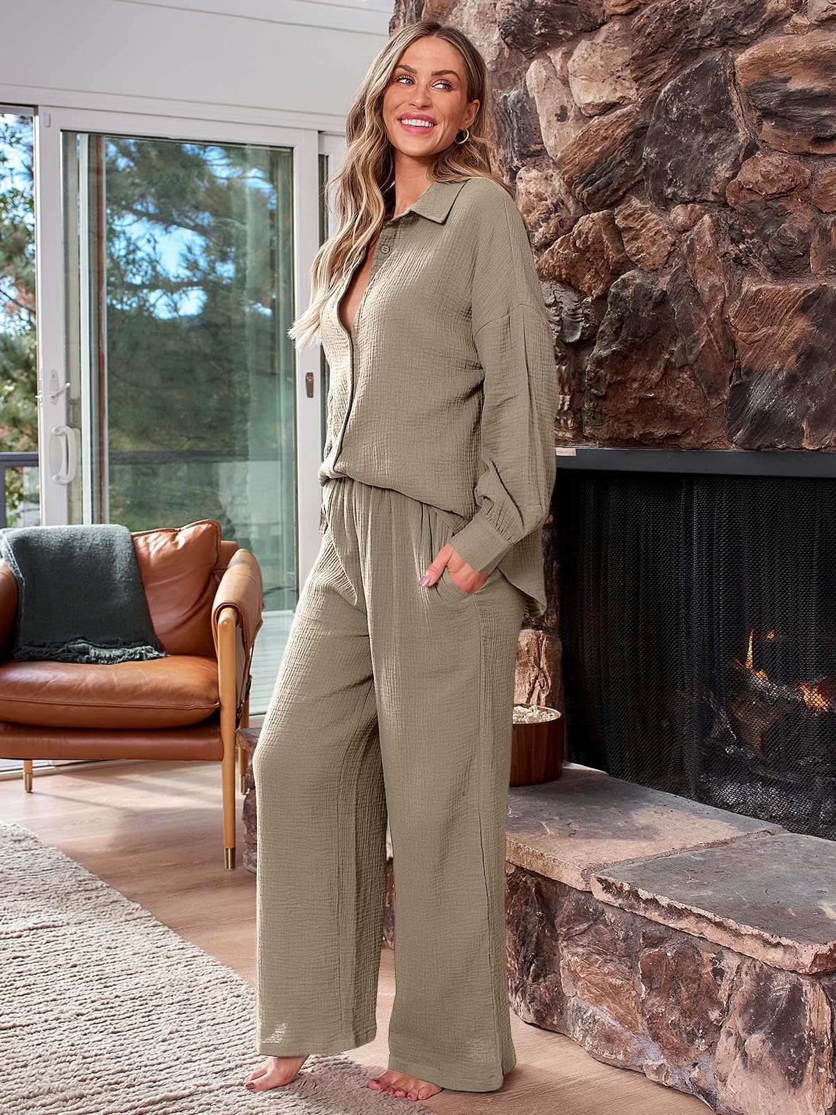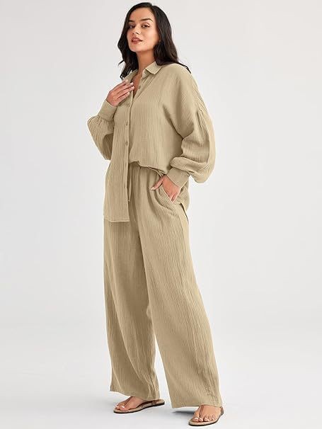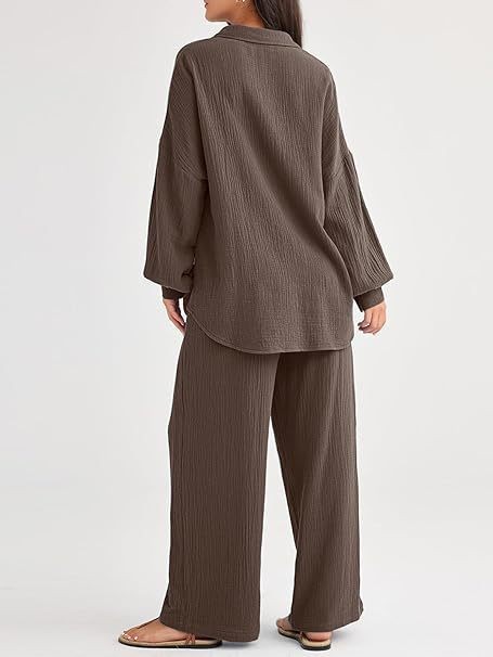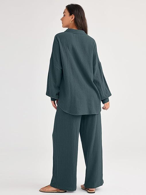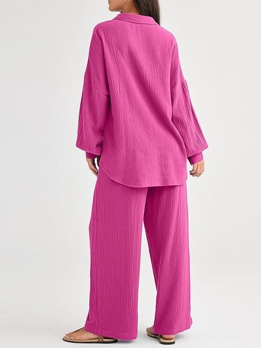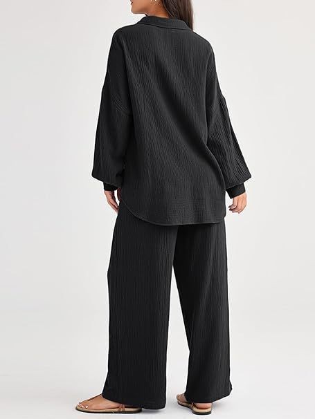 대량 재고 2026년 아마존 해외판 신상 패션 세트 루즈핏 캐주얼 상의 와이드 팬츠 투피스 여성 세트스토어 가기