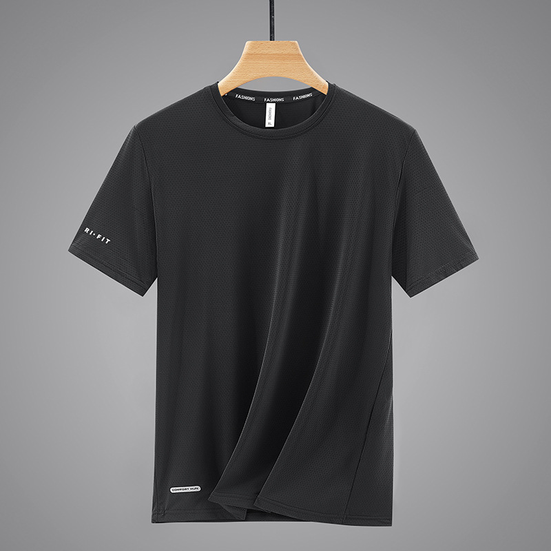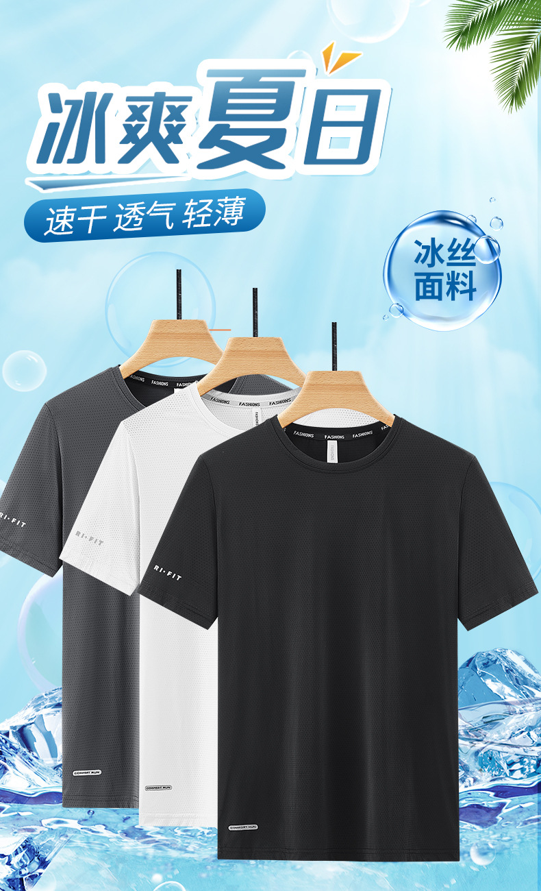 아이스 실크 반팔 남자 여름 느슨한 달리기 피트니스 티셔츠 플러스 사이즈 빠른 건조 통기성 땀 흡수 스포츠 탑스토어 가기