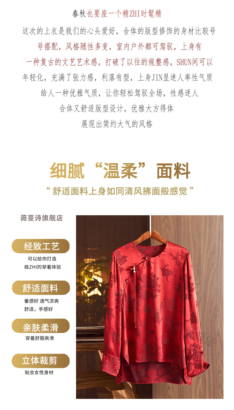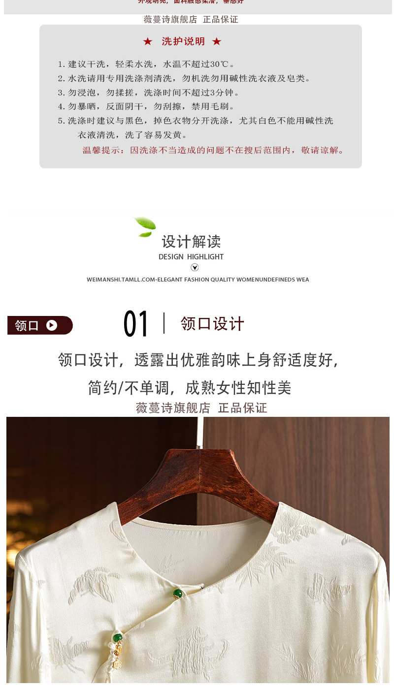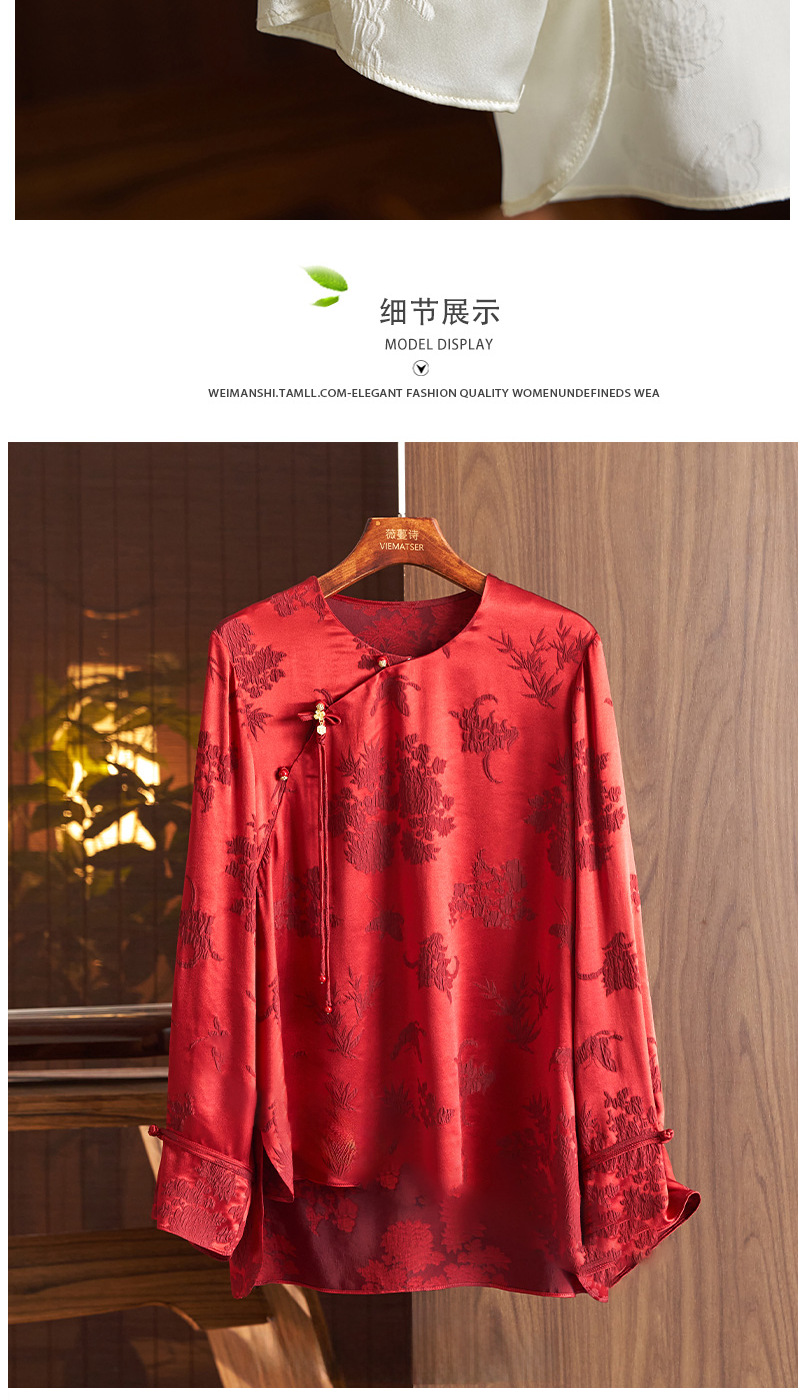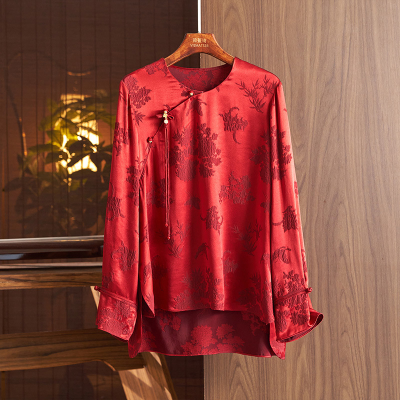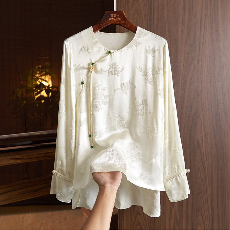 [1173 인민 컬렉션] 고급 뽕나무 실크 자카드 셔츠 여성의 봄과 가을 새로운 중국 스타일 실크 복고풍 비스듬한