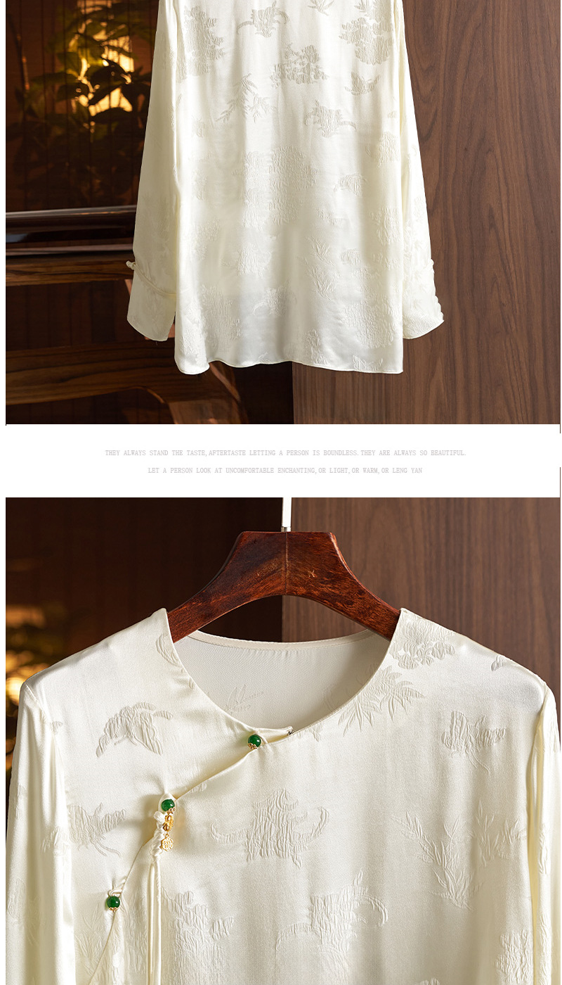 [1173 인민 컬렉션] 고급 뽕나무 실크 자카드 셔츠 여성의 봄과 가을 새로운 중국 스타일 실크 복고풍 비스듬한스토어 가기