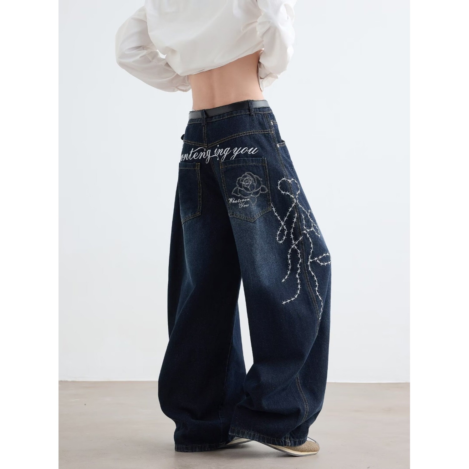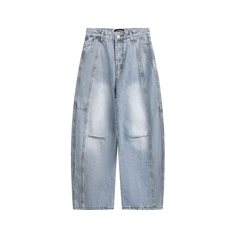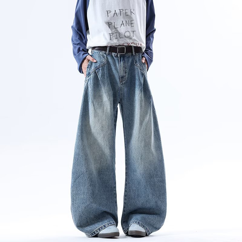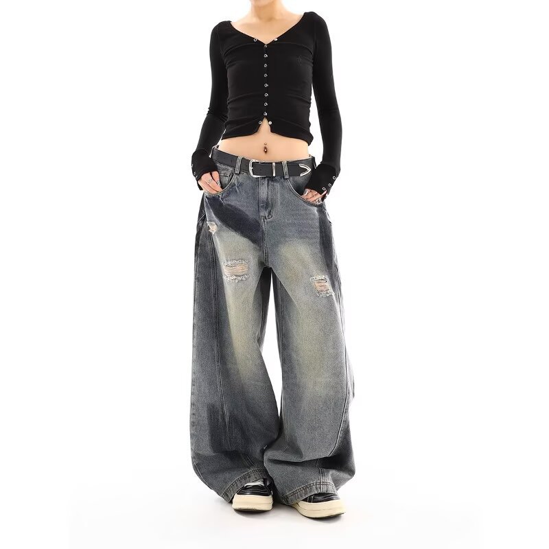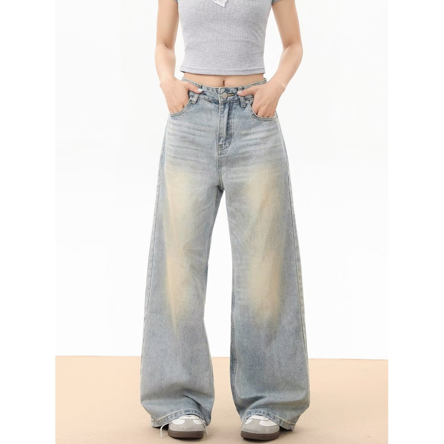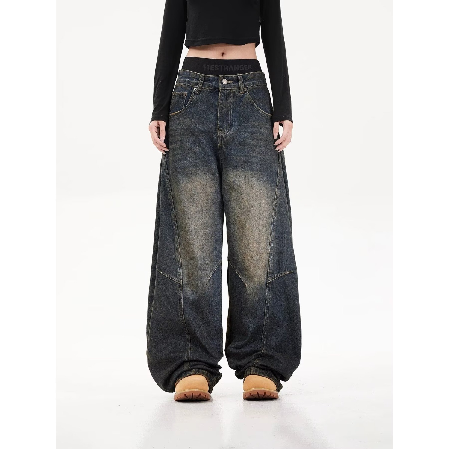 빈티지 대형 포켓 Machete 청바지 여성의 가을 새로운 하이 스트리트 디자인 센스 루즈 슬리밍 스트레이트 레그 와이드 레그 팬츠스토어 가기