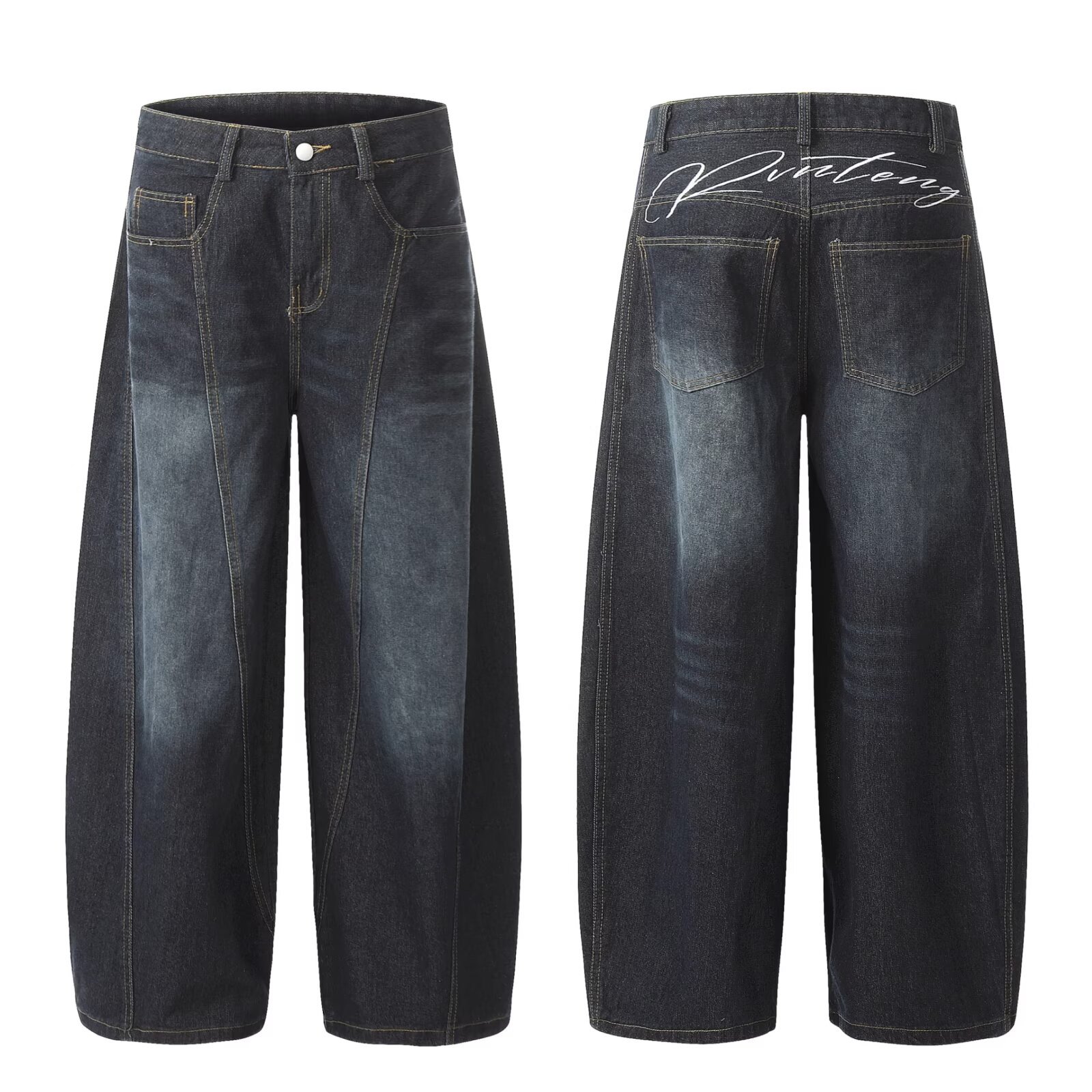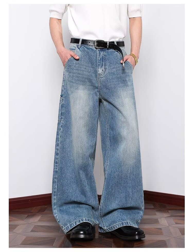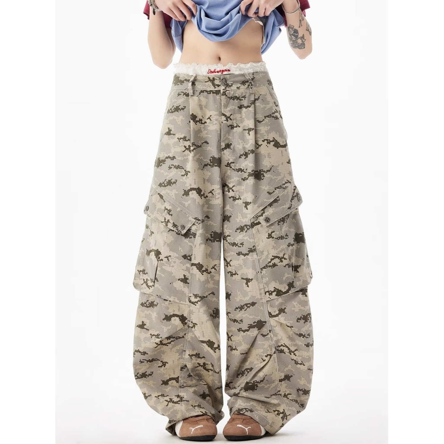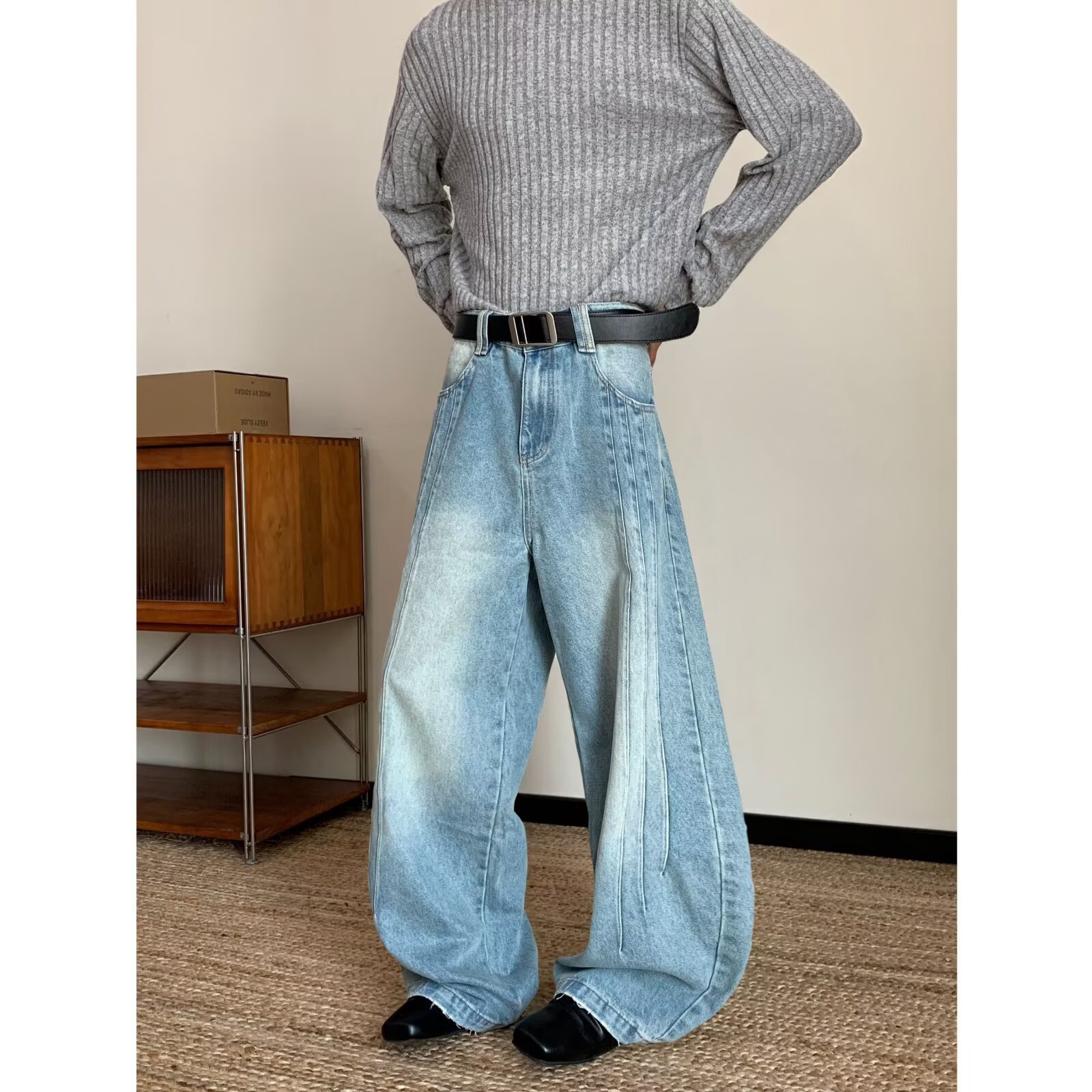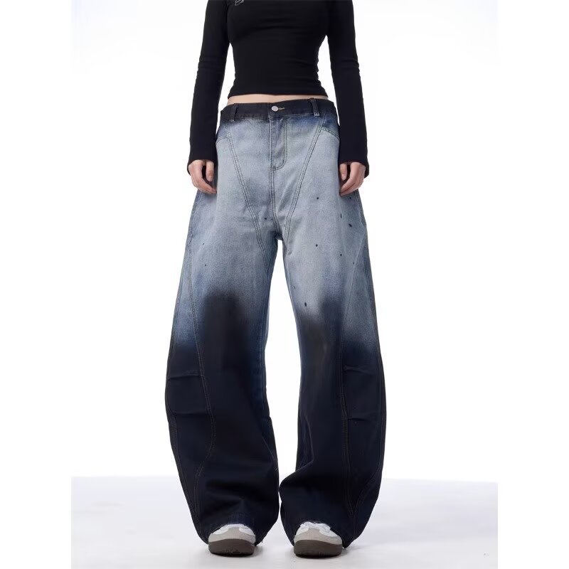 빈티지 대형 포켓 Machete 청바지 여성의 가을 새로운 하이 스트리트 디자인 센스 루즈 슬리밍 스트레이트 레그 와이드 레그 팬츠스토어 가기