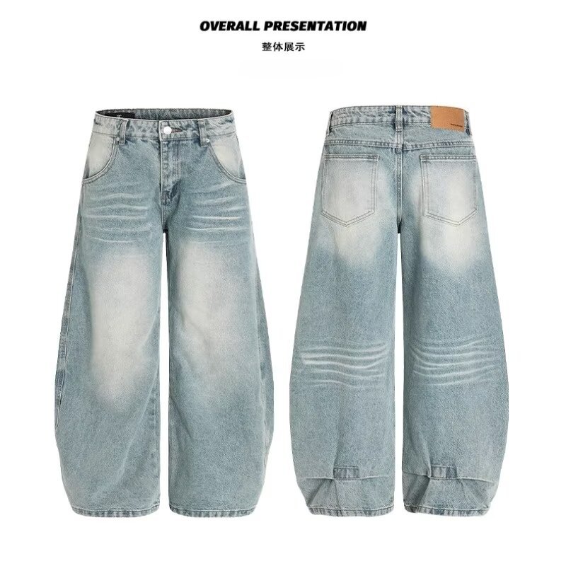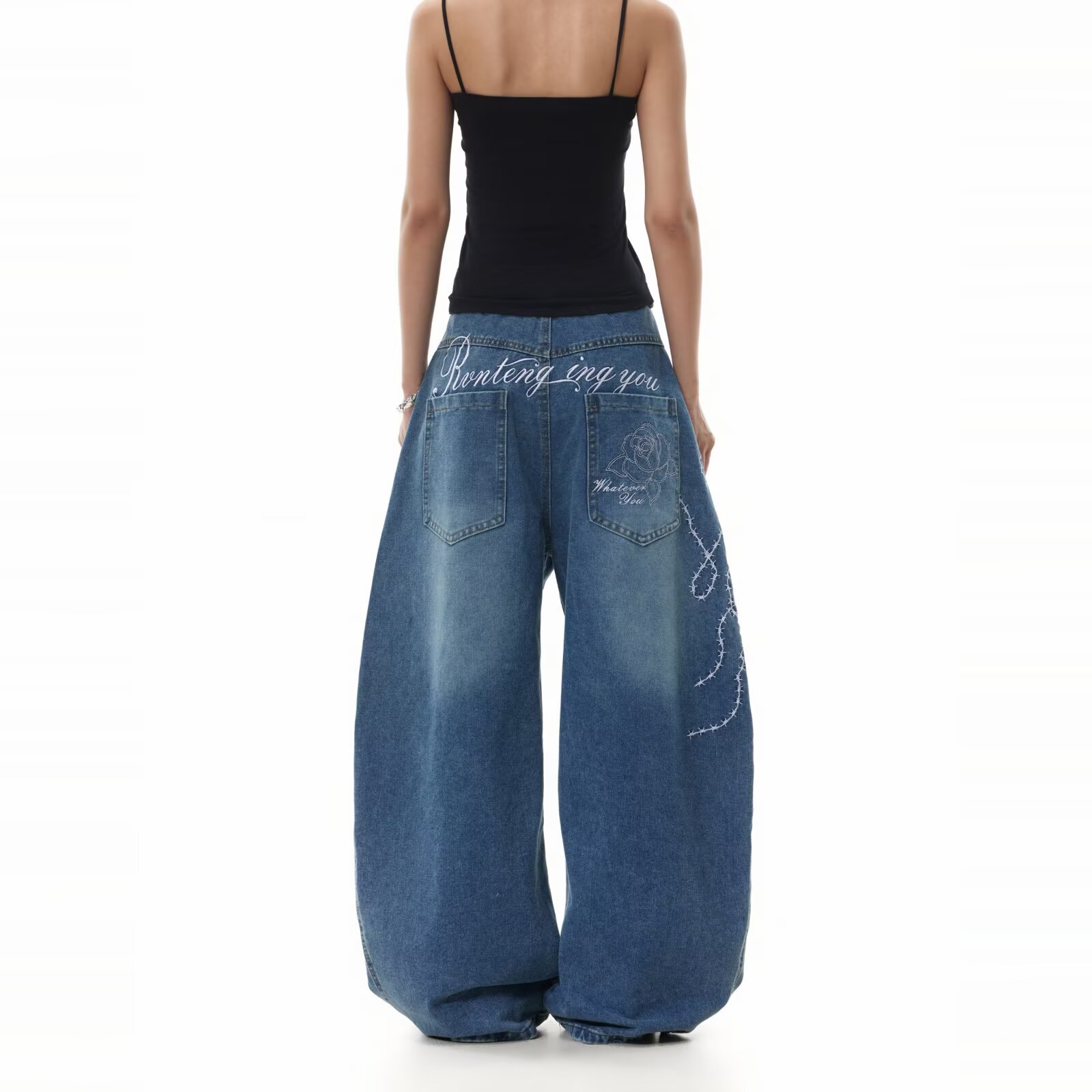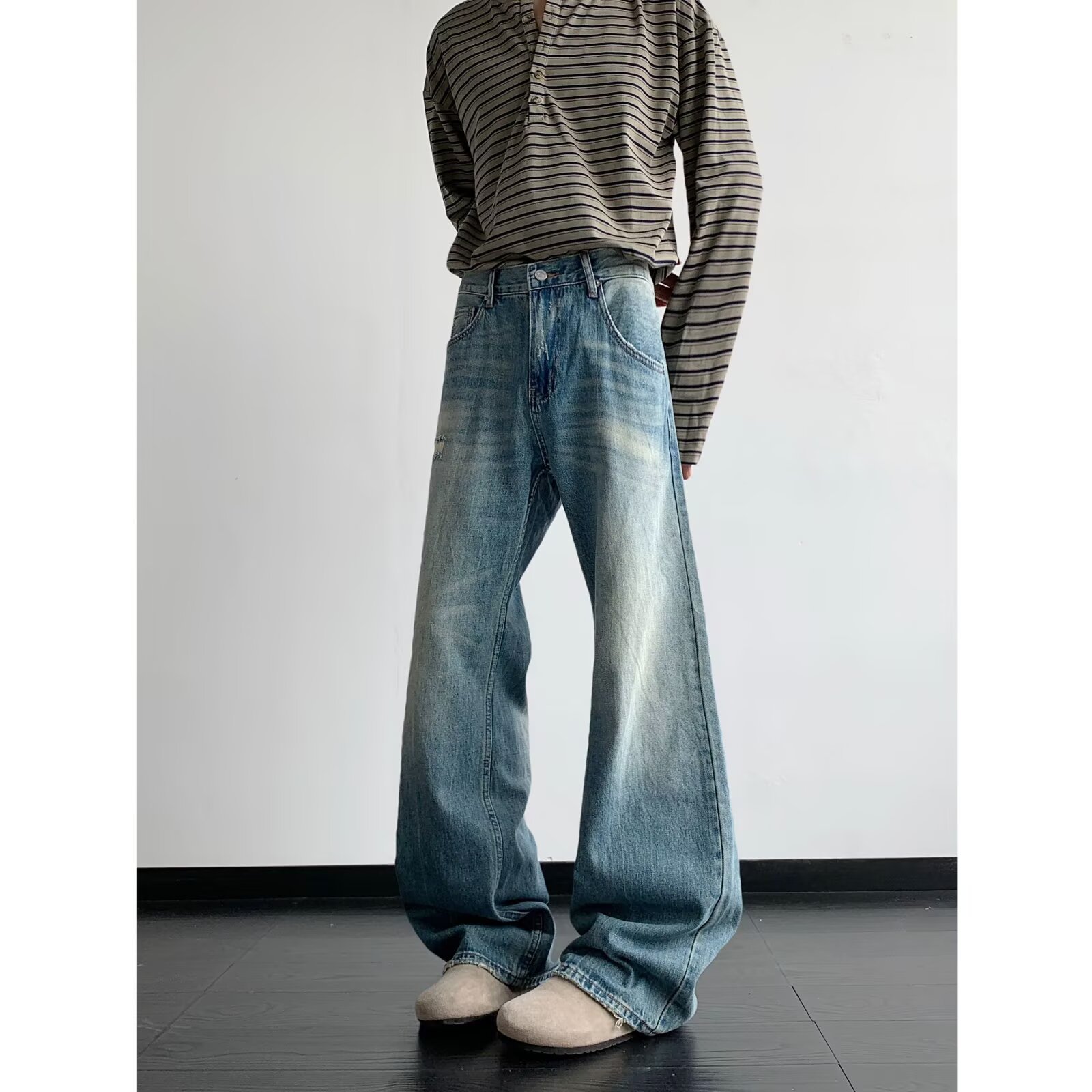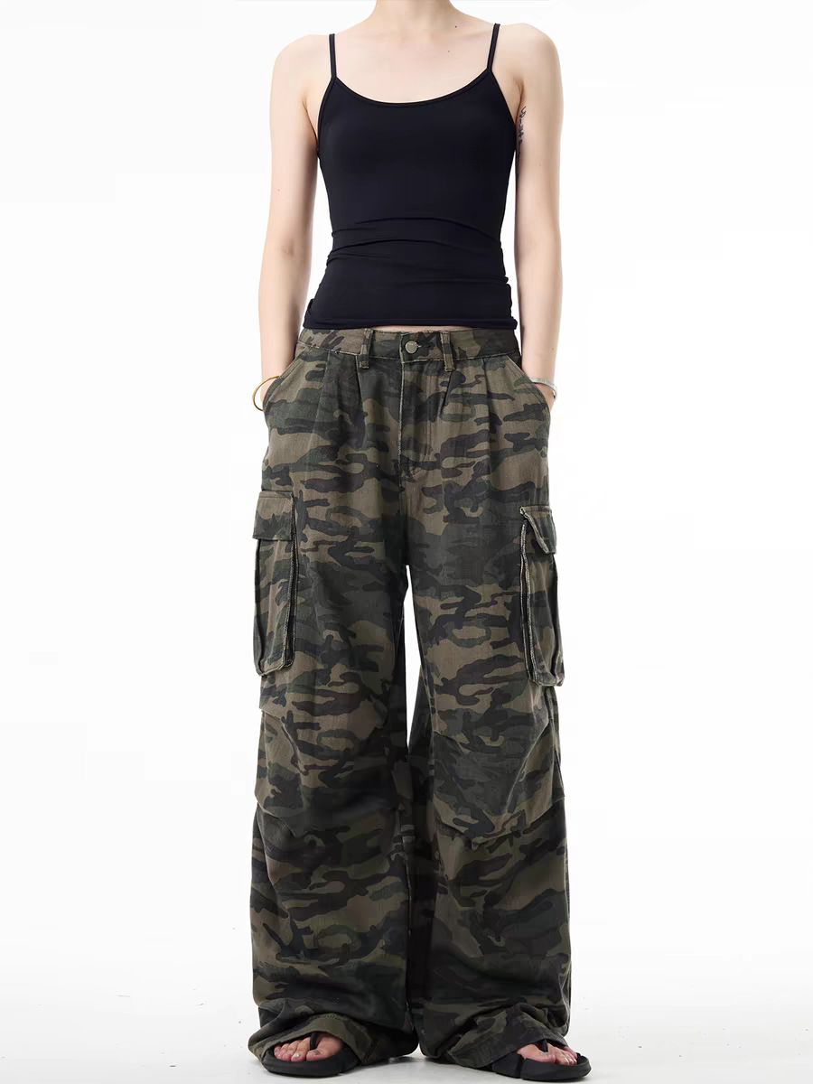 빈티지 대형 포켓 Machete 청바지 여성의 가을 새로운 하이 스트리트 디자인 센스 루즈 슬리밍 스트레이트 레그 와이드 레그 팬츠스토어 가기