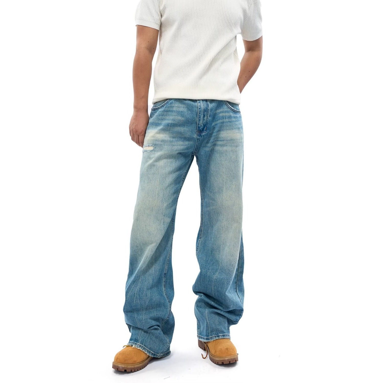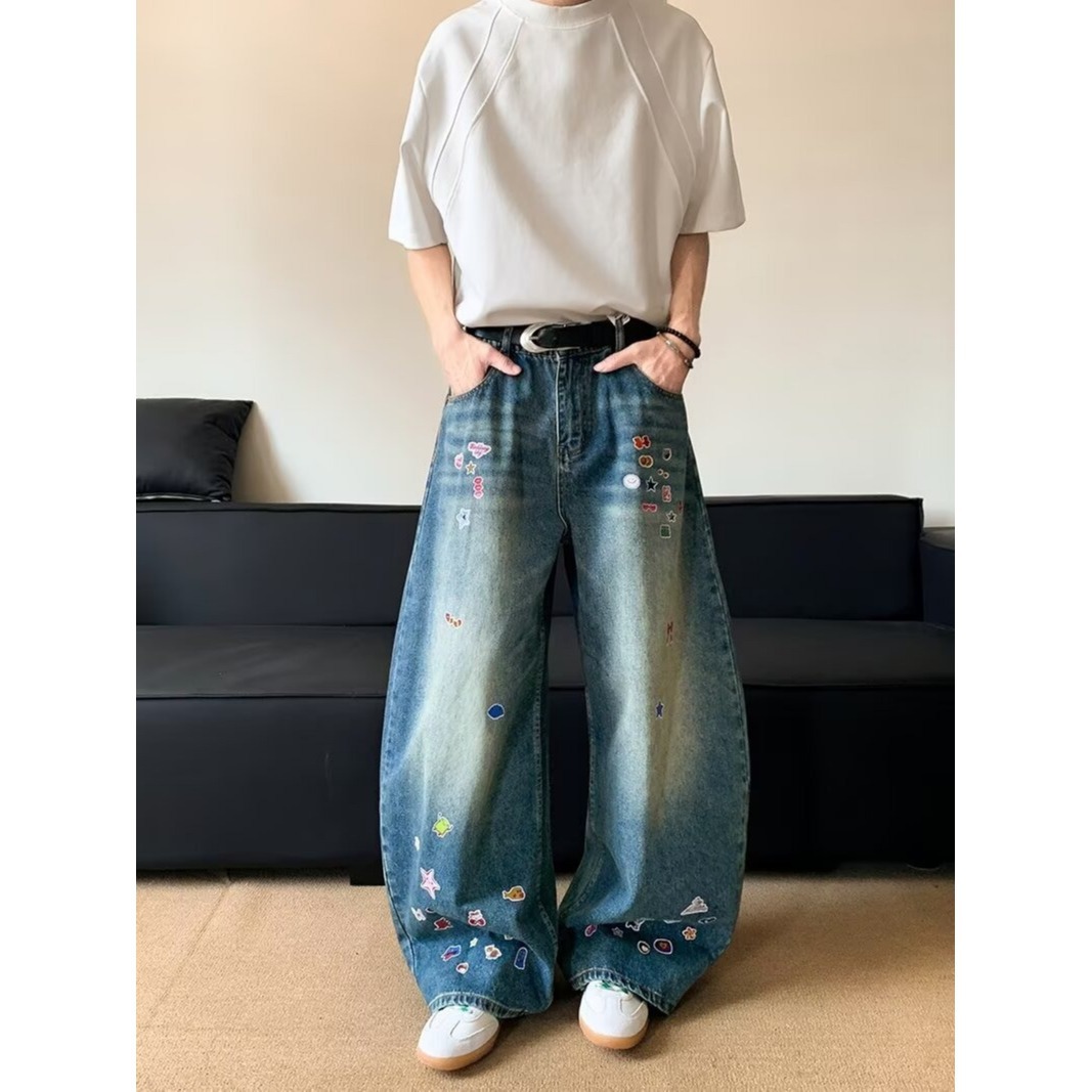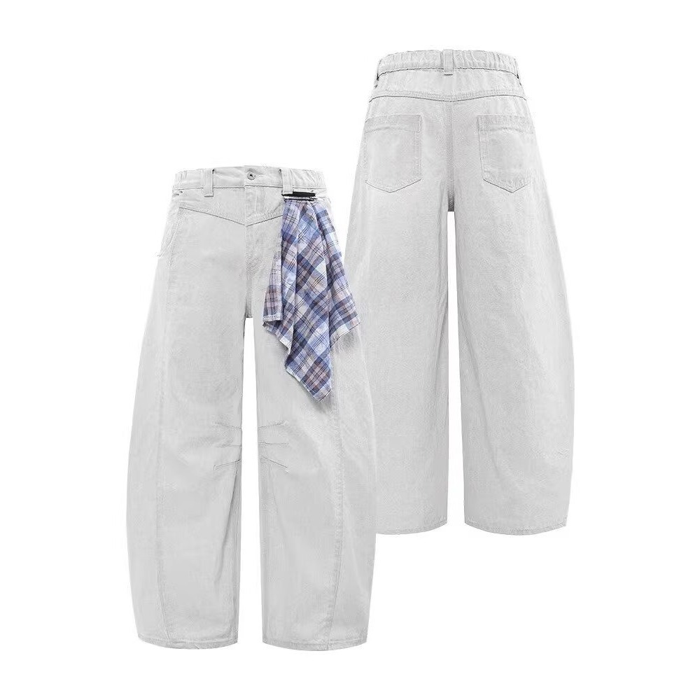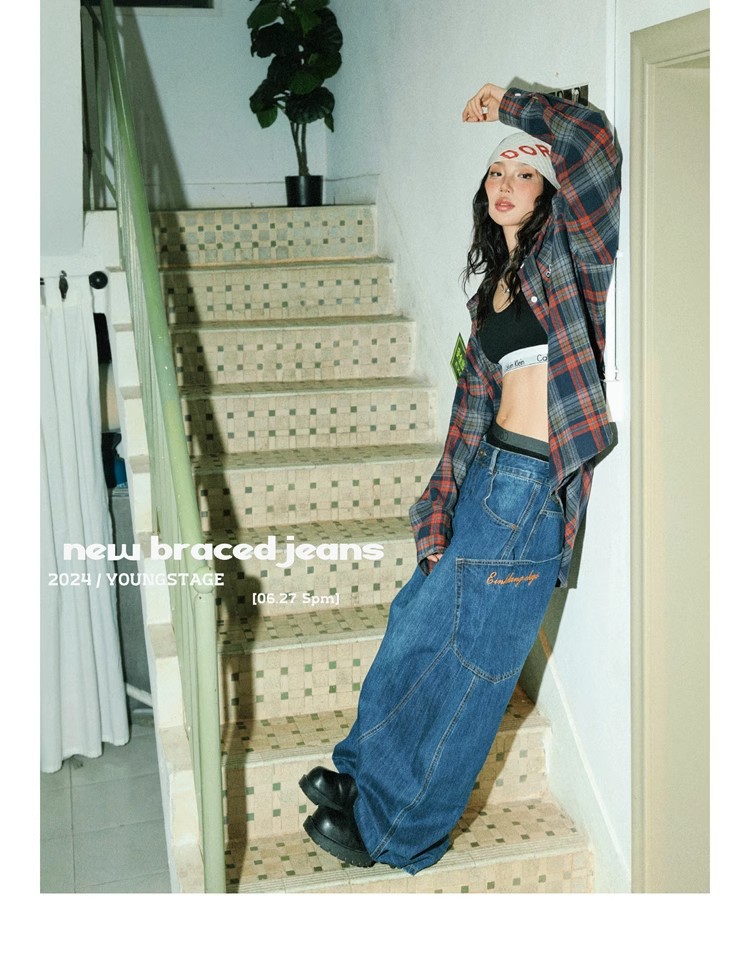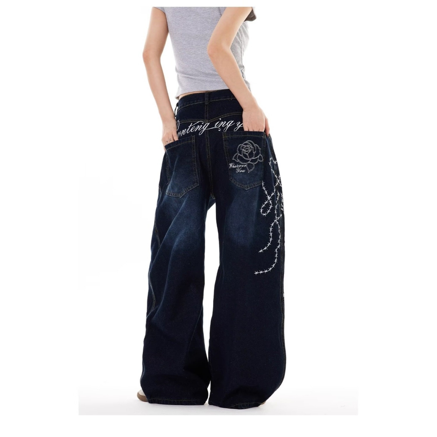 빈티지 대형 포켓 Machete 청바지 여성의 가을 새로운 하이 스트리트 디자인 센스 루즈 슬리밍 스트레이트 레그 와이드 레그 팬츠스토어 가기