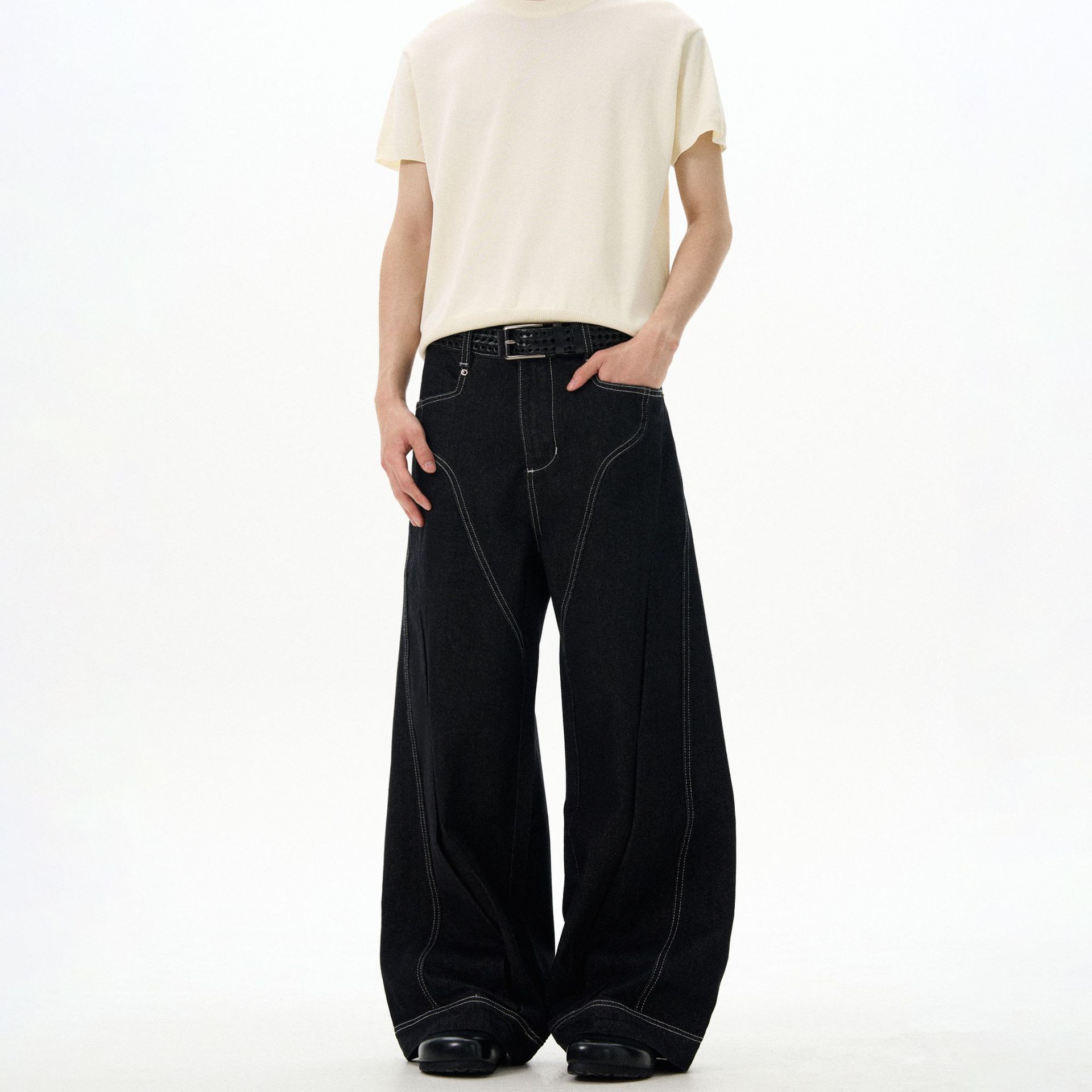 빈티지 대형 포켓 Machete 청바지 여성의 가을 새로운 하이 스트리트 디자인 센스 루즈 슬리밍 스트레이트 레그 와이드 레그 팬츠