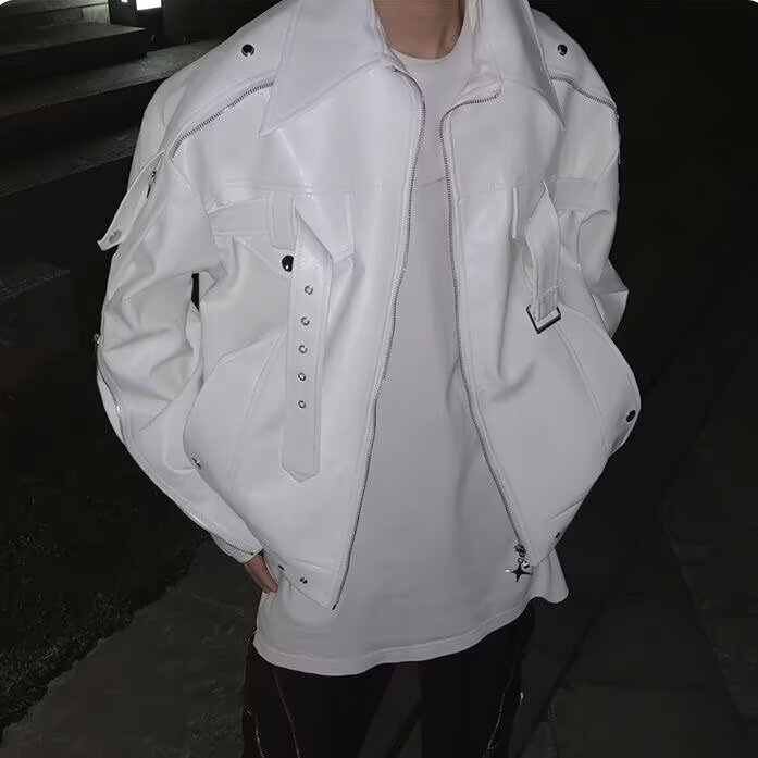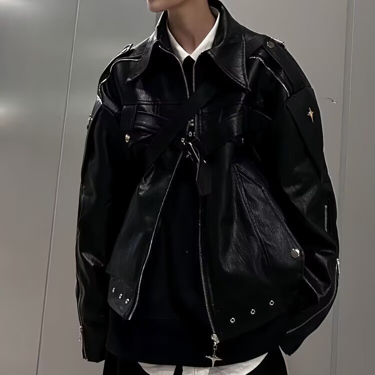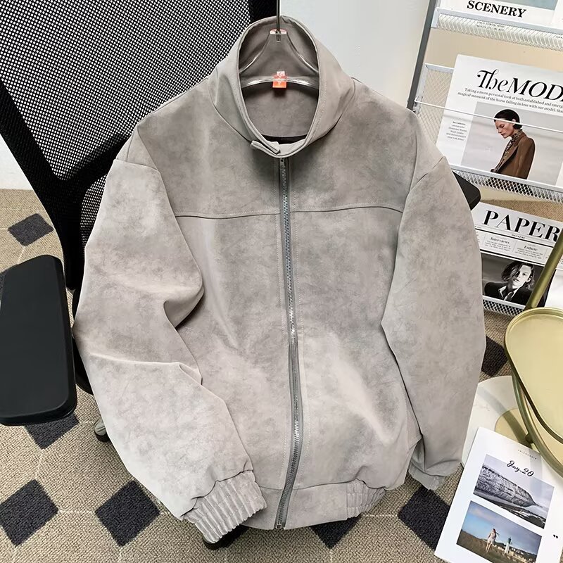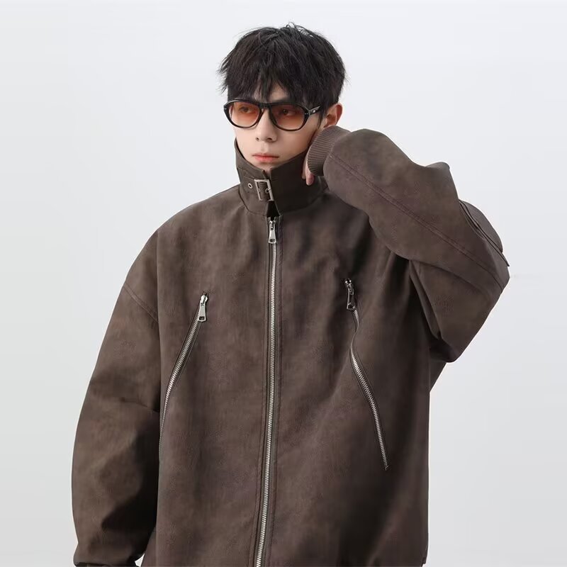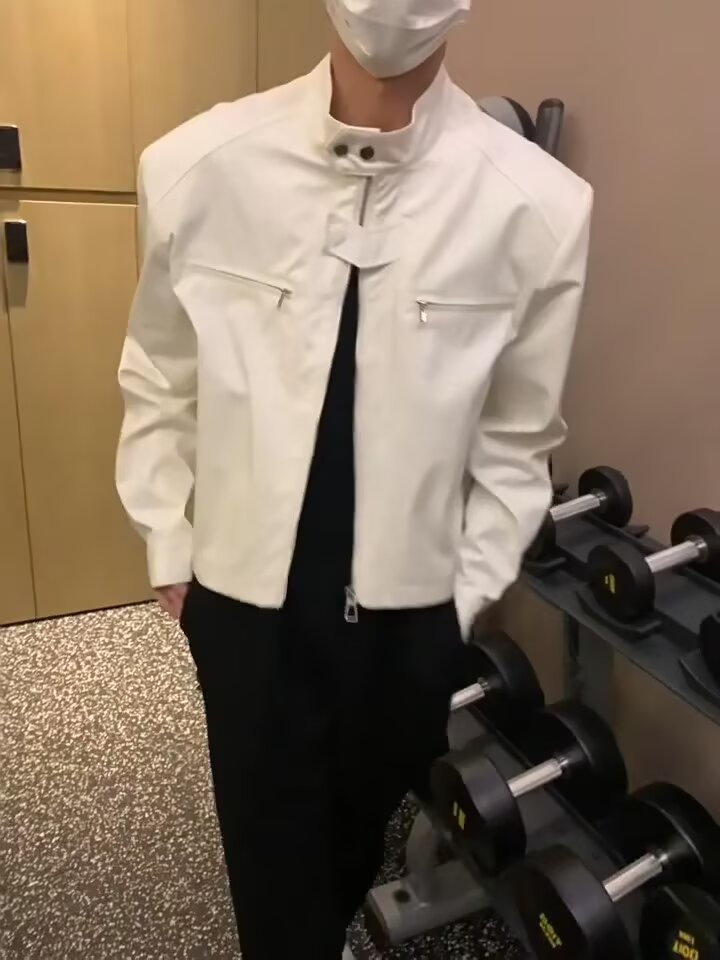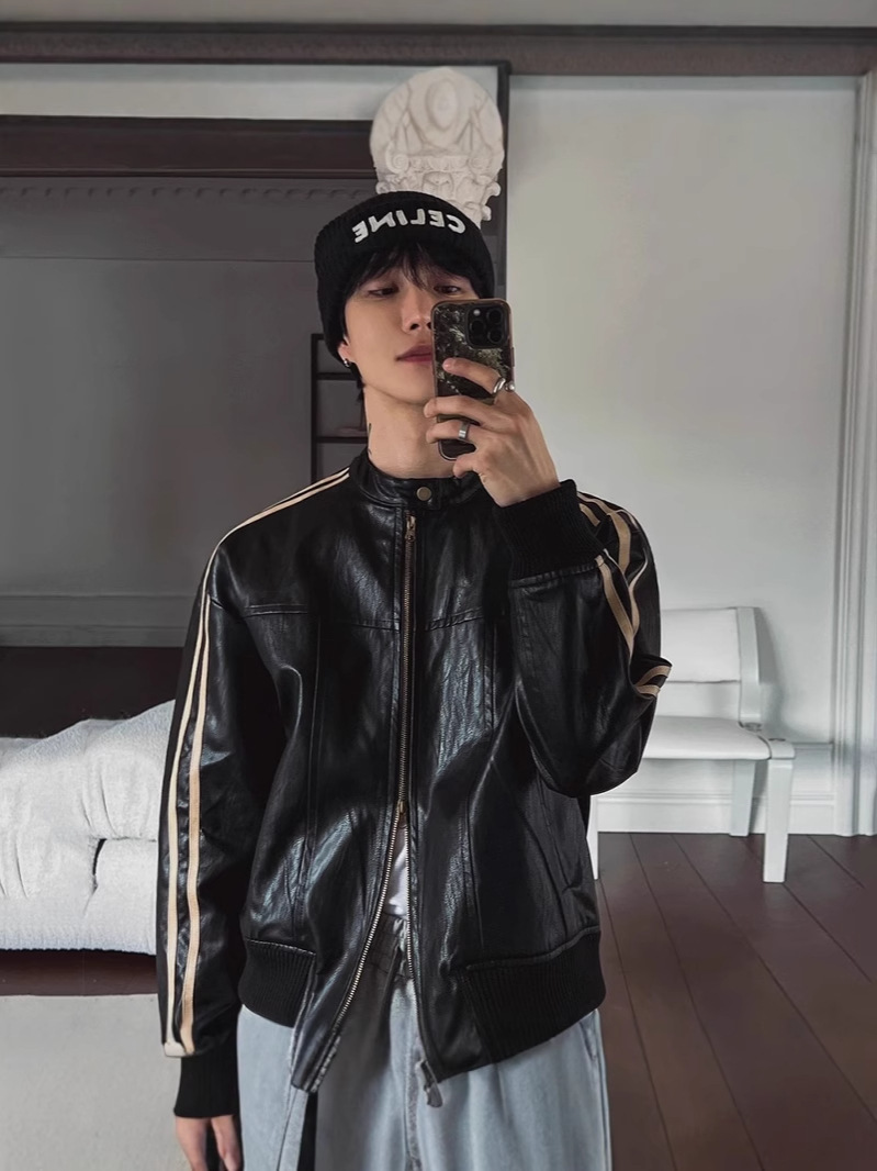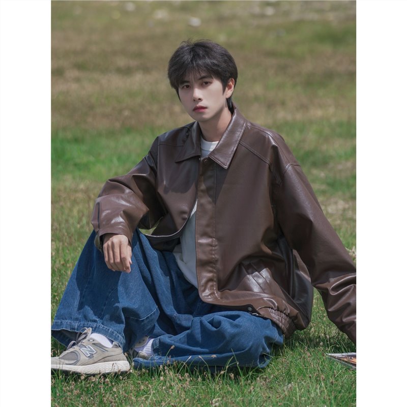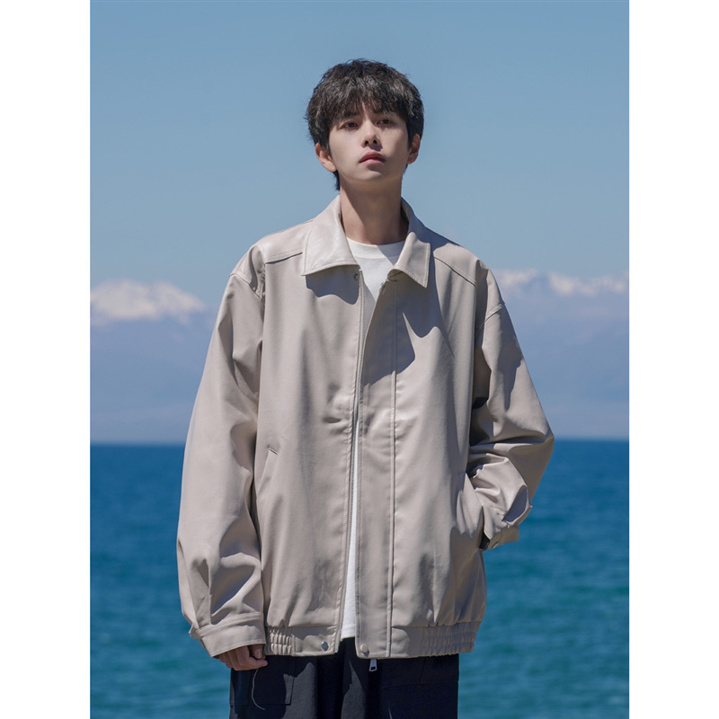 아메리칸 핸섬 클린핏 짧은 재킷 남성 봄, 가을 새로운 하이 엔드 복고풍 옷깃 오토바이 재킷 탑스토어 가기