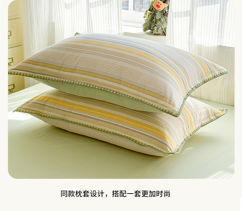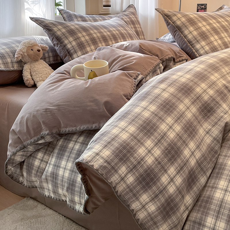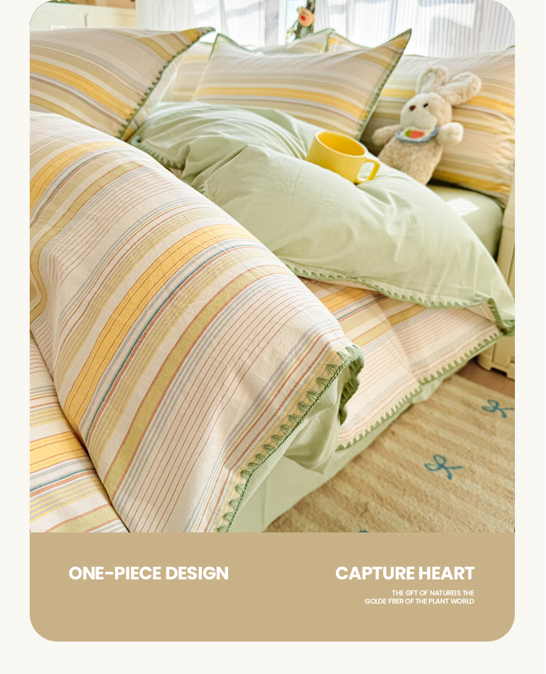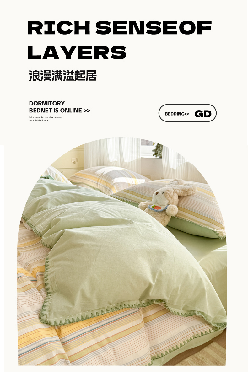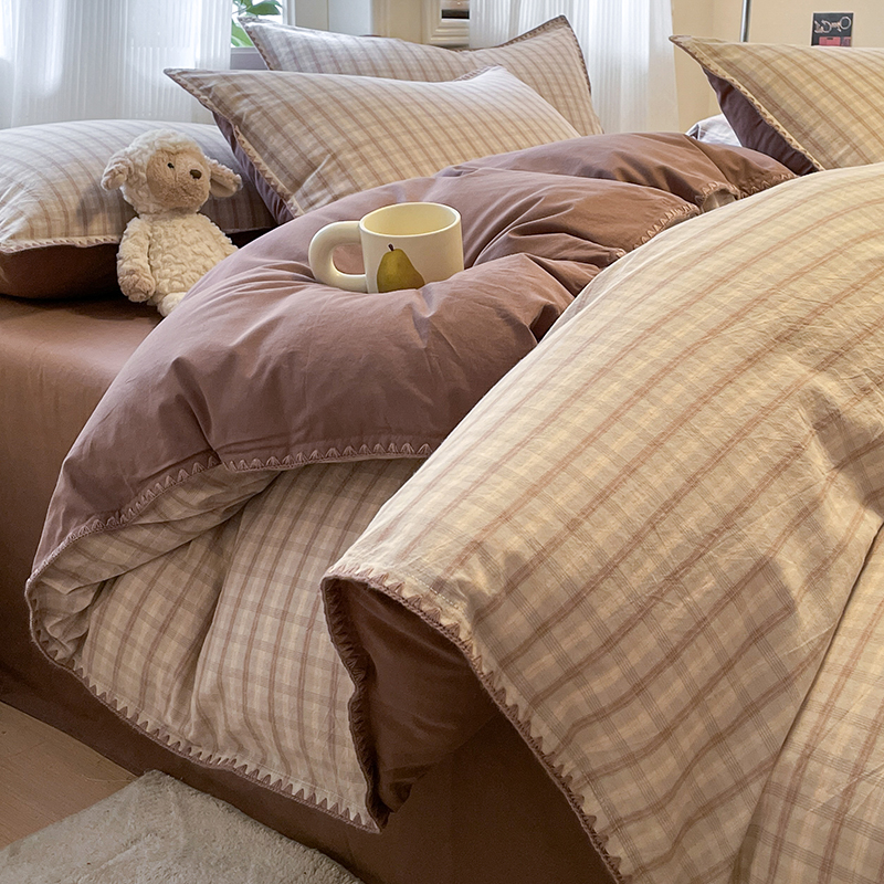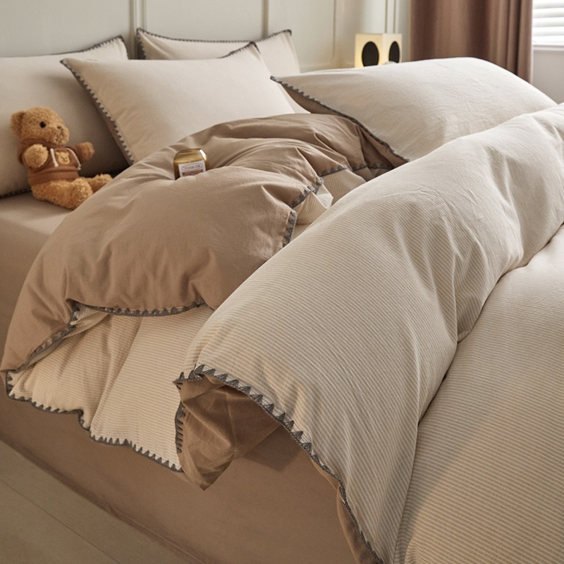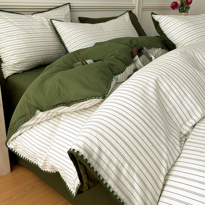 심플 스타일 코튼 워시면 4 피스 코튼 침구 2025 새로운 기숙사 스트라이프 퀼트 커버 시트 3스토어 가기