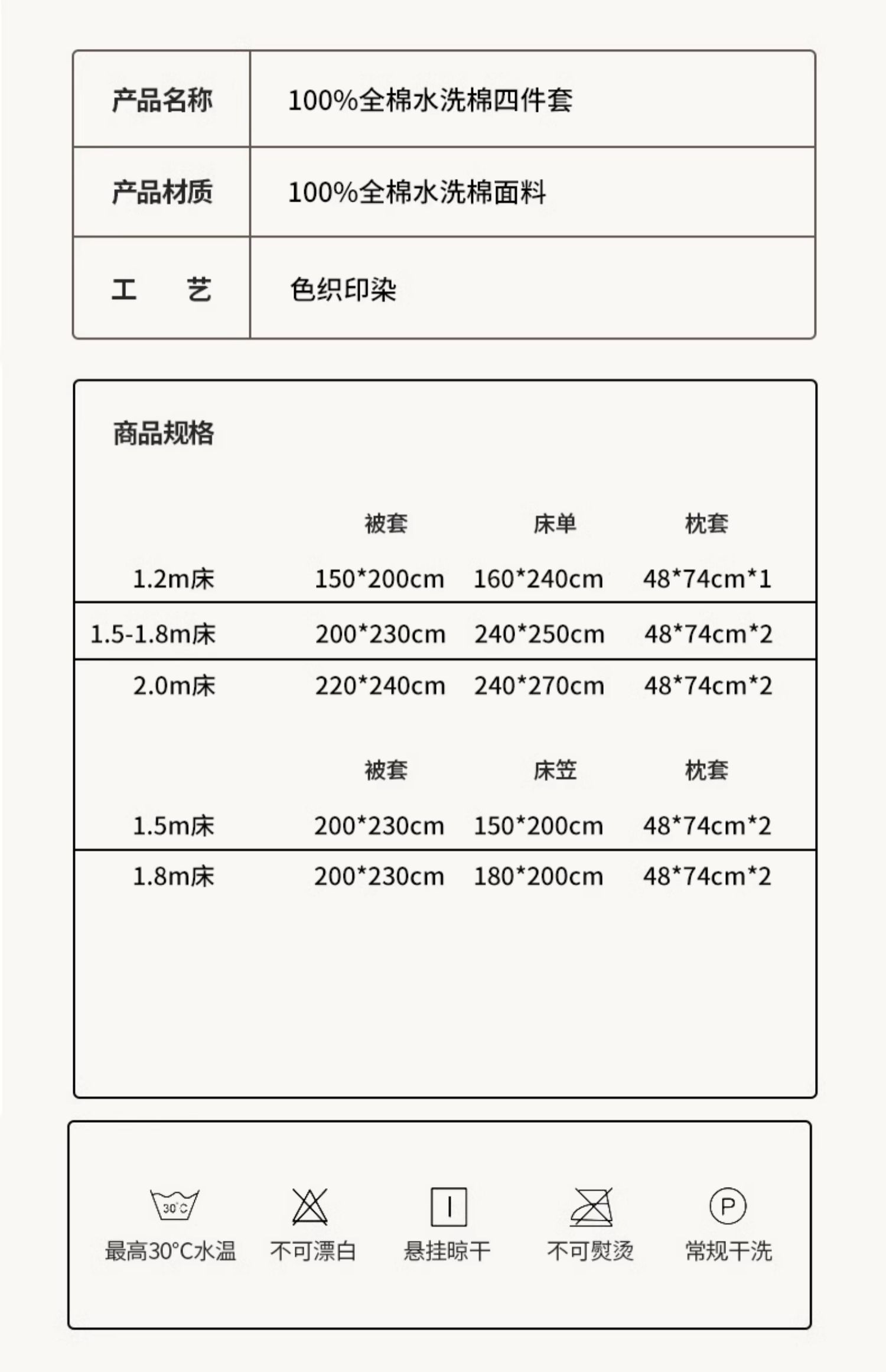 • 1.5m 침대 [시트 4개 세트] - 200x230cm 이불심에 적합