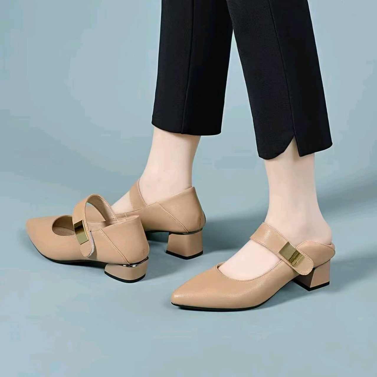 뾰족한 메리 제인 신발 여성의 2025 년 새로운 얕은 입 버클 벨트 두꺼운 힐은 피곤하지 않은 하이힐 작업 가죽 신발스토어 가기