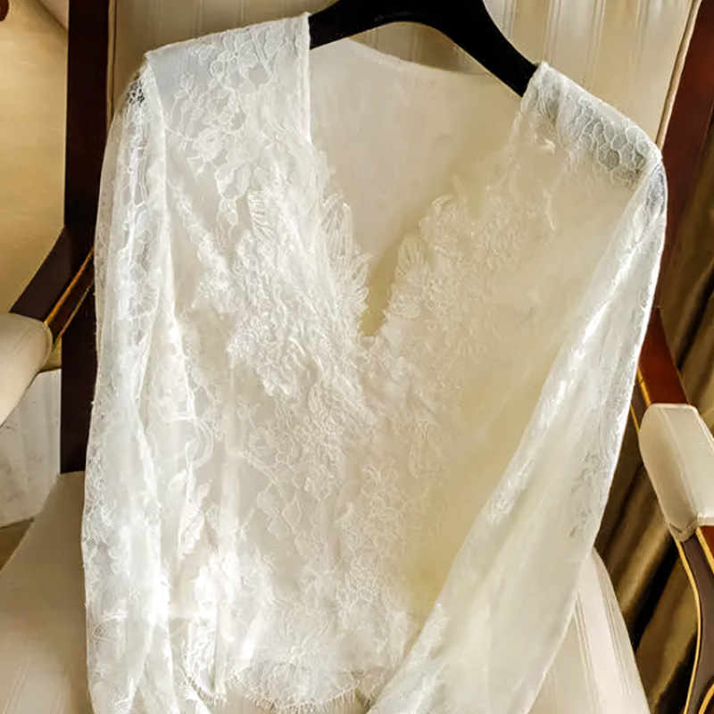 프랑스 스타일 아름다운 섹시한 칼라 레이스 셔츠 여성의 가을 새로운 세련된 자카드 디자인 우아한 올 매치 긴 소매 탑