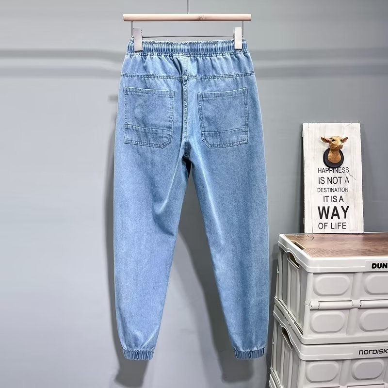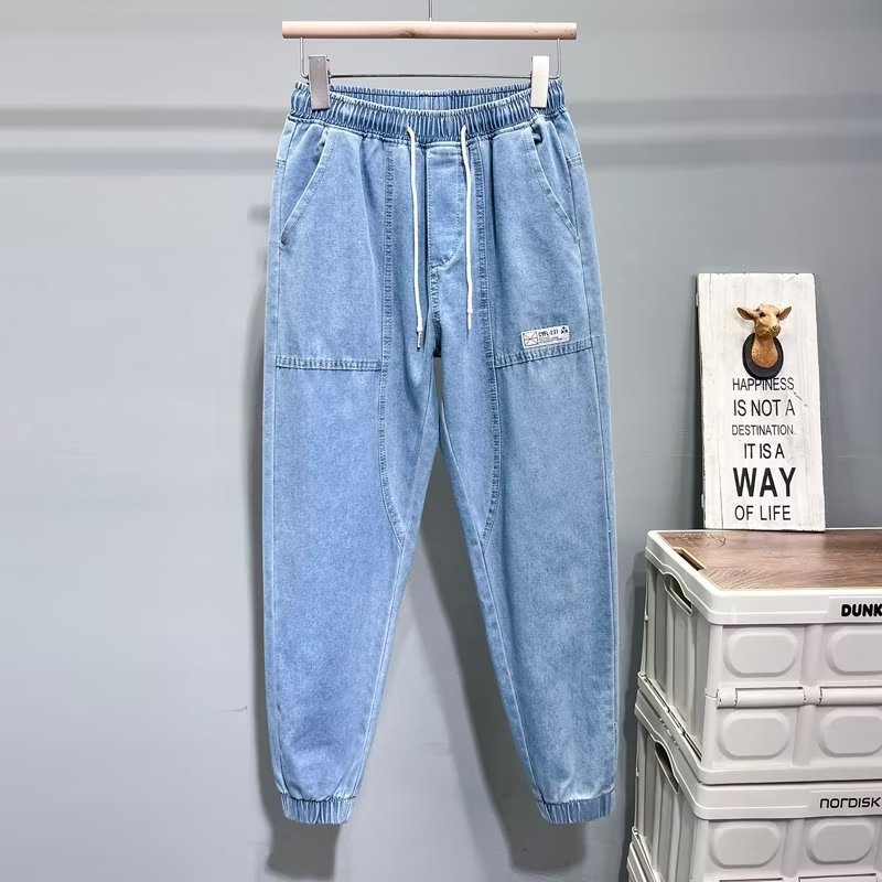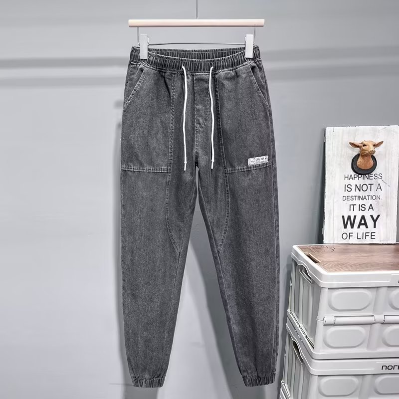 남자 데님 바지 2025 봄과 여름 새로운 도착 얇은 느슨한 한국 스타일 유행 발 번들 작업복 캐주얼 바지스토어 가기