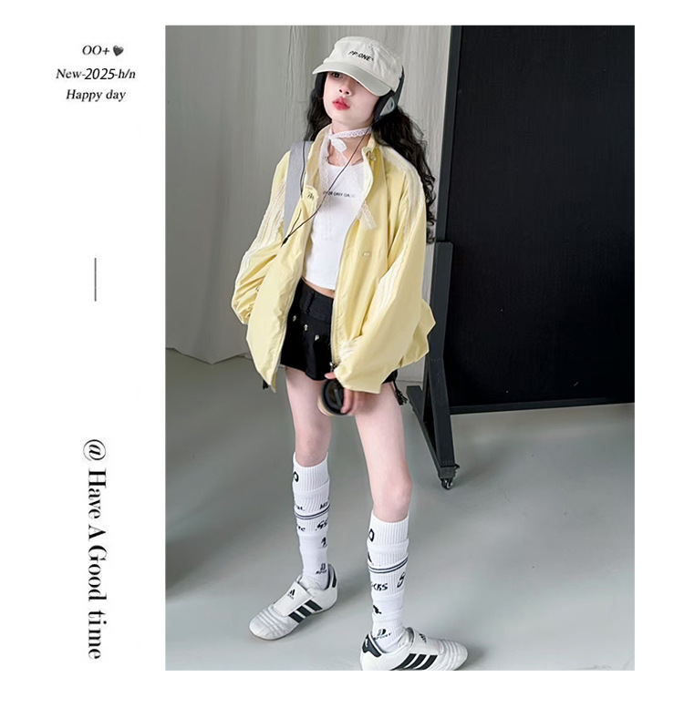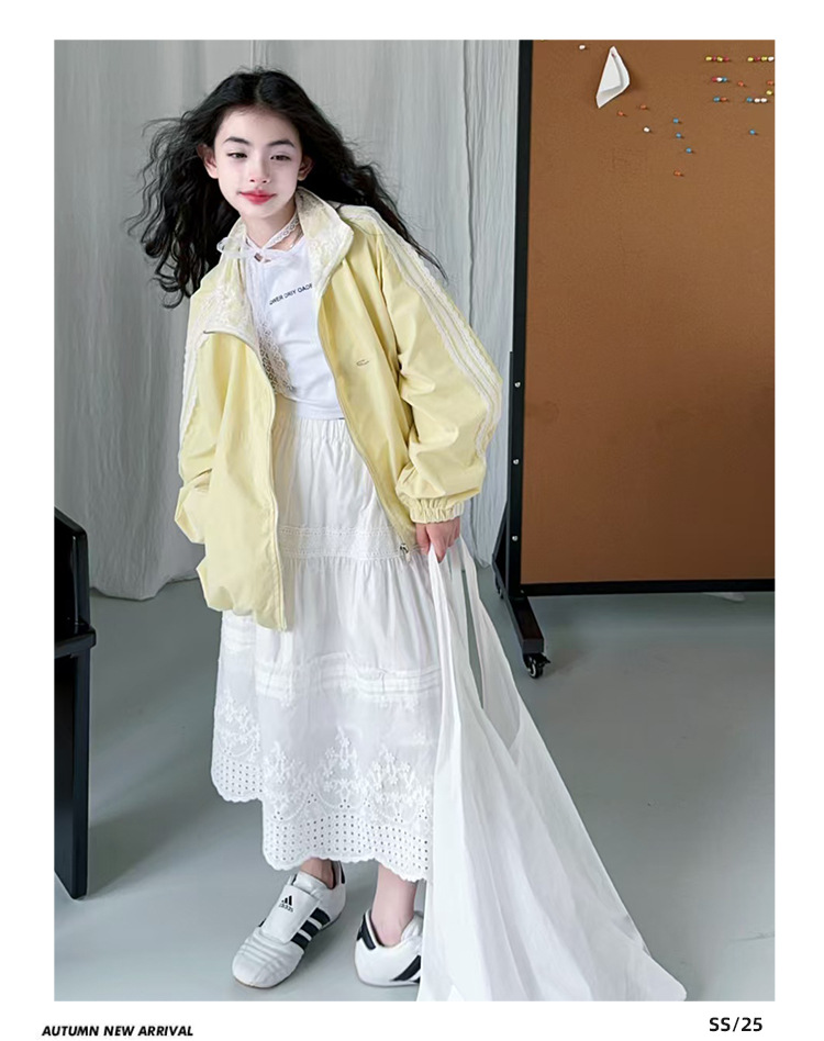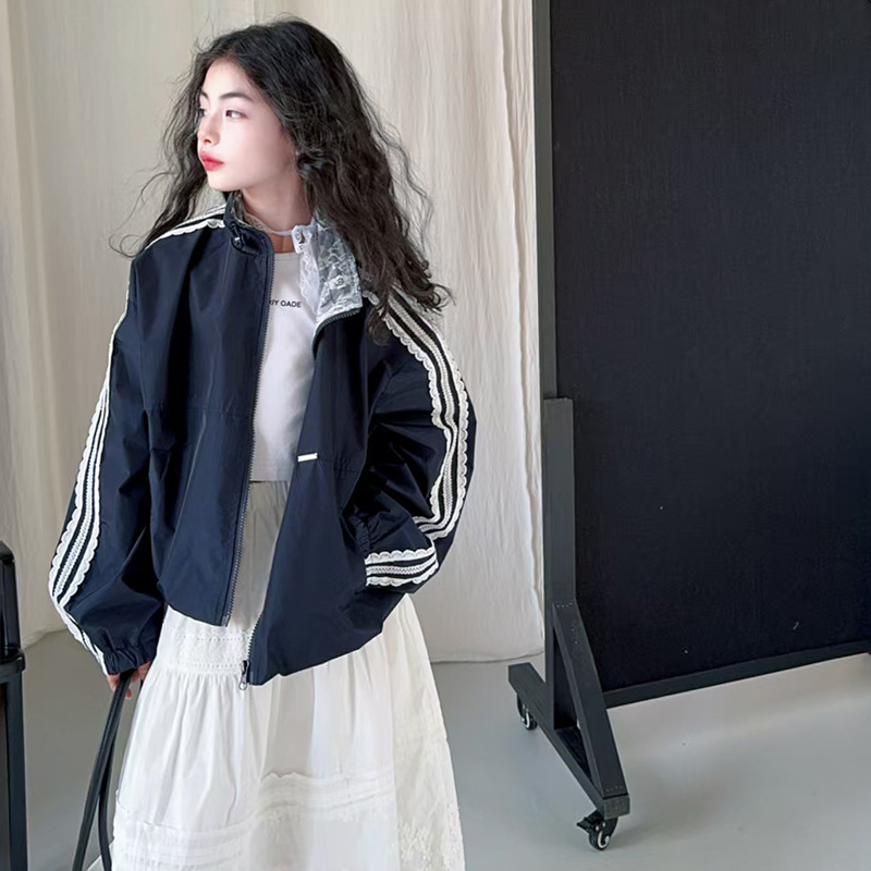 소녀 자켓 어린이 봄 2025 새로운 소녀의 한국 스타일 디자인 센스 레이스 스티칭 지퍼 재킷 트렌디