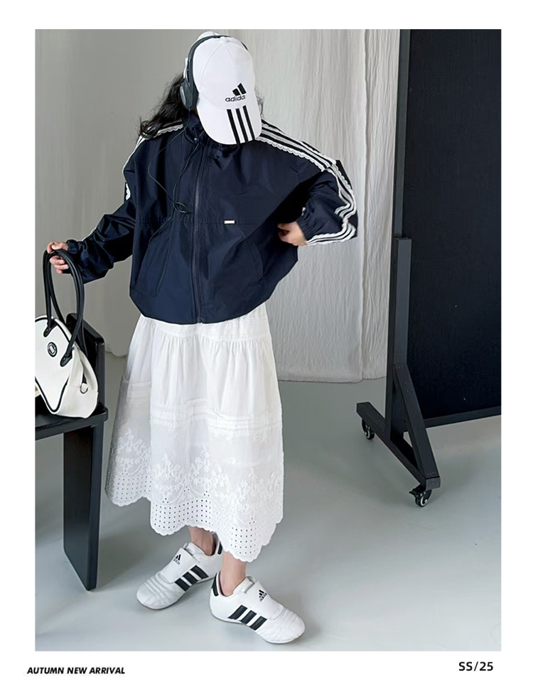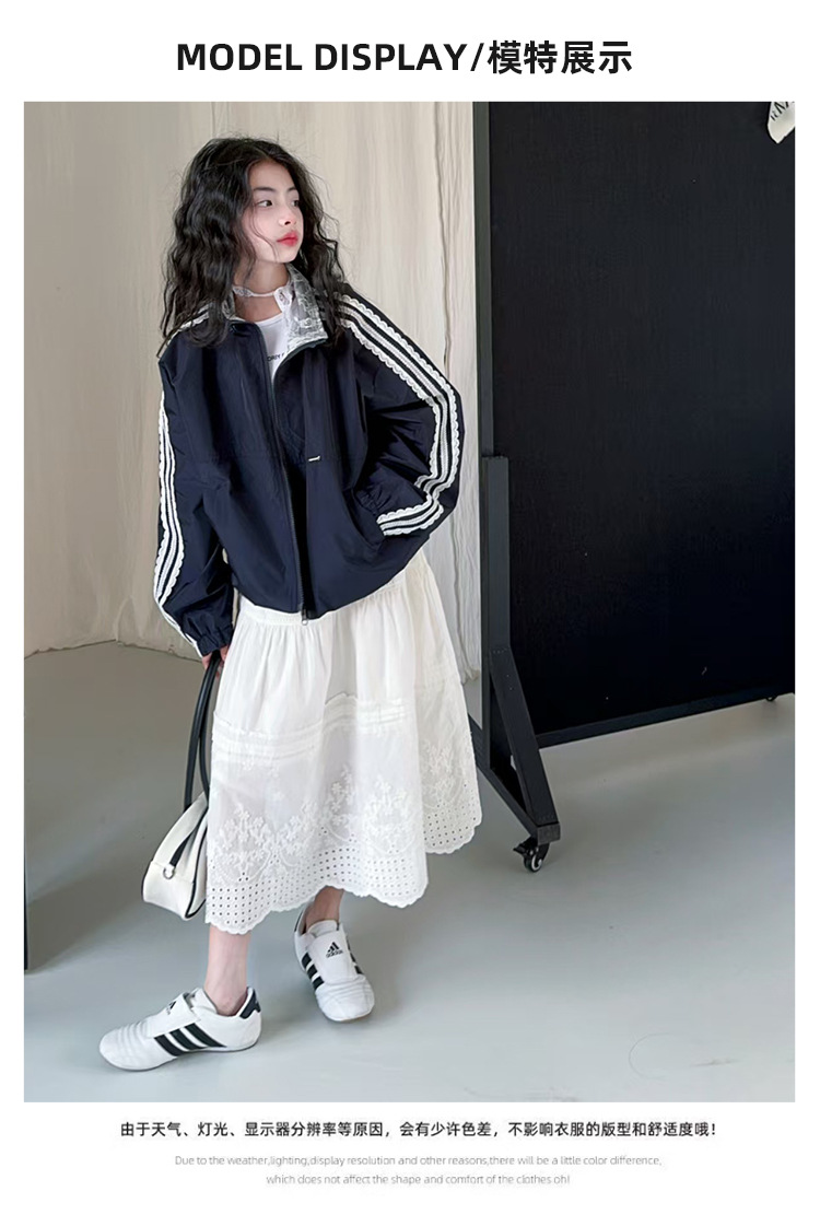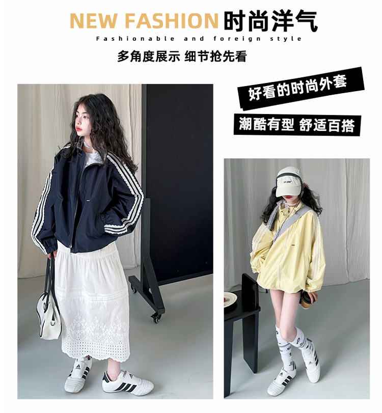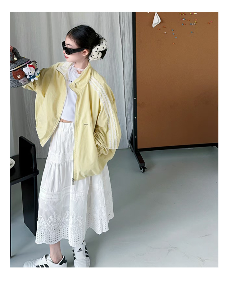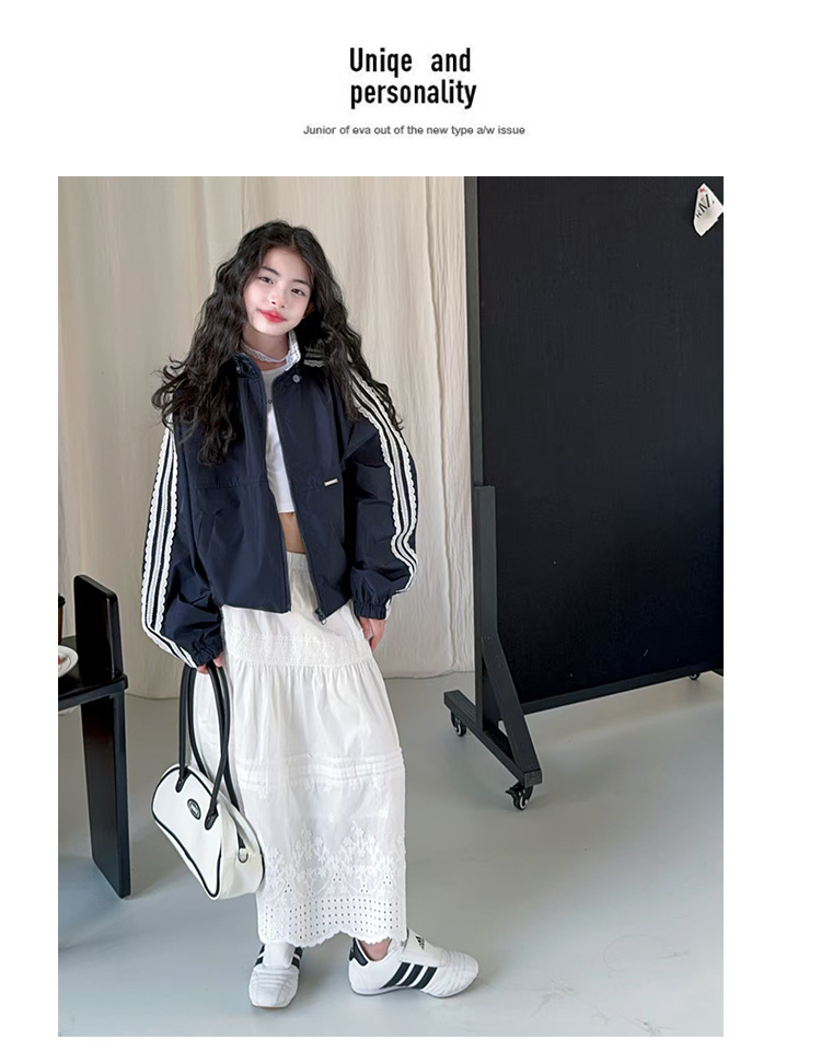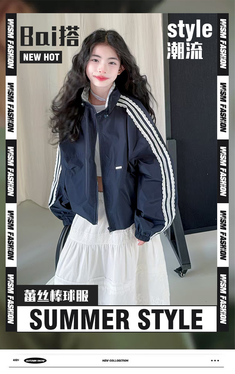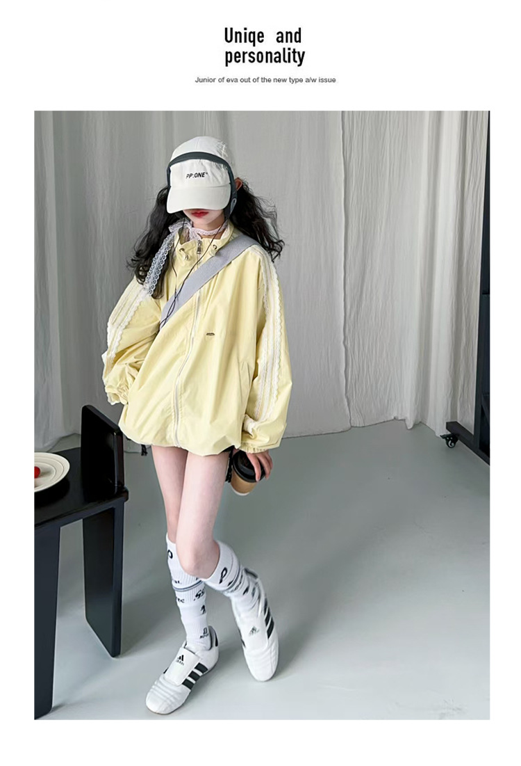 소녀 자켓 어린이 봄 2025 새로운 소녀의 한국 스타일 디자인 센스 레이스 스티칭 지퍼 재킷 트렌디스토어 가기