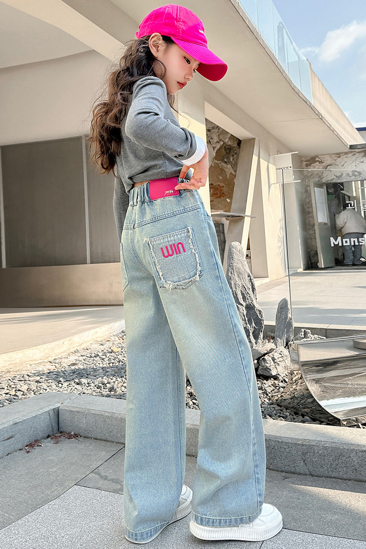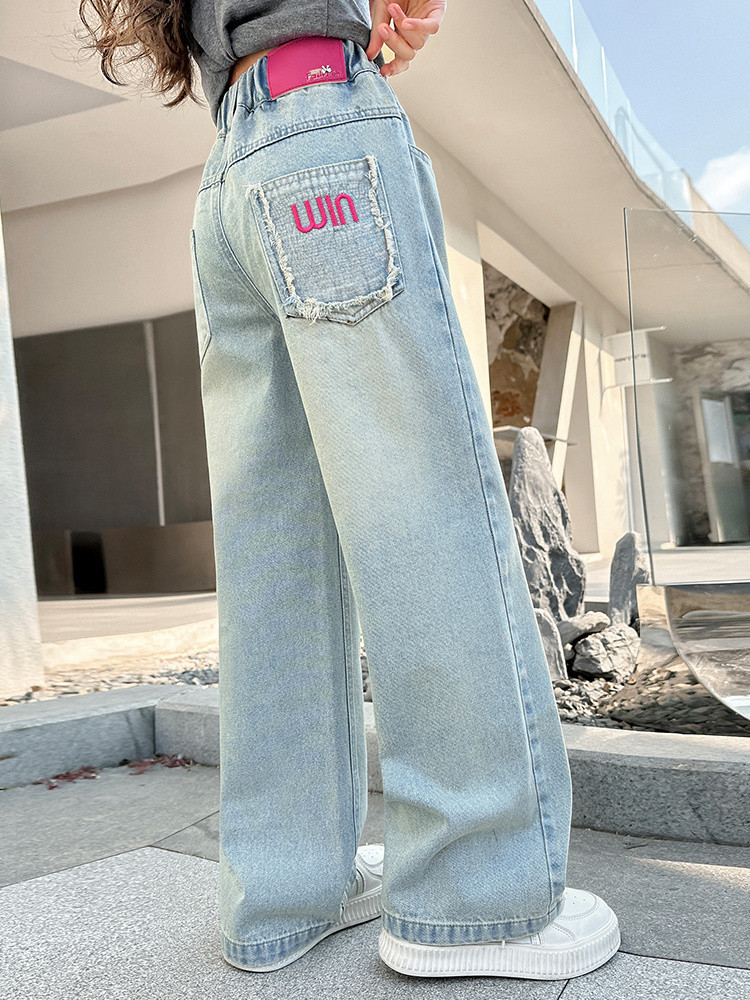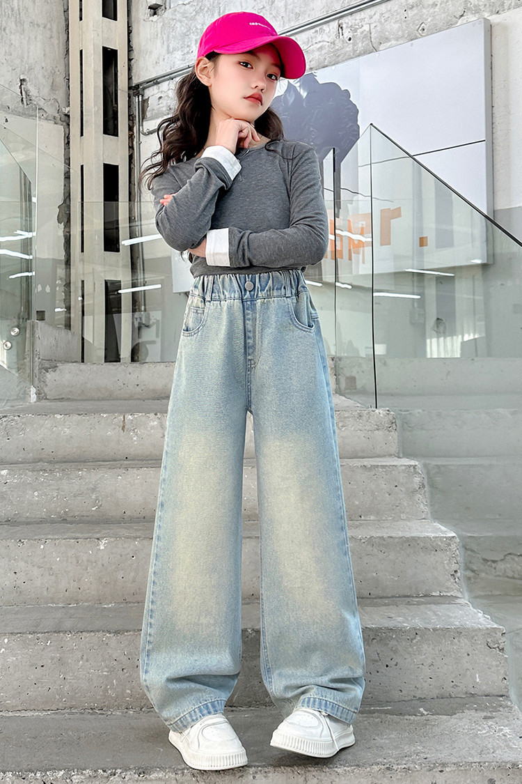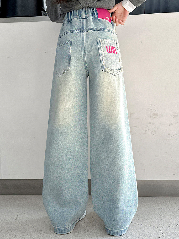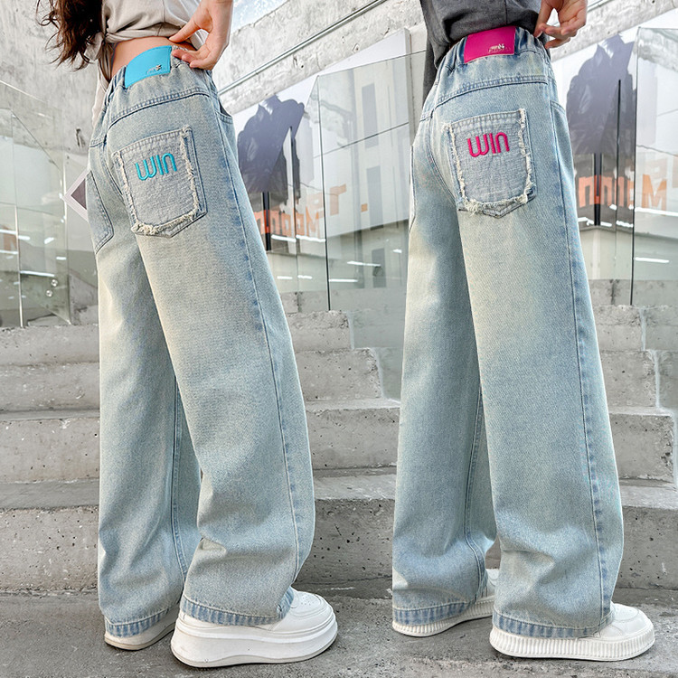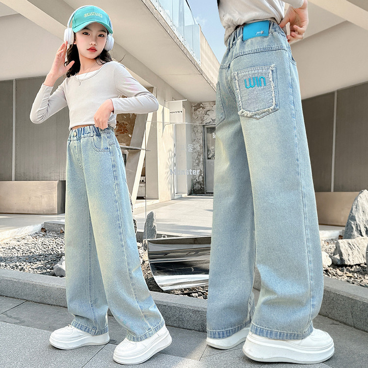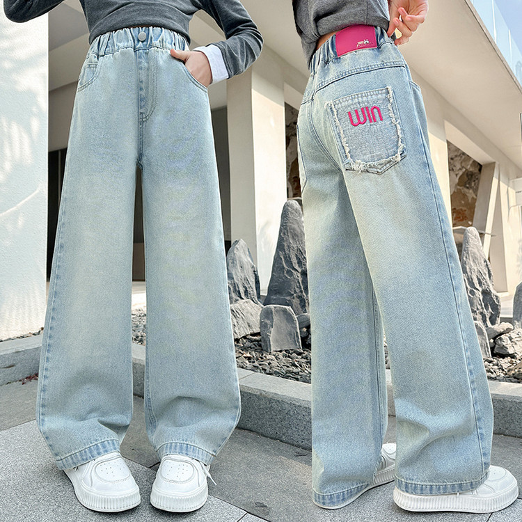 소녀 청바지 봄과 가을 2025 새로운 서양식 어린이 스트레이트 바지 소녀 캐주얼 느슨한 넓은 다리 바지