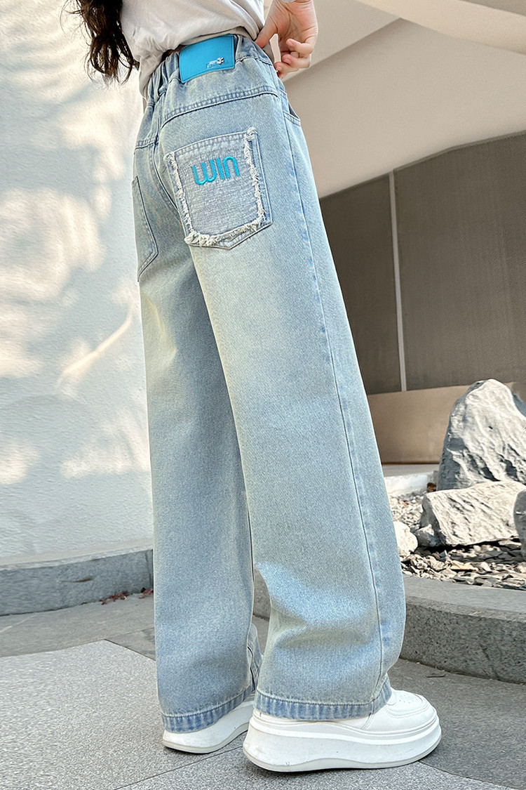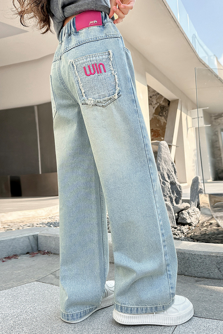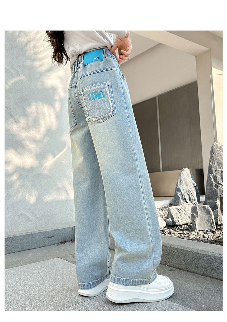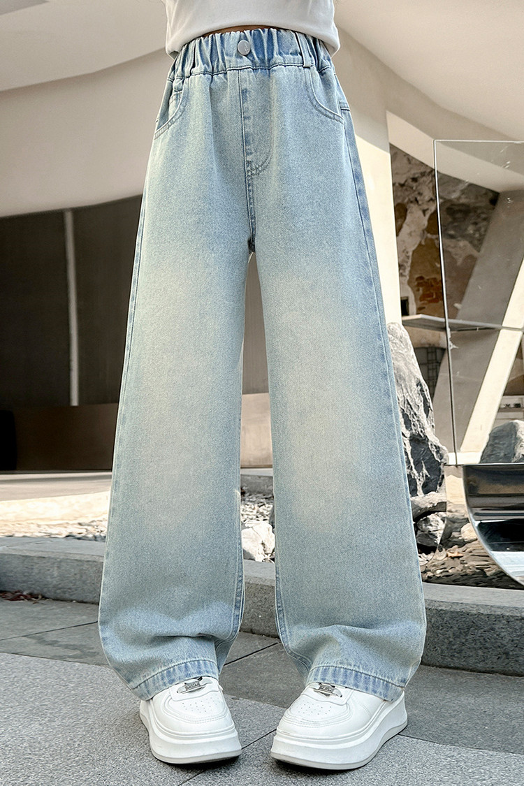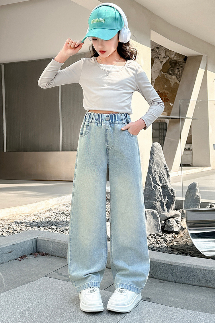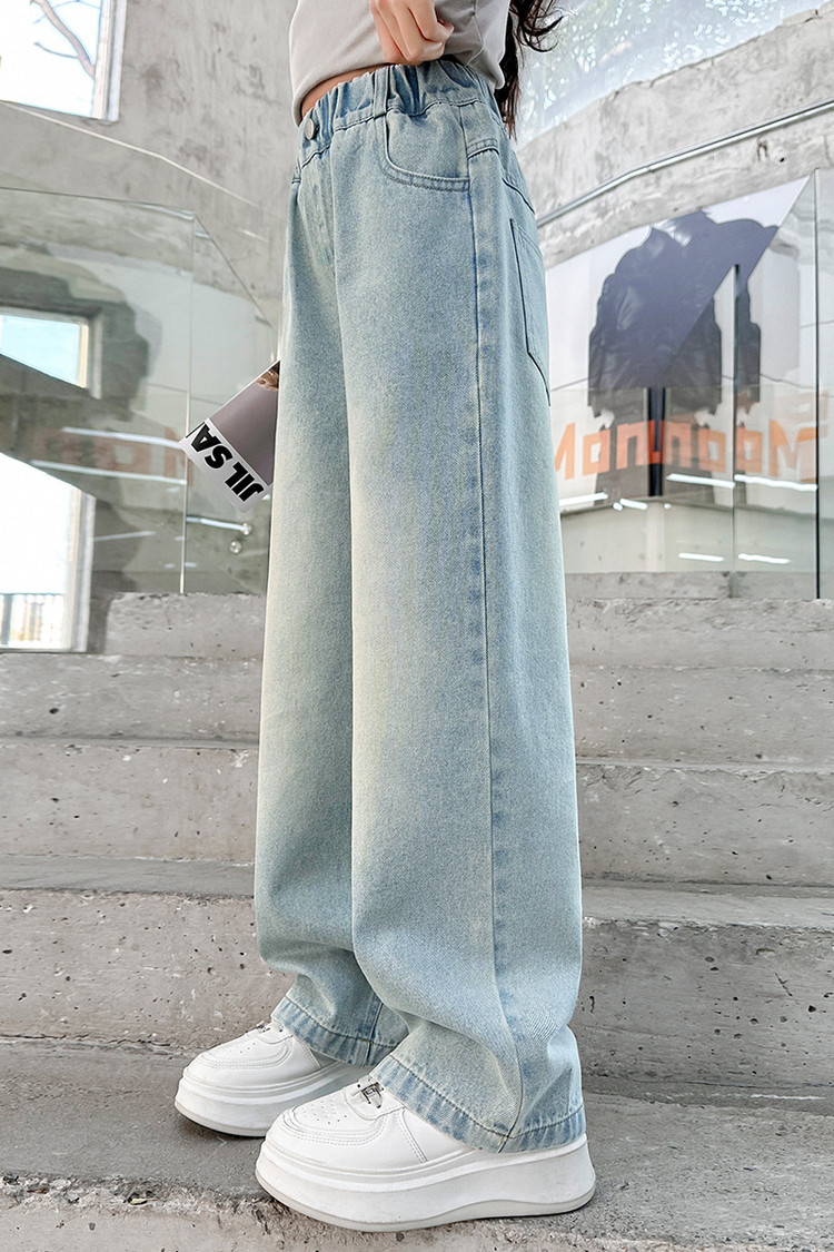 소녀 청바지 봄과 가을 2025 새로운 서양식 어린이 스트레이트 바지 소녀 캐주얼 느슨한 넓은 다리 바지