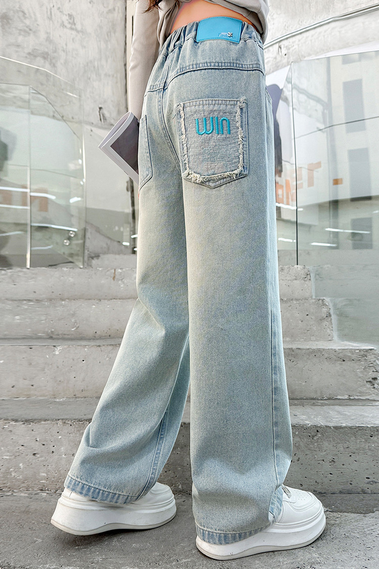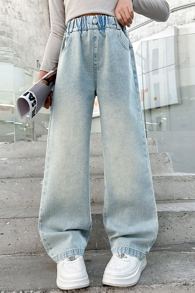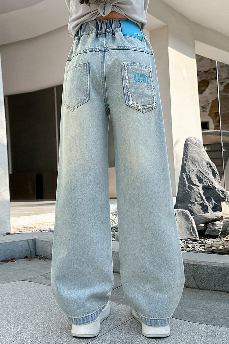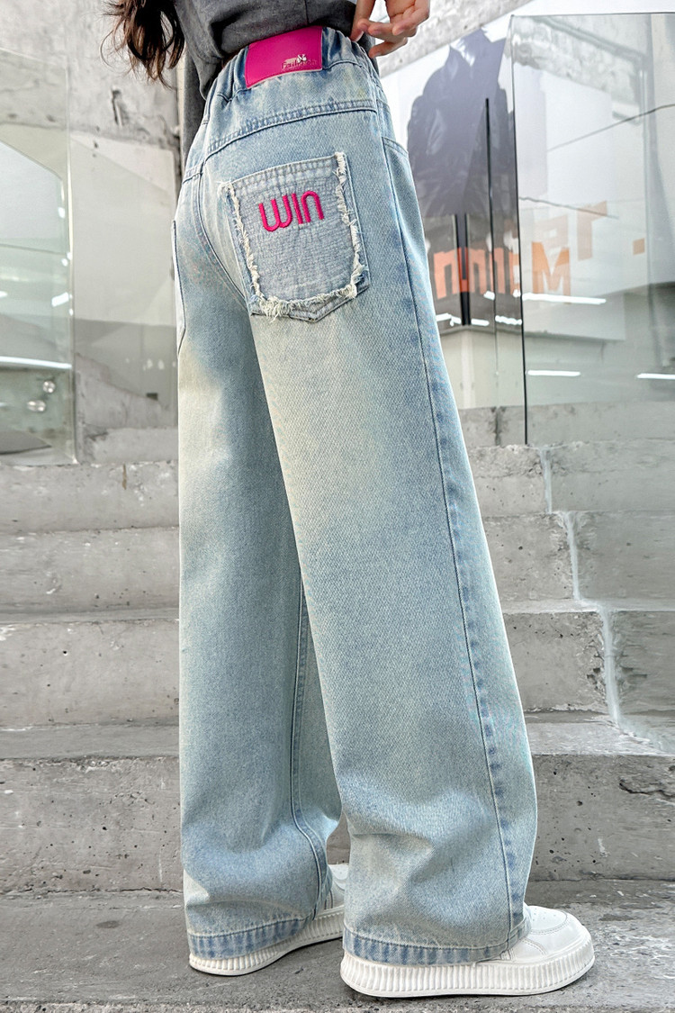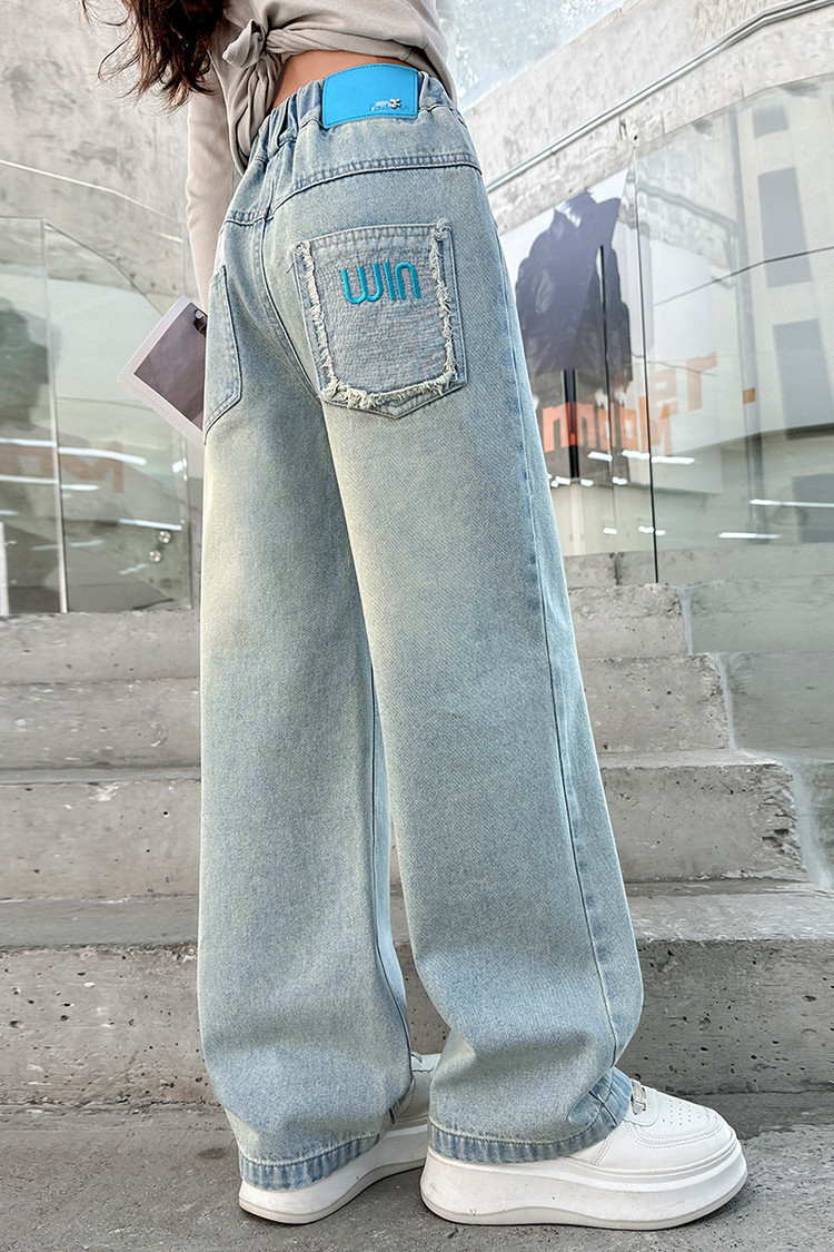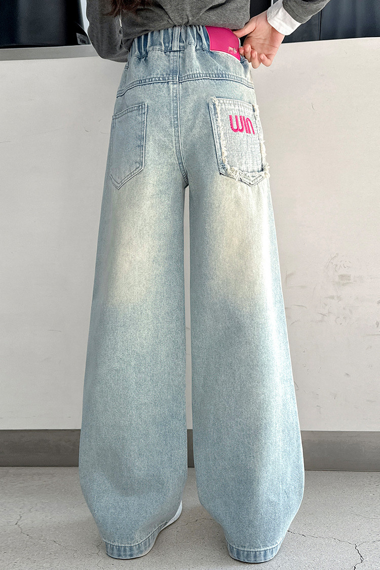 소녀 청바지 봄과 가을 2025 새로운 서양식 어린이 스트레이트 바지 소녀 캐주얼 느슨한 넓은 다리 바지