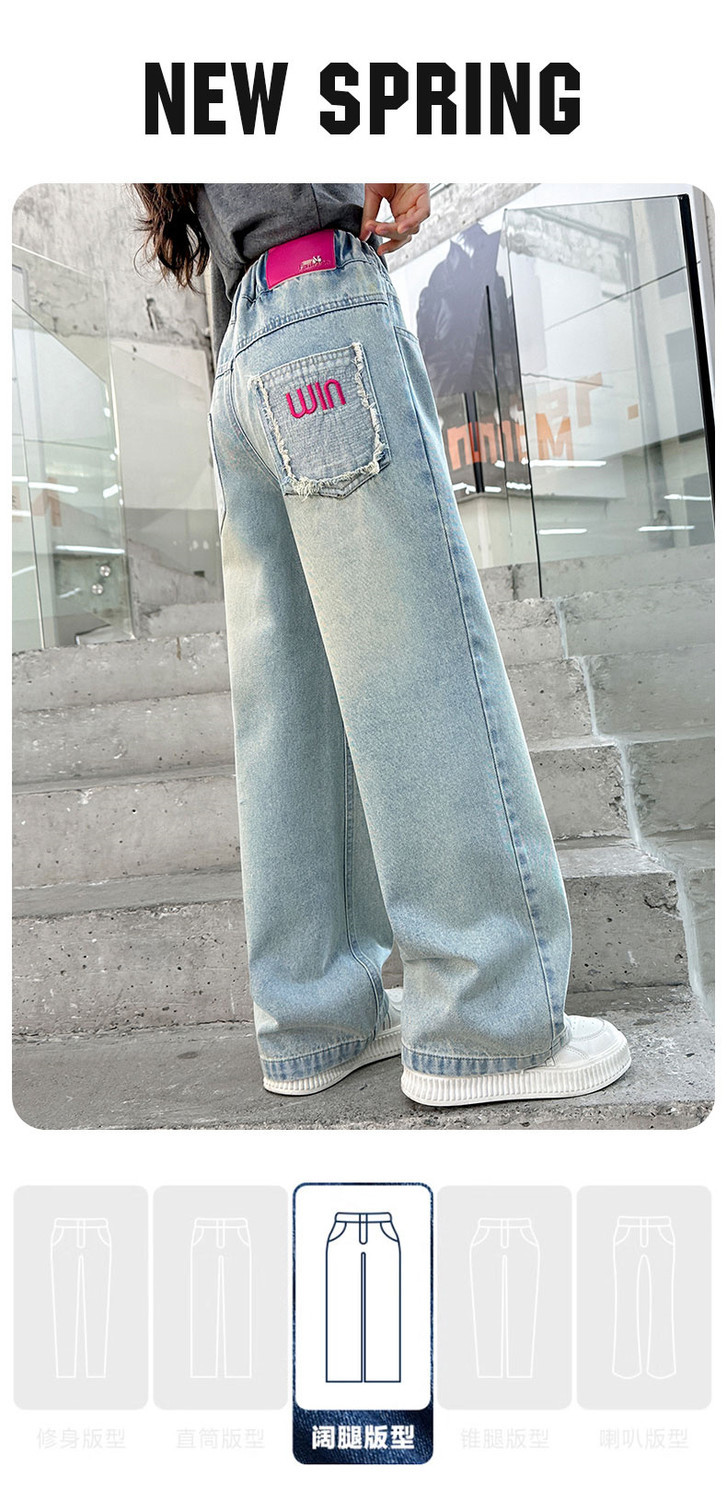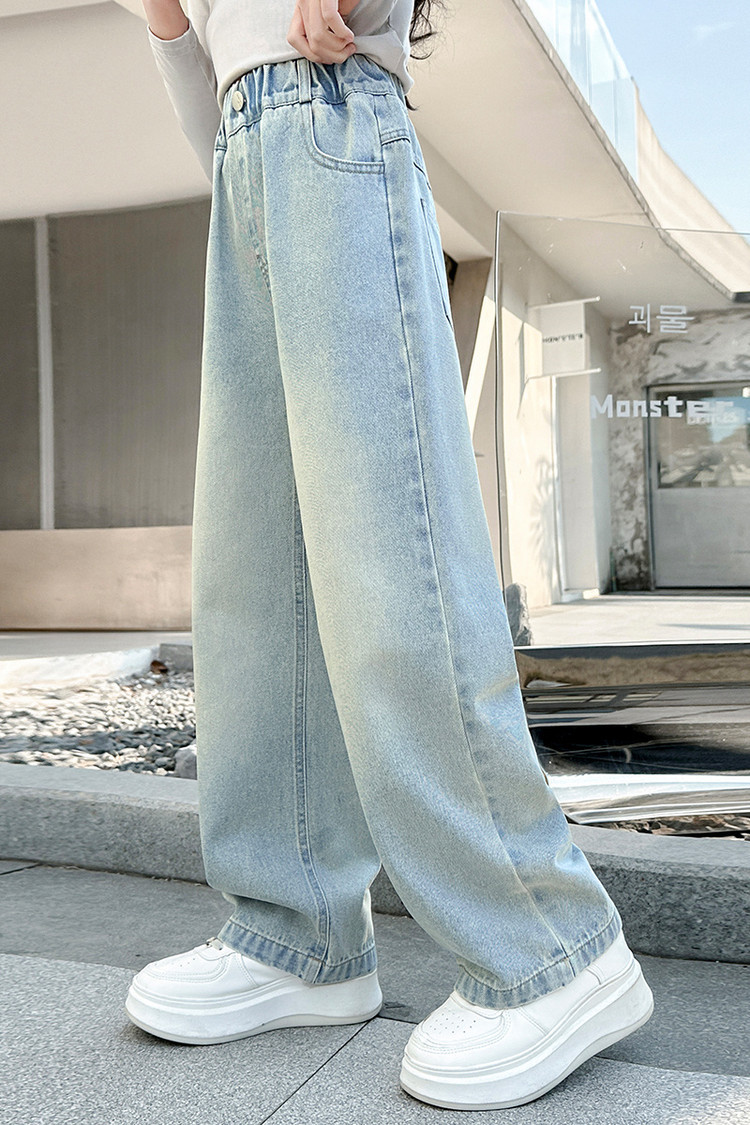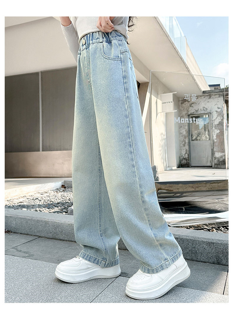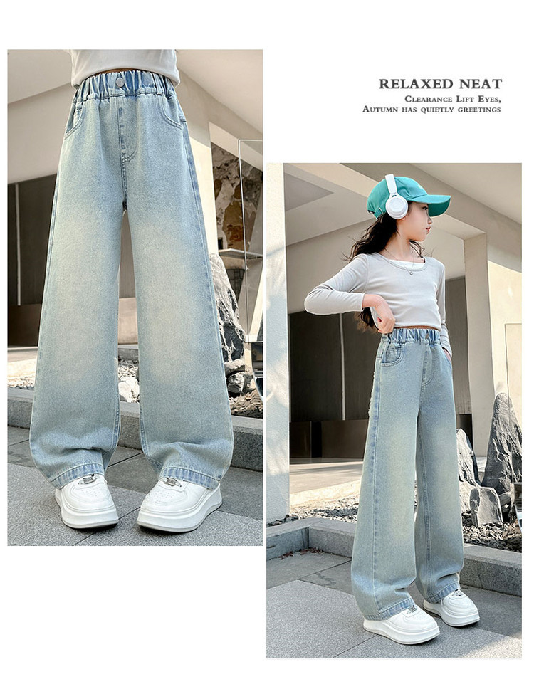소녀 청바지 봄과 가을 2025 새로운 서양식 어린이 스트레이트 바지 소녀 캐주얼 느슨한 넓은 다리 바지스토어 가기