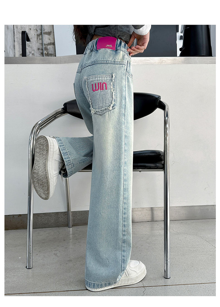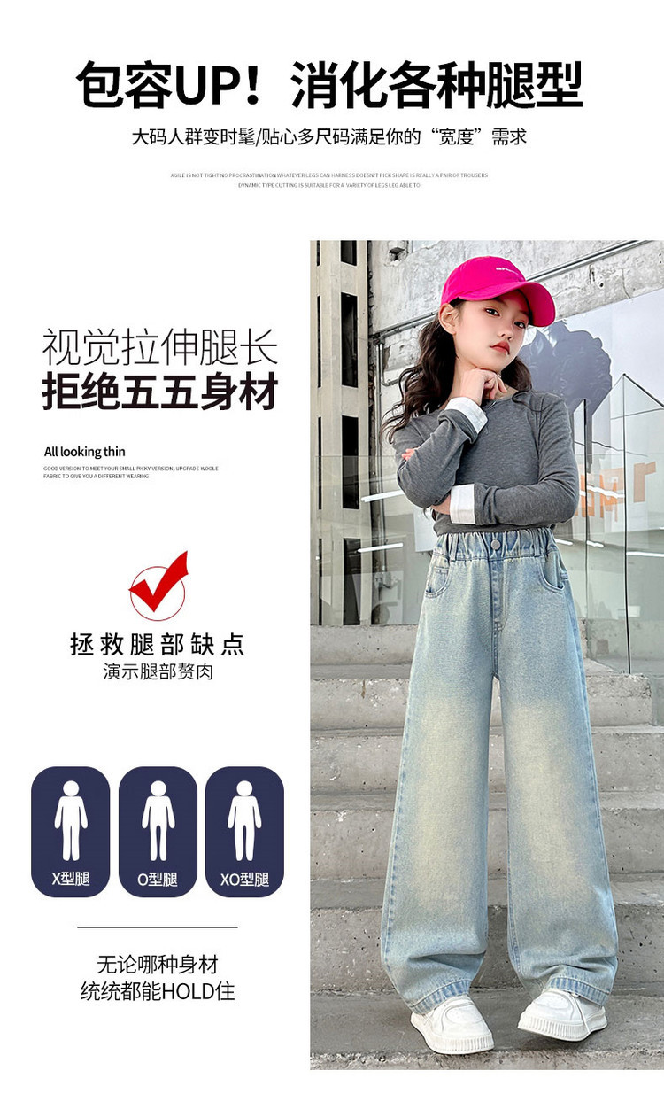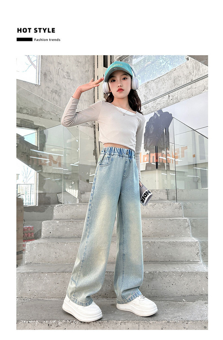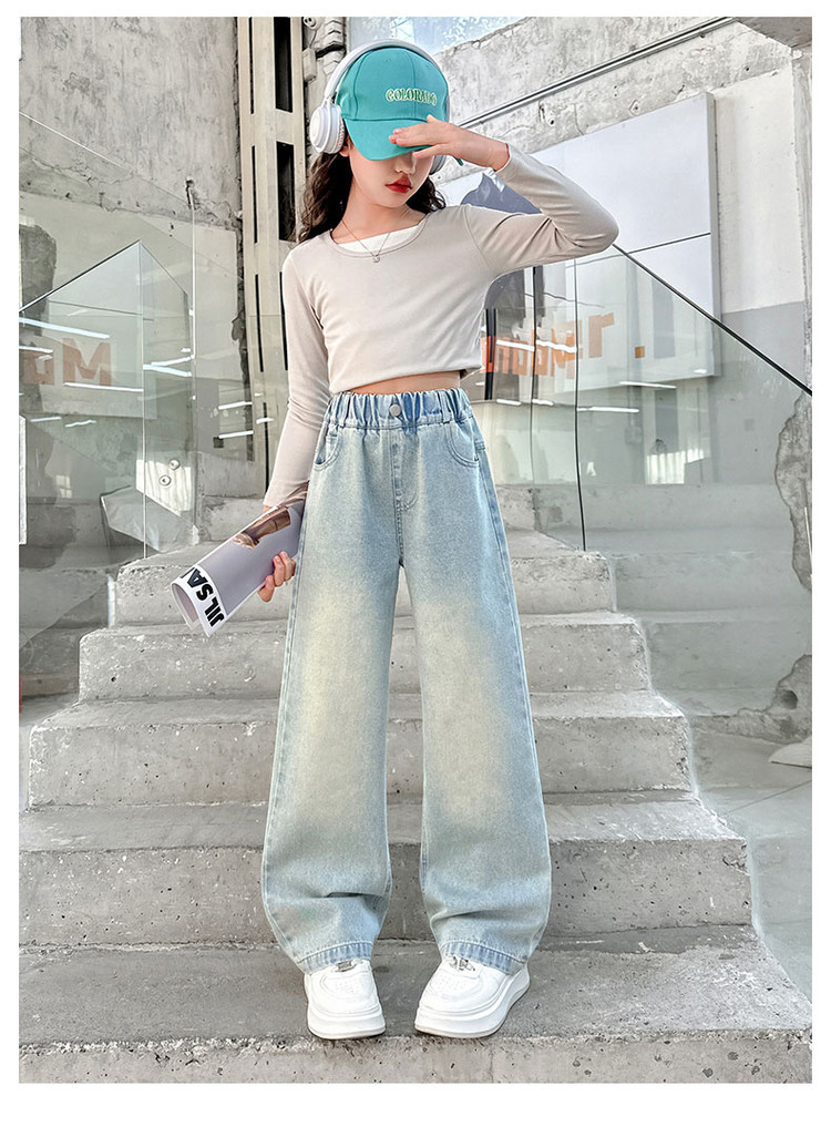 소녀 청바지 봄과 가을 2025 새로운 서양식 어린이 스트레이트 바지 소녀 캐주얼 느슨한 넓은 다리 바지스토어 가기