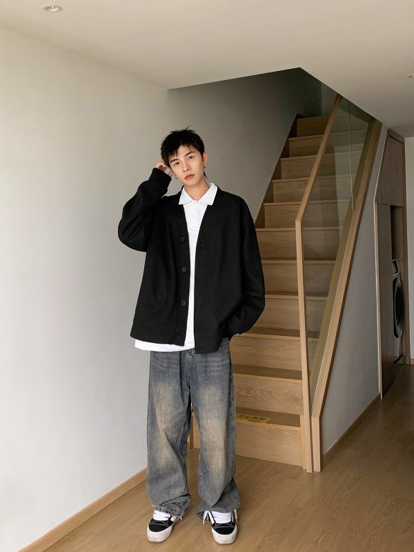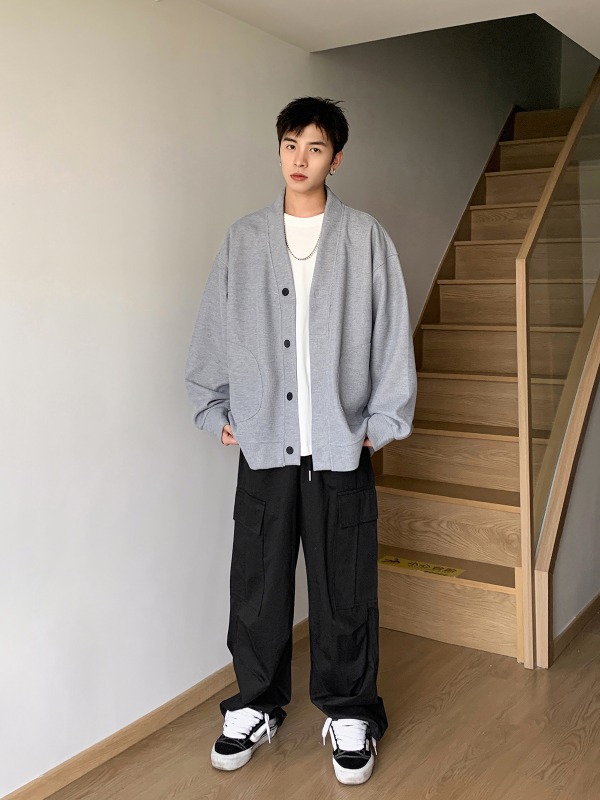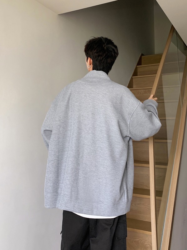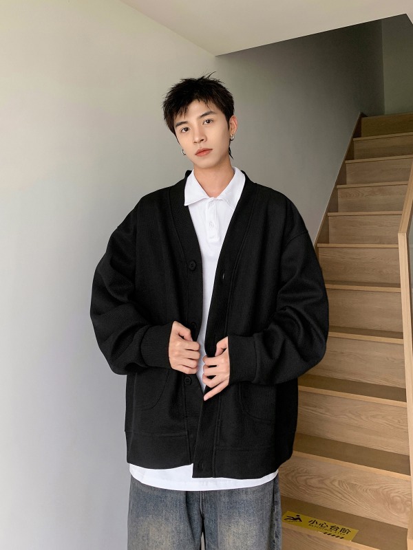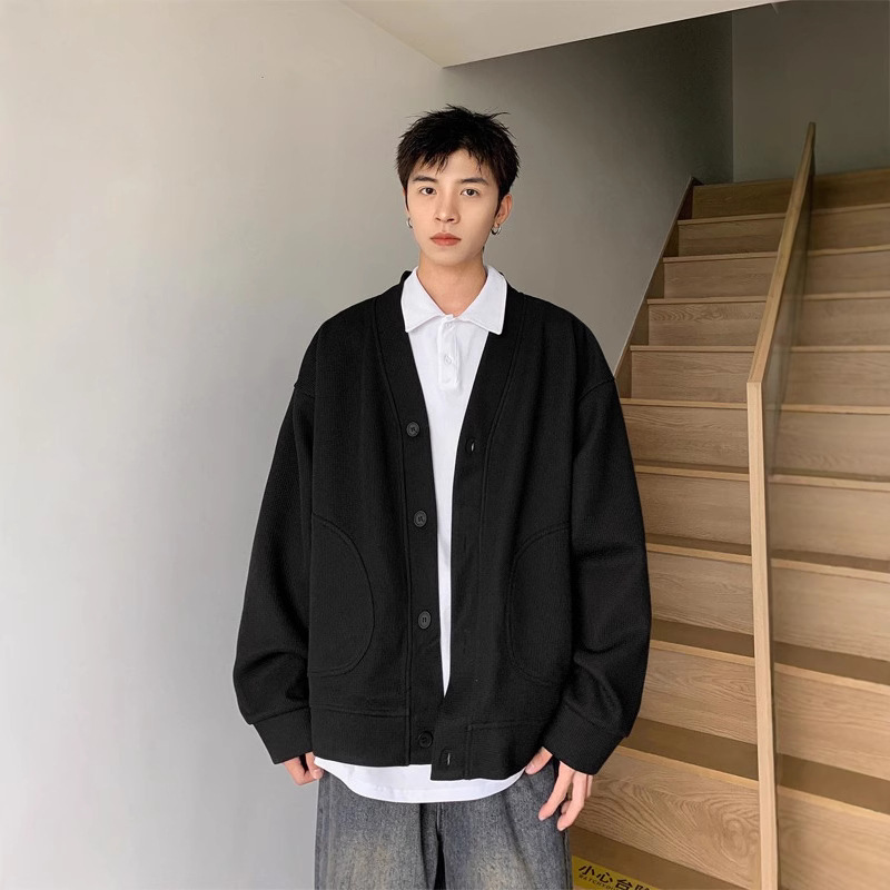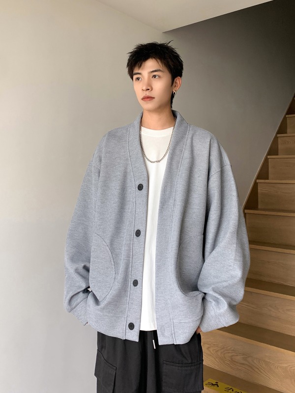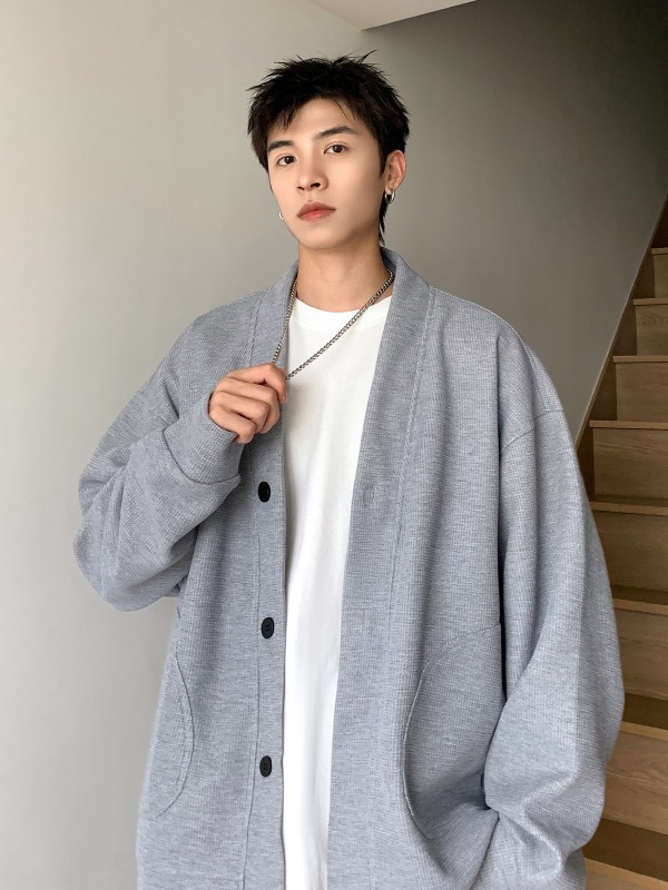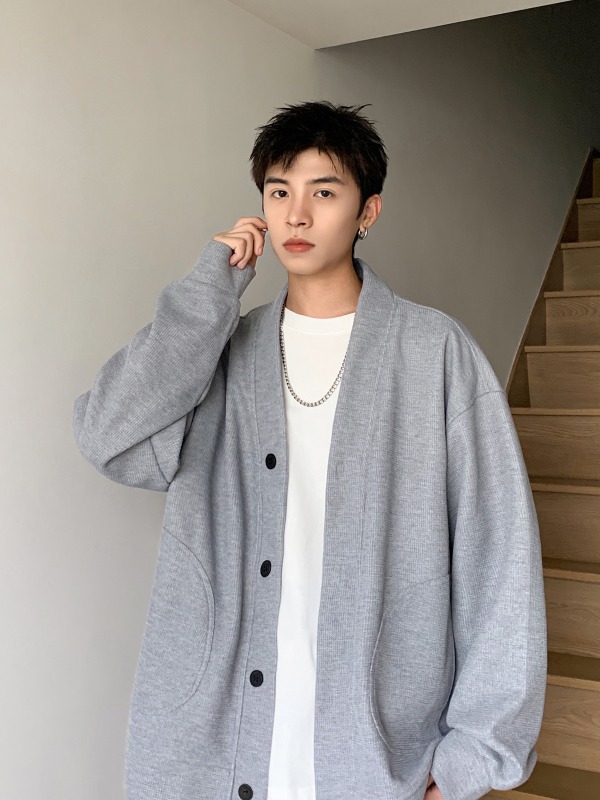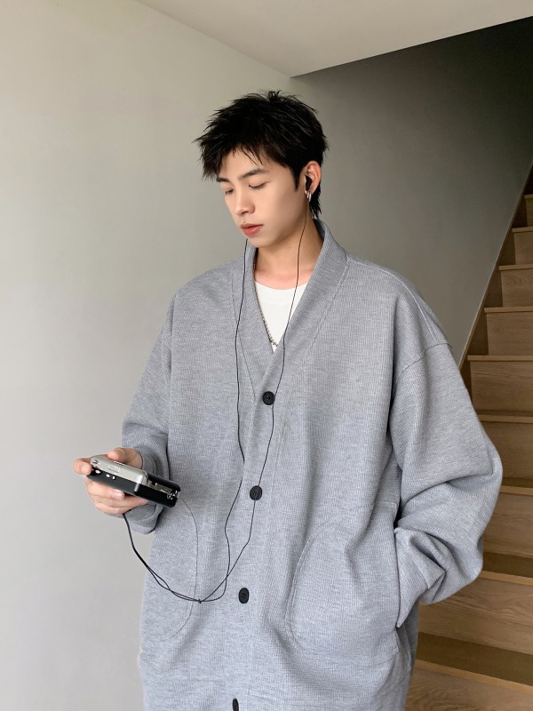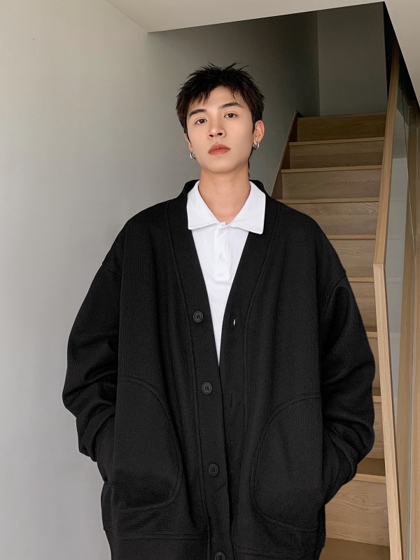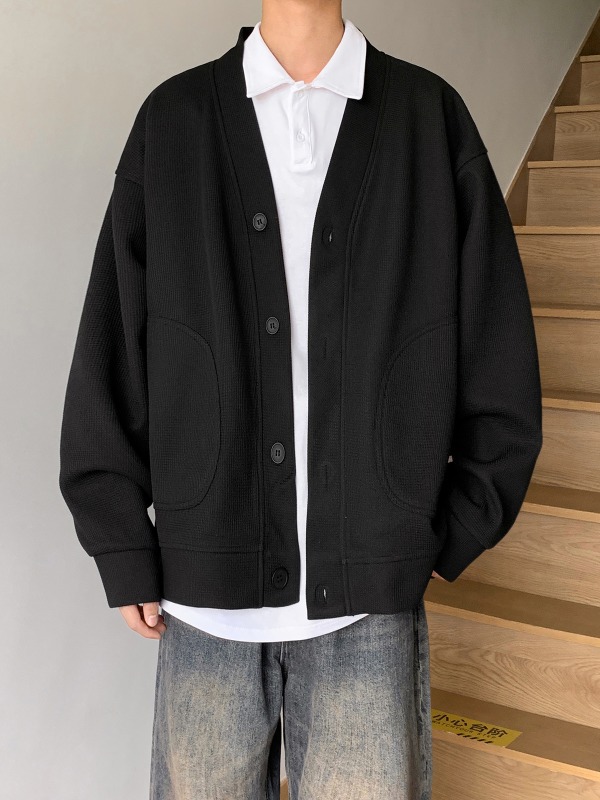 와플 카디건 스웨터 남성용 루즈 V 넥 긴팔 인스 타 그램 인기 브랜드 봄과 가을 올 매치 핸섬 캐주얼 게으른 스타일 재킷스토어 가기