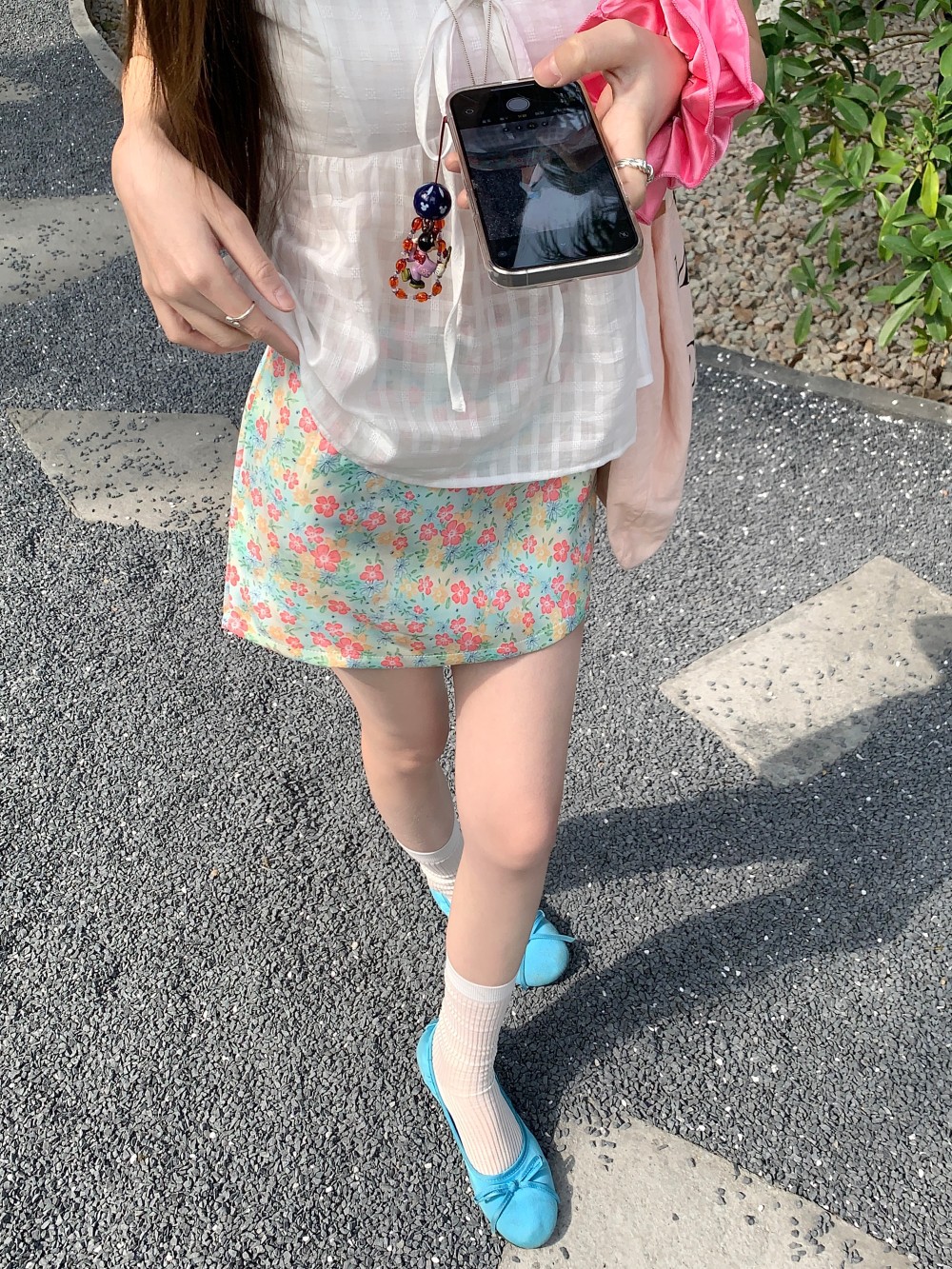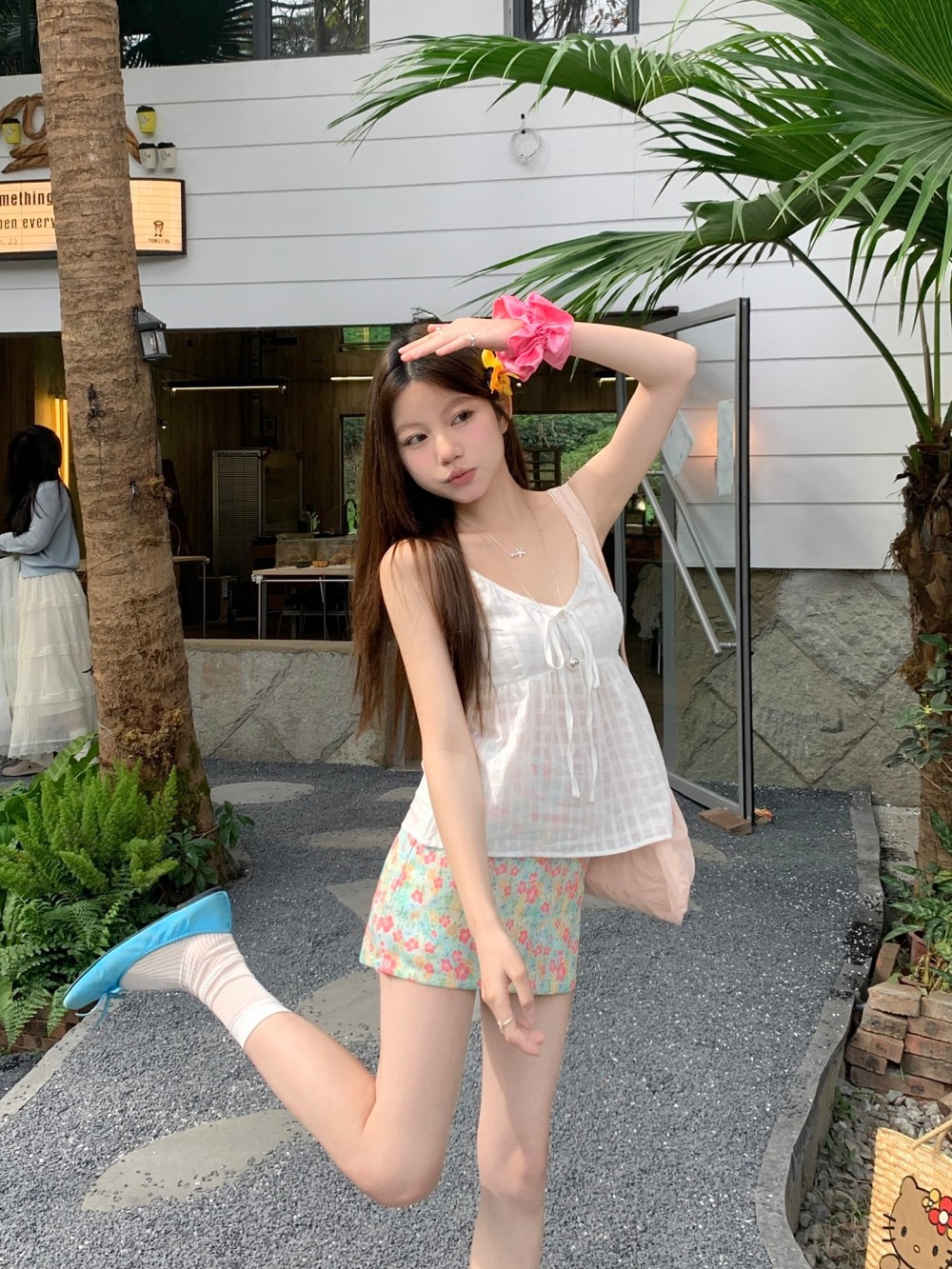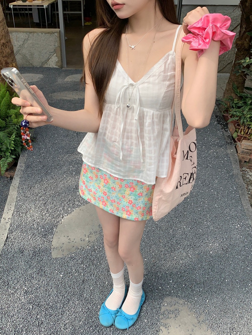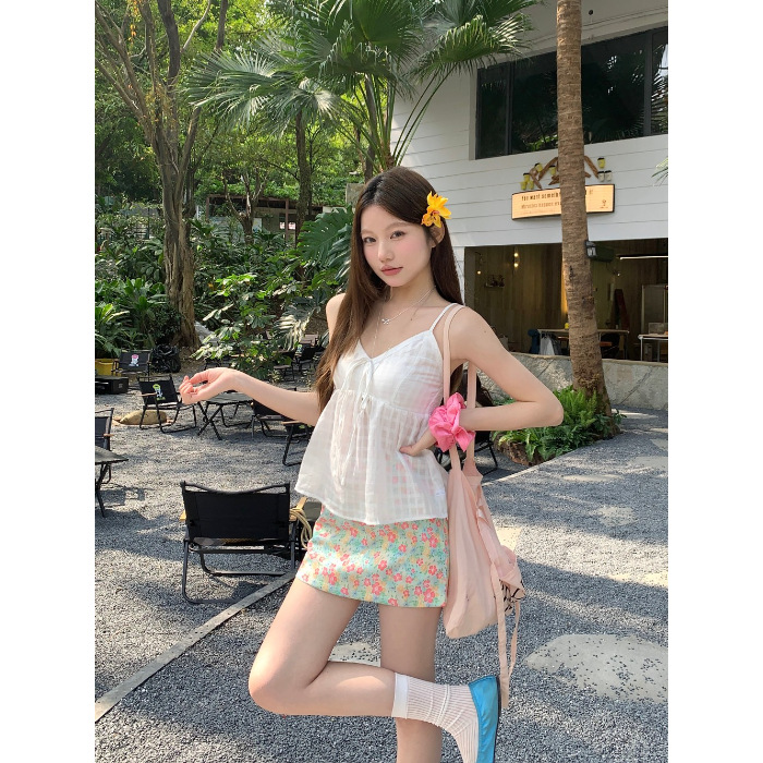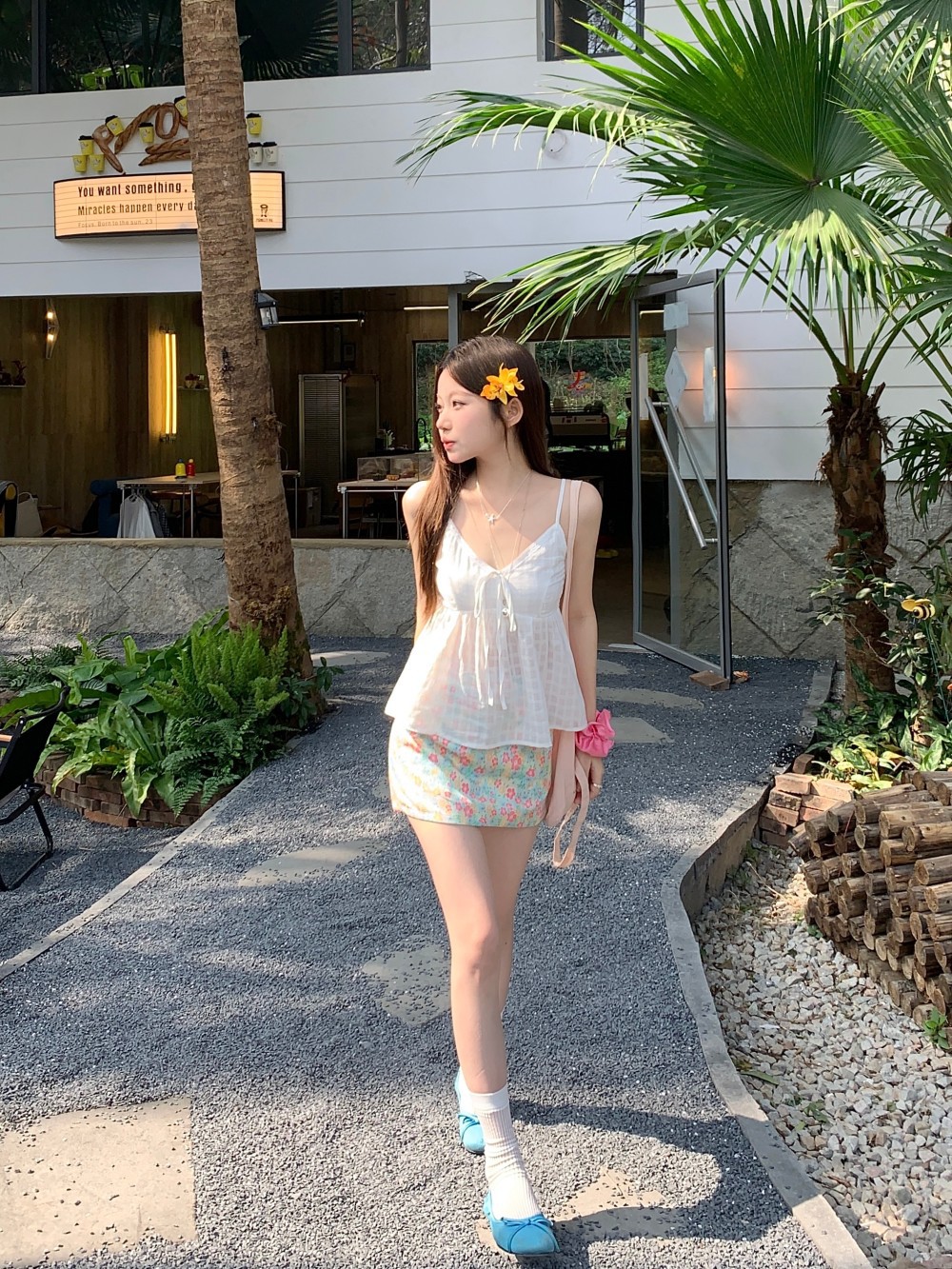 쿠미 쿠미 스위트 스타일 세트 레이스 업 화이트 카미솔 여성의 여름 꽃 힙합 스커트 투피스 세트스토어 가기